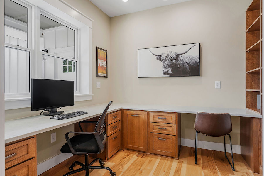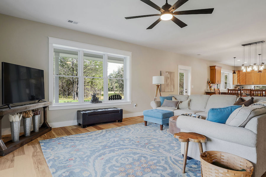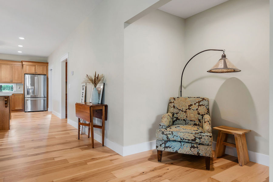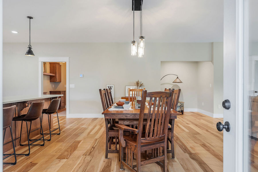 - Open floorplan connecting common living spaces & hickory flooring throughout main level