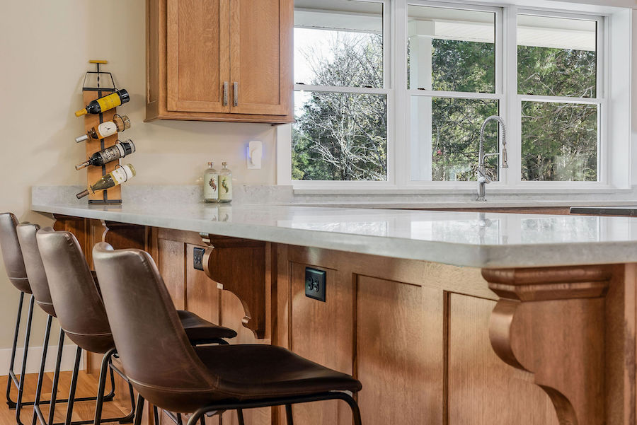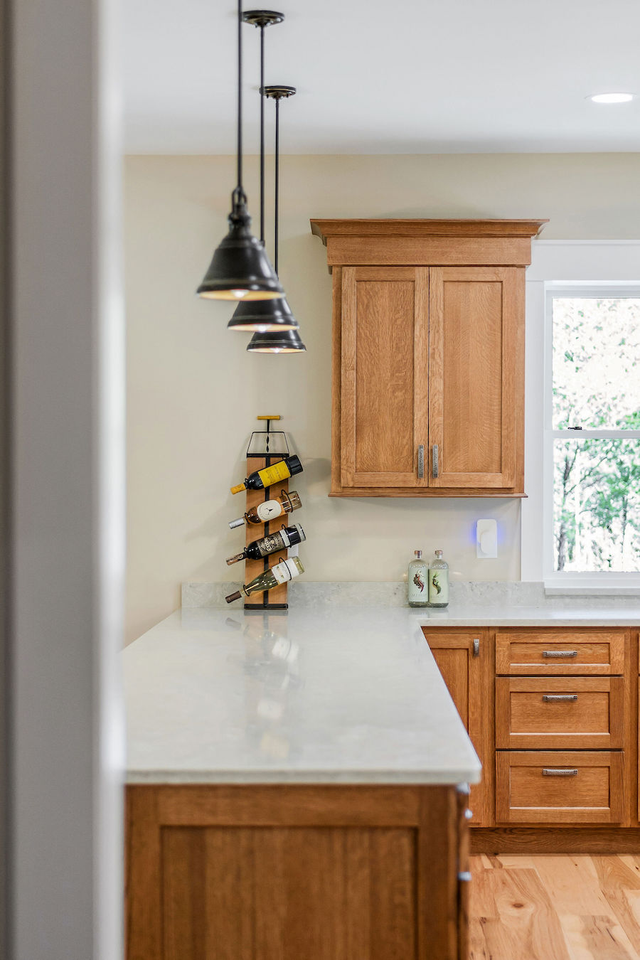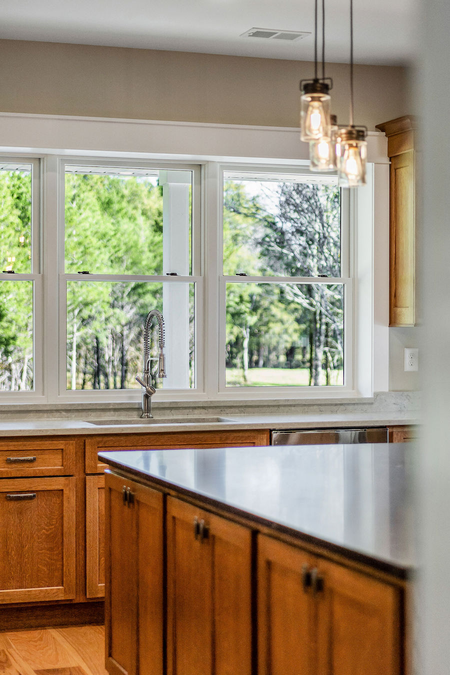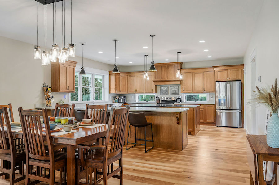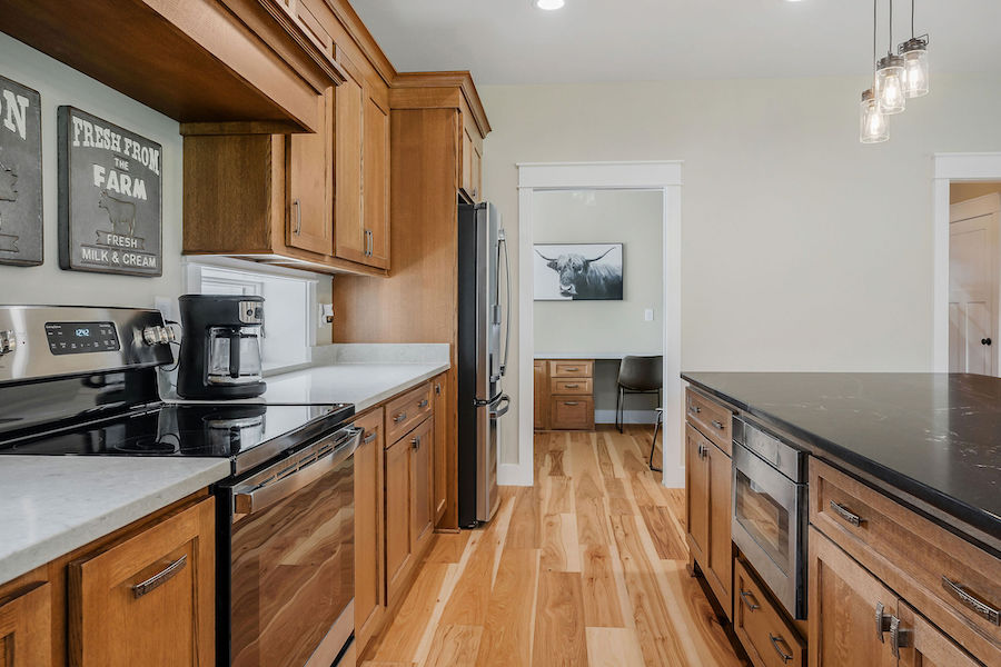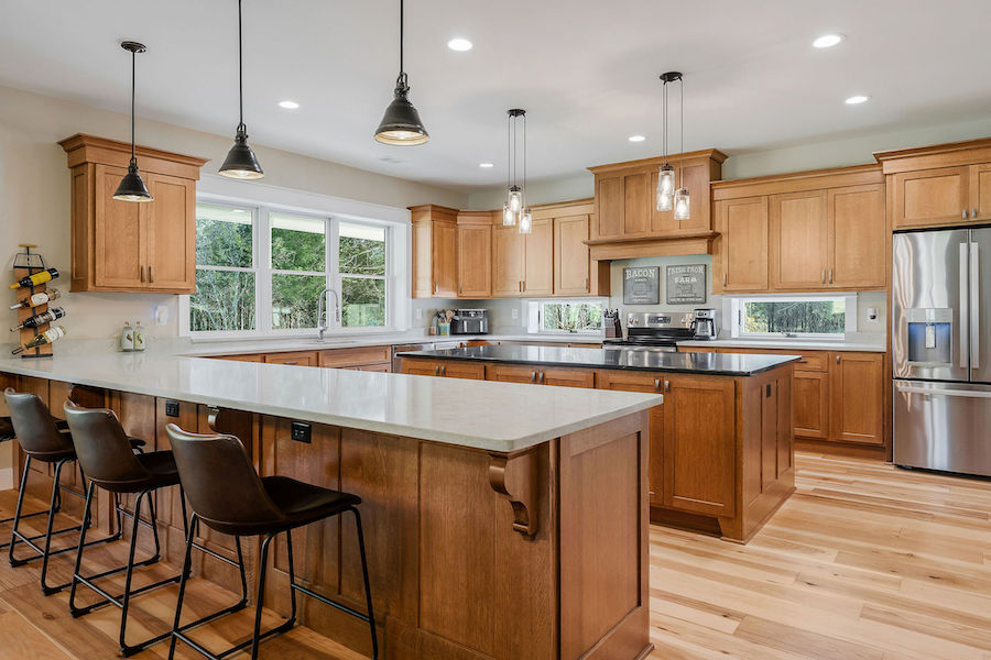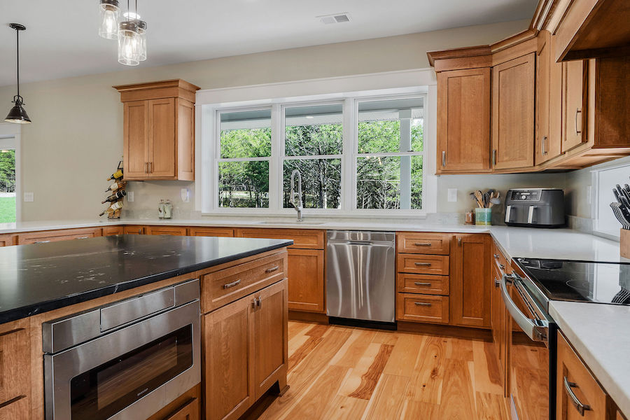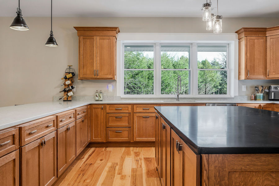 - Hardwood forest includes black walnut, hickory, and oak & huge kitchen with solid quarter-sawn oak cabinets