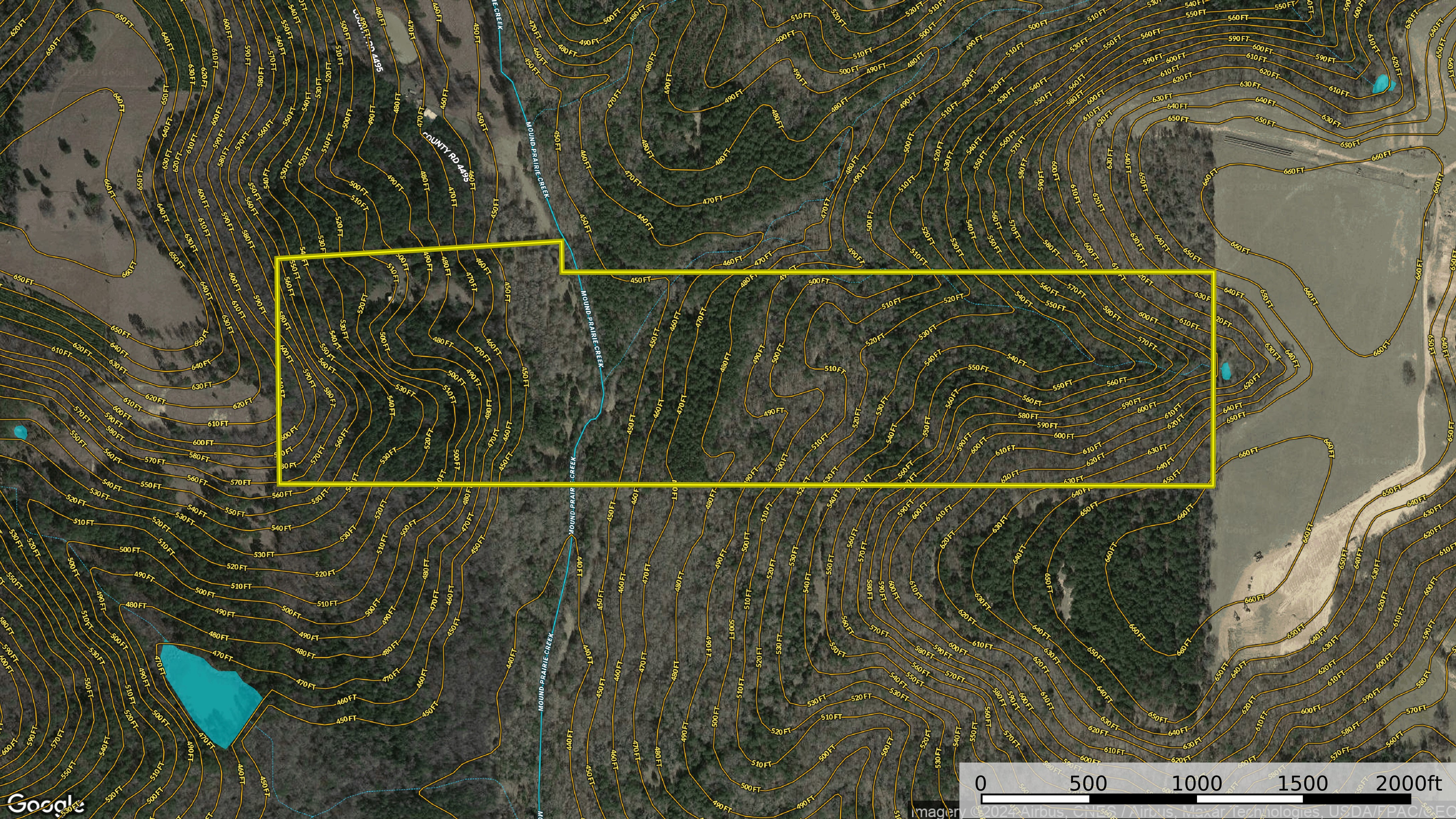 - Mound Prairie Creek, and two springs converge on the property