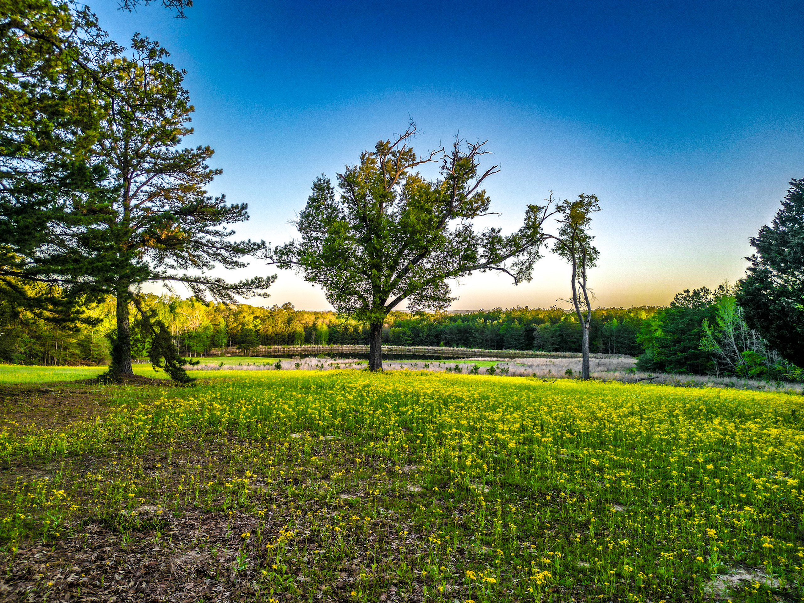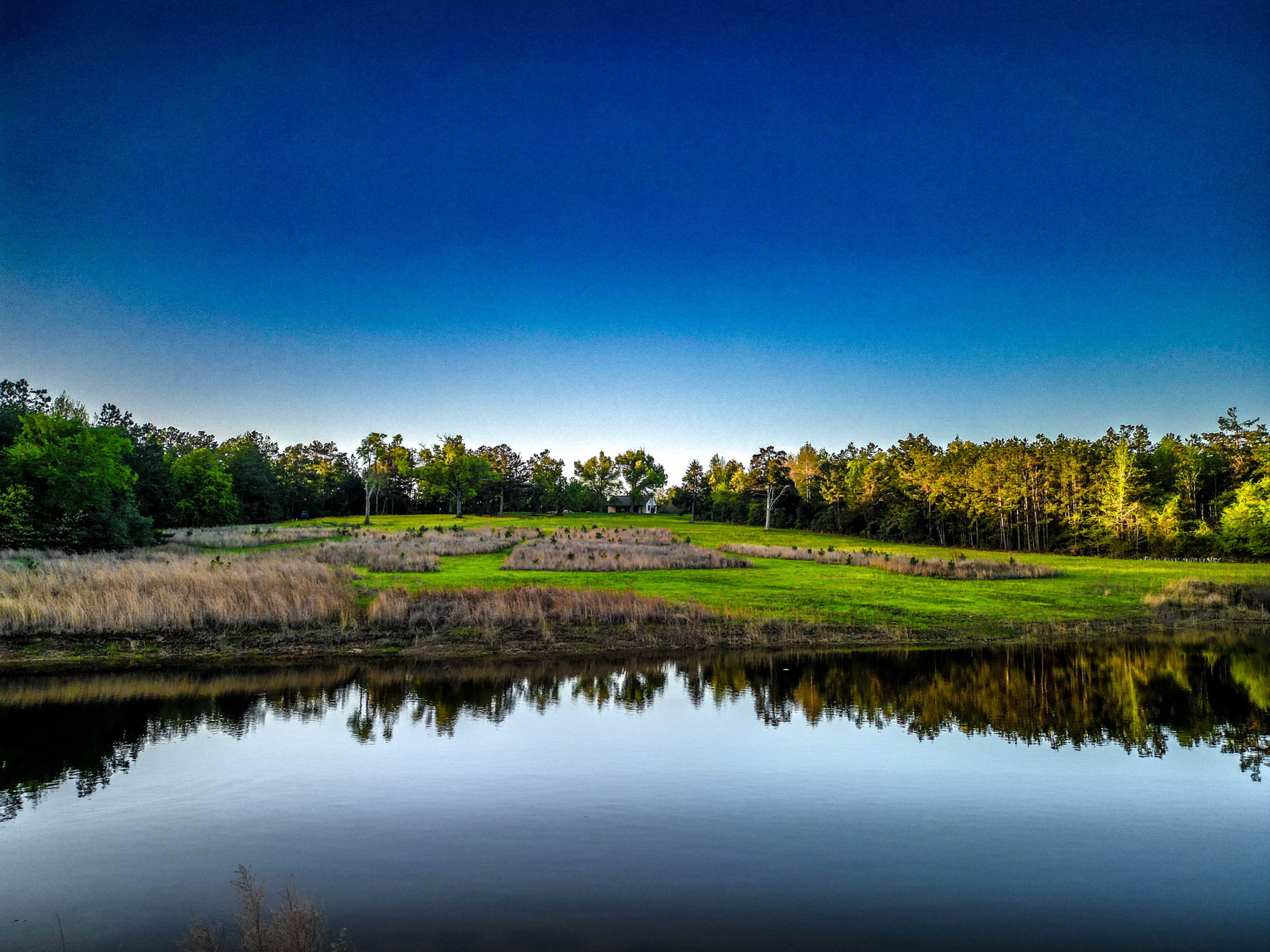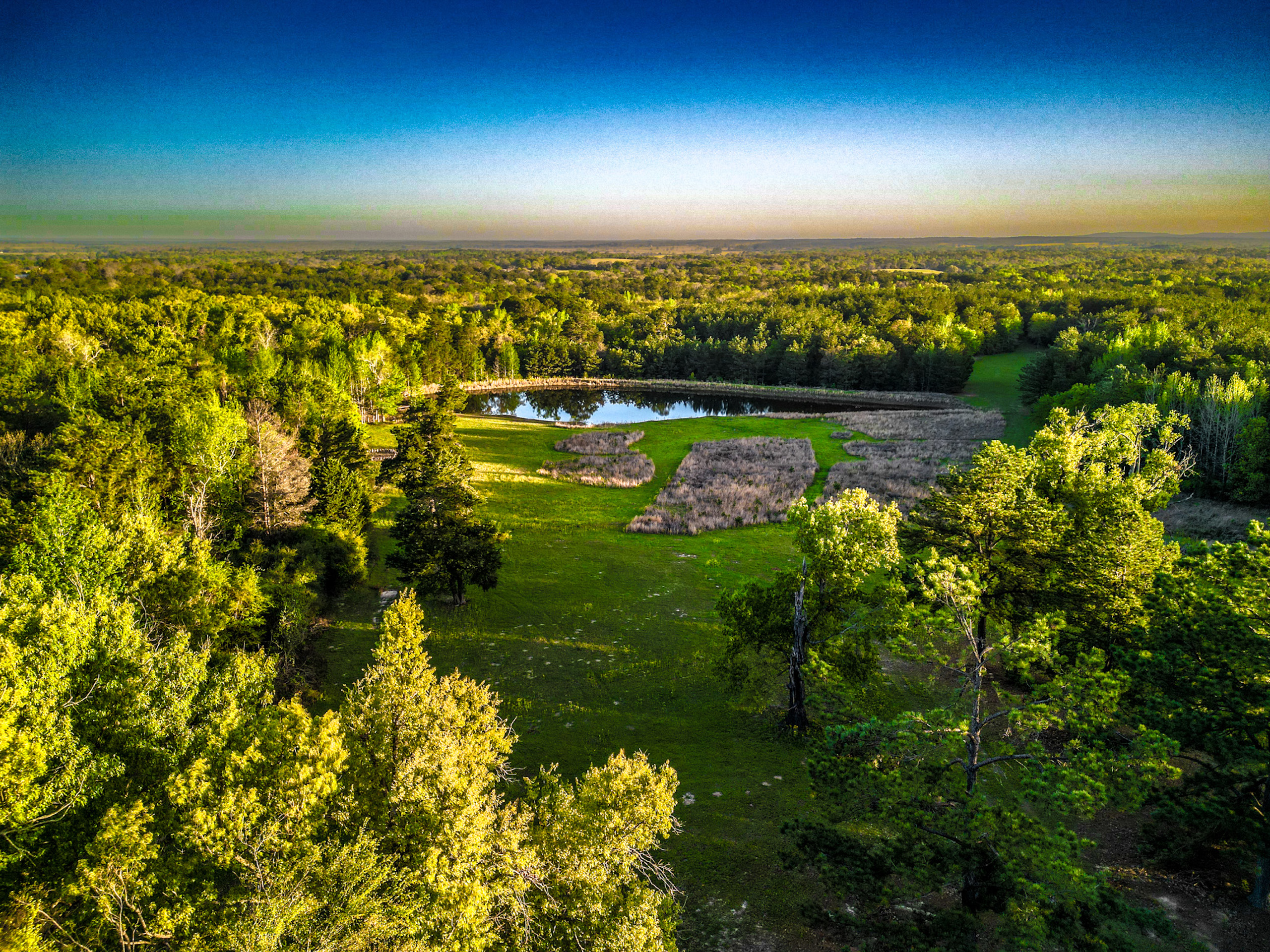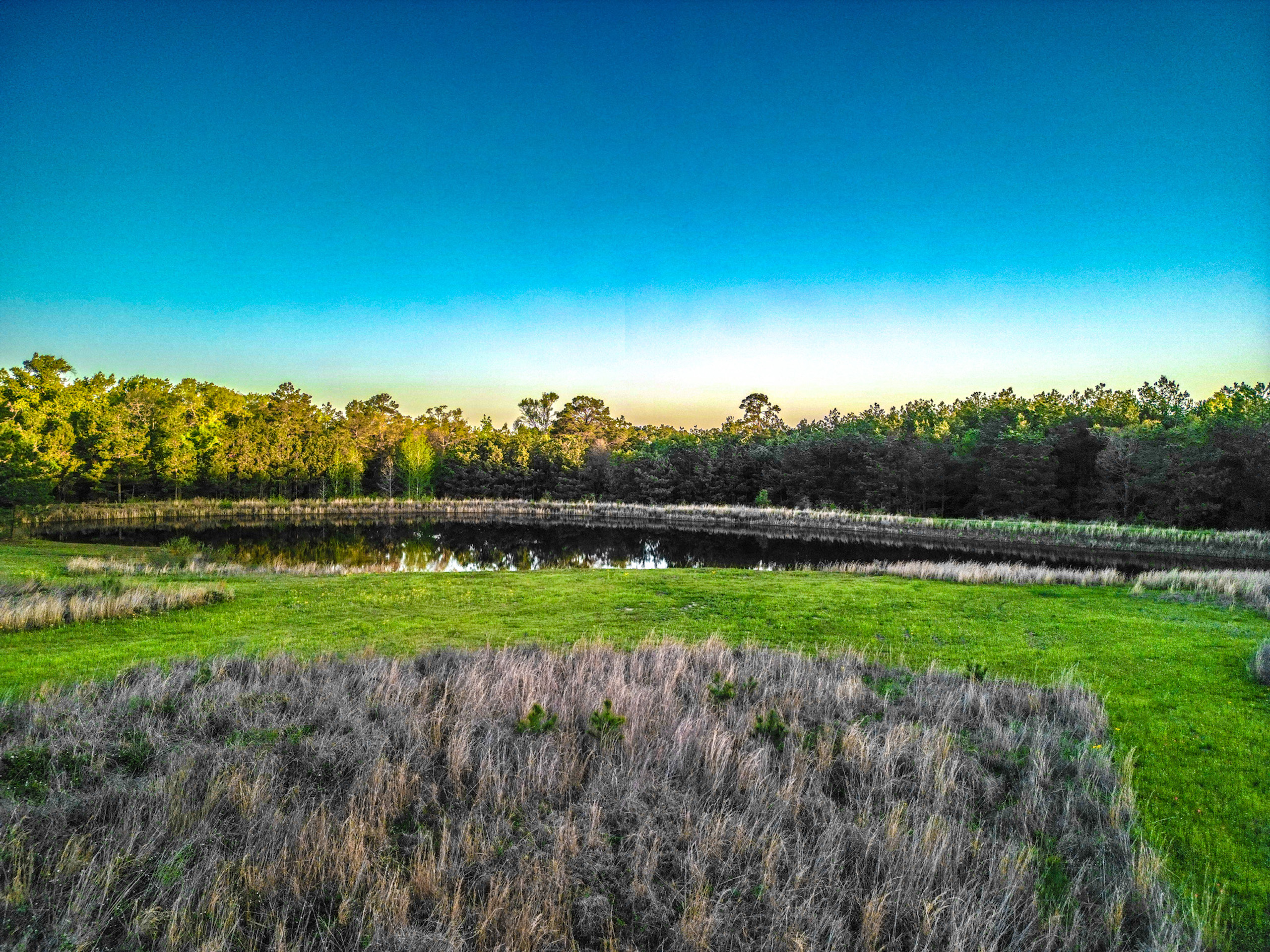 Pasture, Timber, Grass, Open, Pond