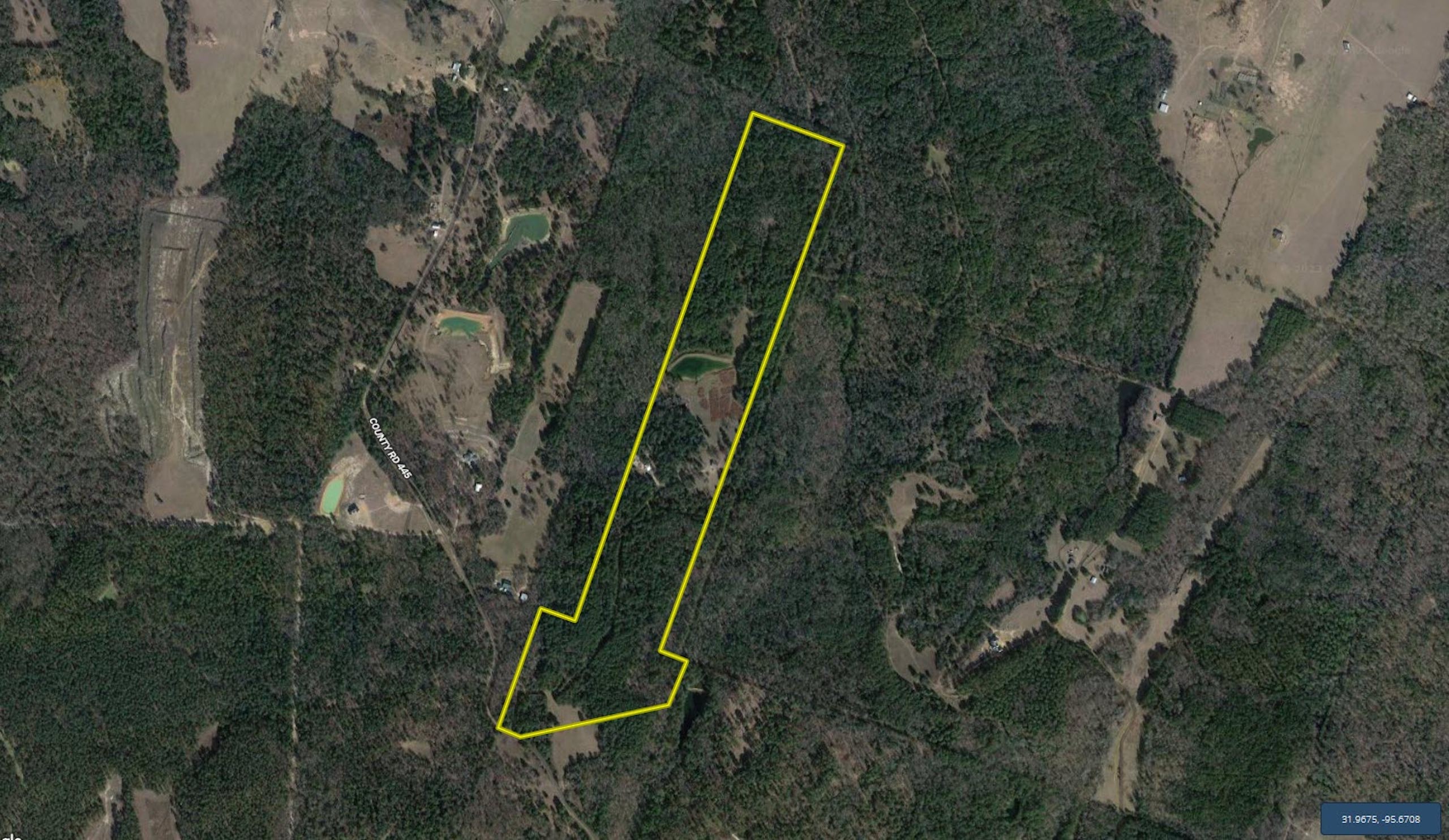 Directions: From Bradford at intersection of SH 19 and FM 837, go east approximately 4.4 miles. Turn Right on ACR 445, Chimney Ridge Ranch is approximately 2.5 miles south on the left side (East) at 4380 ACR 445. Coordinates to gate are: 31.9684; -95.6933.