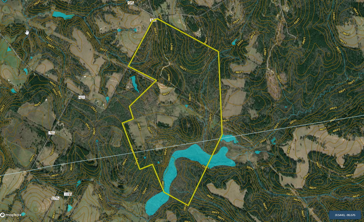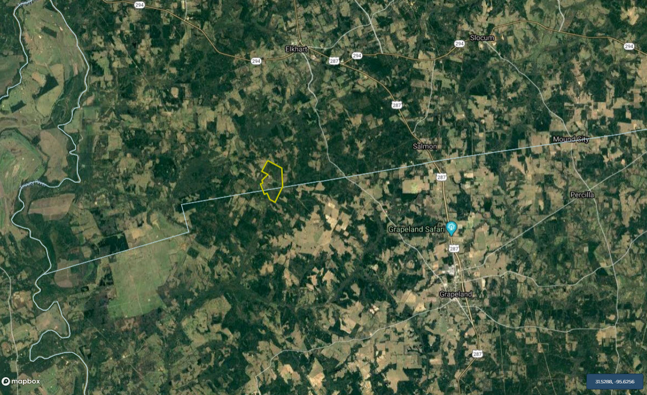 We are proud to bring this diverse, large acreage tract to the market. Located in the southwestern portion of Anderson County with some overlap into Houston County this property is near the communities of Elkhart and Grapeland. Situated along the eastern side of County Road 103, this property has good frontage along a paved road but the real majesty lies off the beaten path.