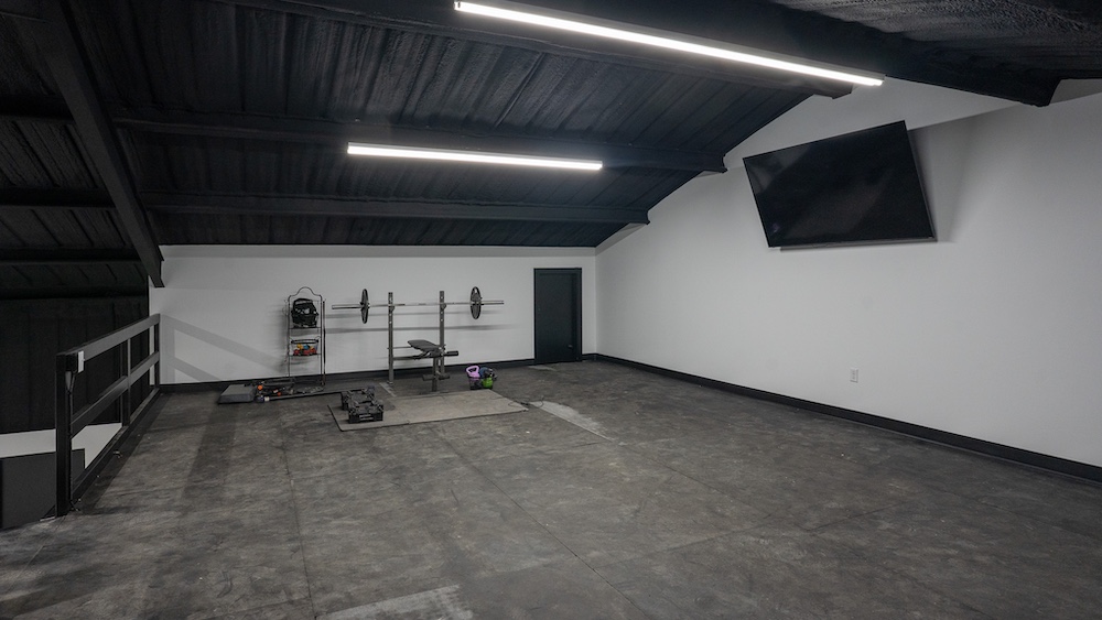 Upstairs loft space, currently utilized as a workout room