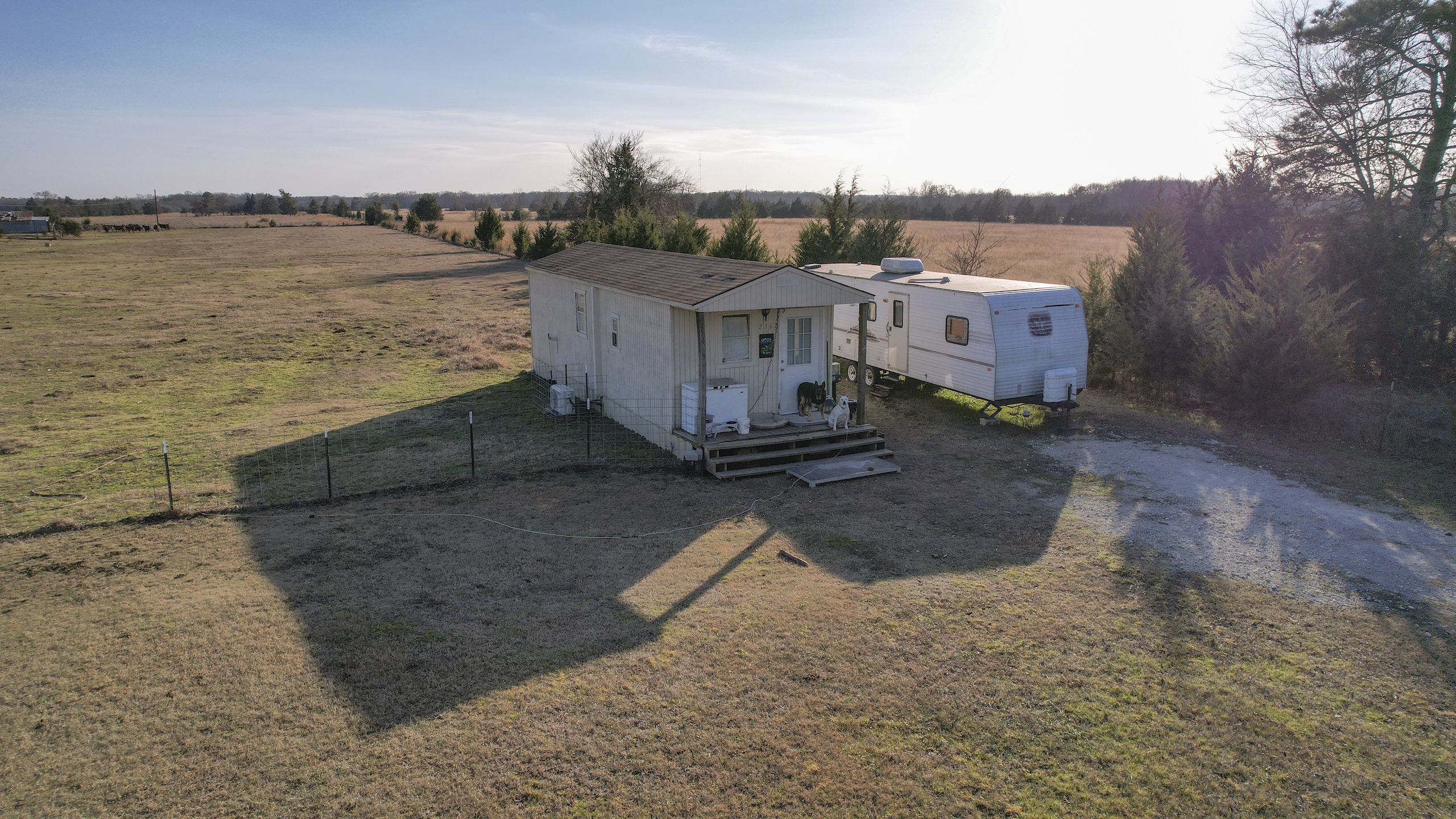 This hunting, cattle, and home property has a lot to offer with multiple uses. The home is a 12x30 building with a front porch. The home has a very nice finish out on the interior with a bathroom and kitchen and laundry room. It is also complete with a TV, refrigerator, and a split unit heat and AC system. The land has a few scattered trees with a beautiful view of the open pasture. There are three ponds on the property that can provide some great fishing. There is a healthy deer population that uses the property, and the owner has harvested several over the years. A grove of oaks at the back connects to a larger block of woods creating a large area of habitat around the property. The property is fenced and cross fenced and has a fenced-off area in the back to keep the cows out of the food plot area. Located off a paved county road there is great access, with electricity on-site at the barn, and water is available at the road. The barn sets back off the road and would make a great building location. This is one that you don’t want to pass up. Call Today!