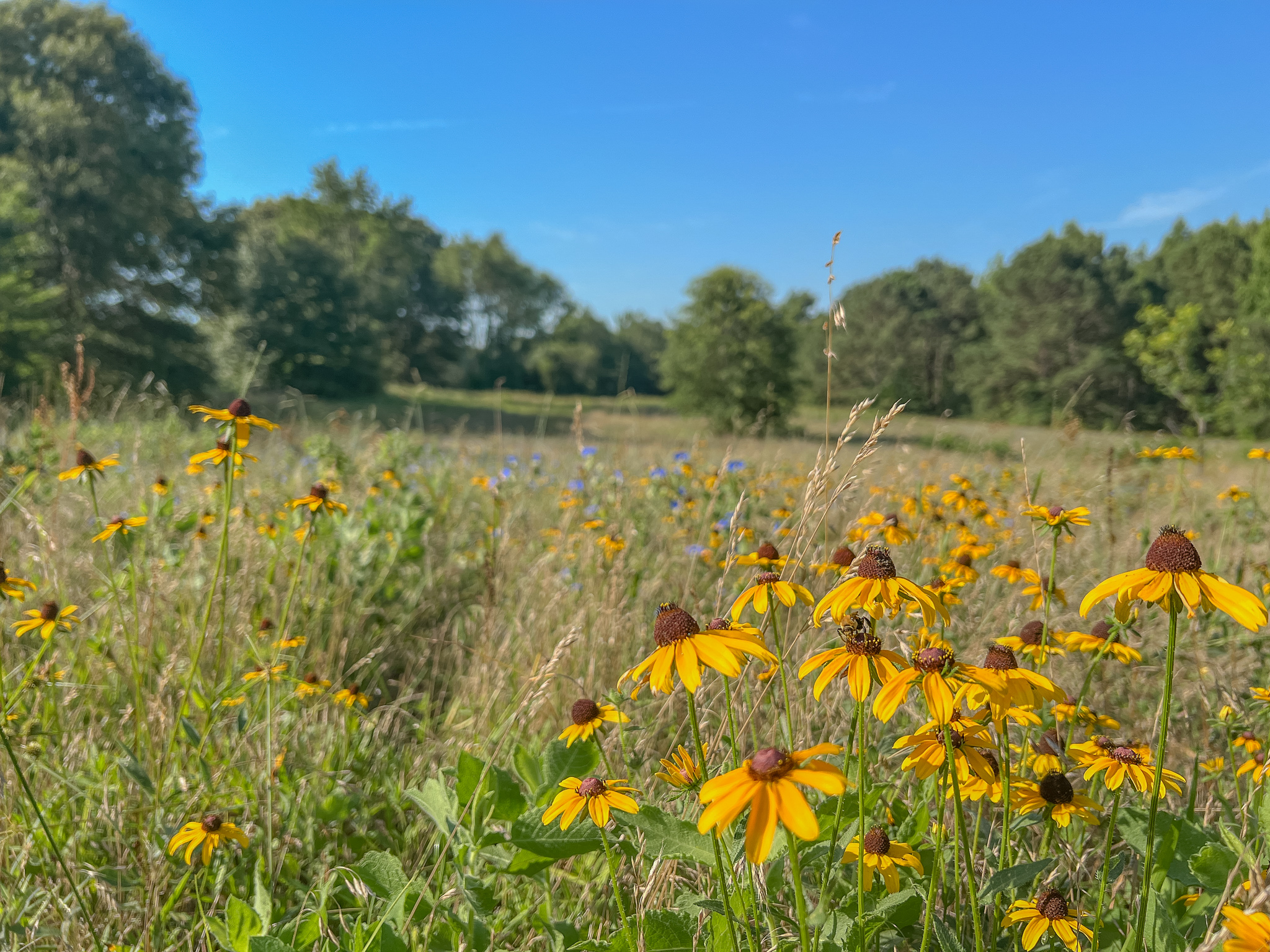 - Rolling hills and wooded areas