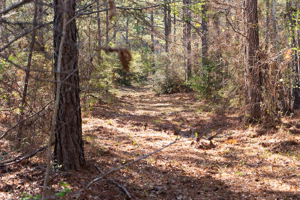 The land is predominantly wooded, featuring a mix of native timber, natural regeneration, and planted pine. This blend of timber types contributes to both habitat diversity and varying levels of canopy cover across the tract. Portions of the property may be suitable for pasture or agricultural use, while other areas remain more heavily wooded.