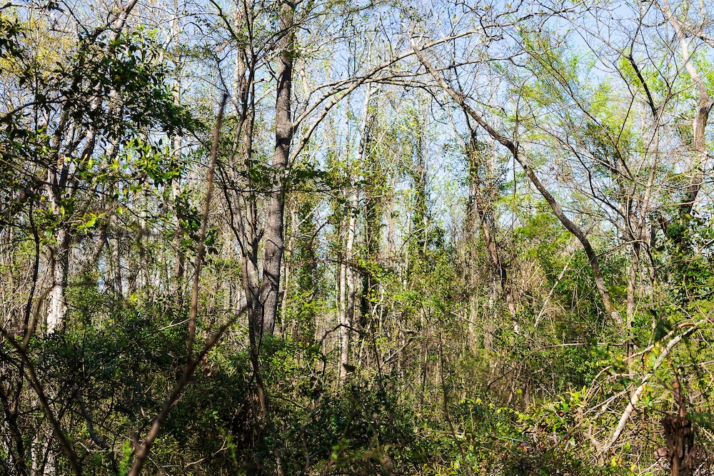 The terrain is a defining feature, with elevation ranging from approximately 470 feet above sea level to approximately 680 feet. The rolling to steep topography provides a range of views, including elevated areas that overlook portions of the surrounding Jacksonville area. The diversity in elevation contributes to the overall character and usability of the tract.