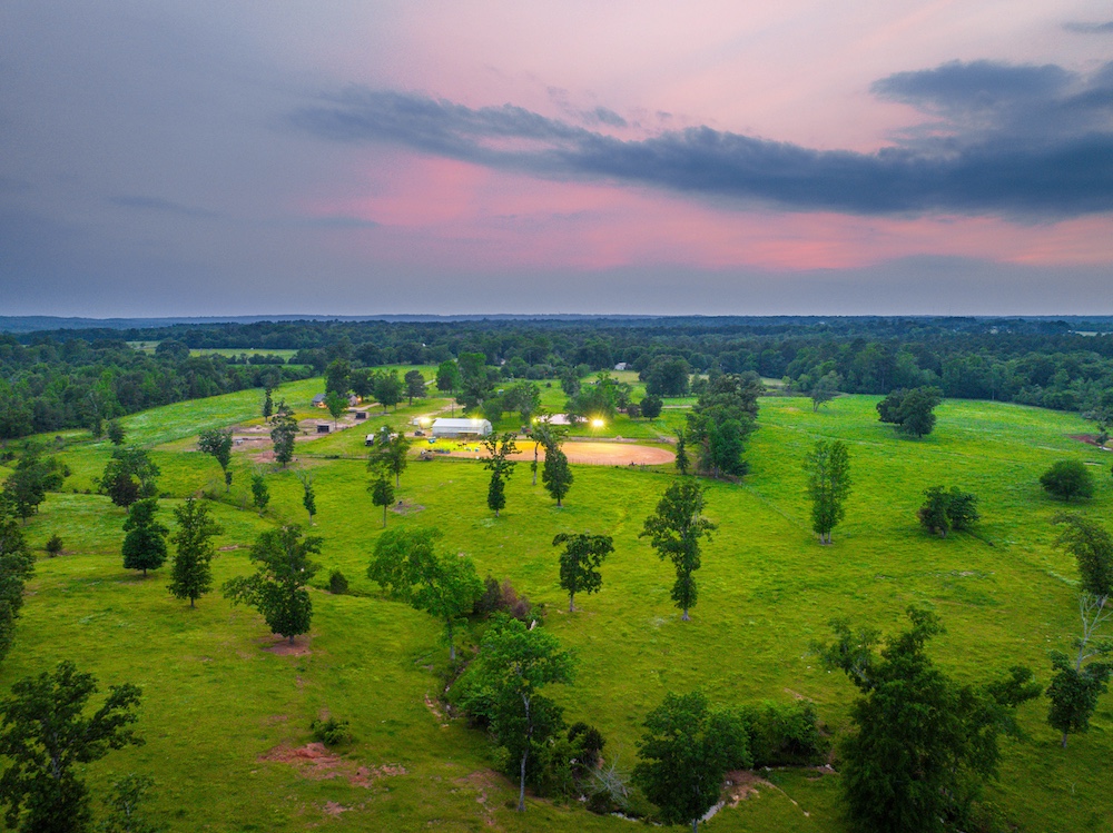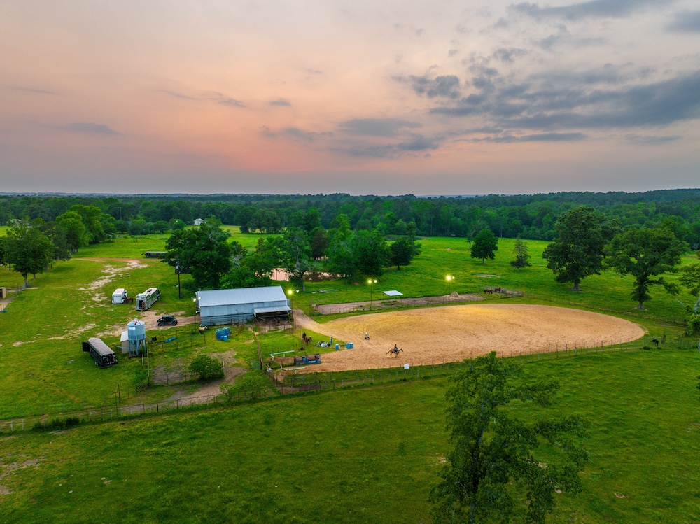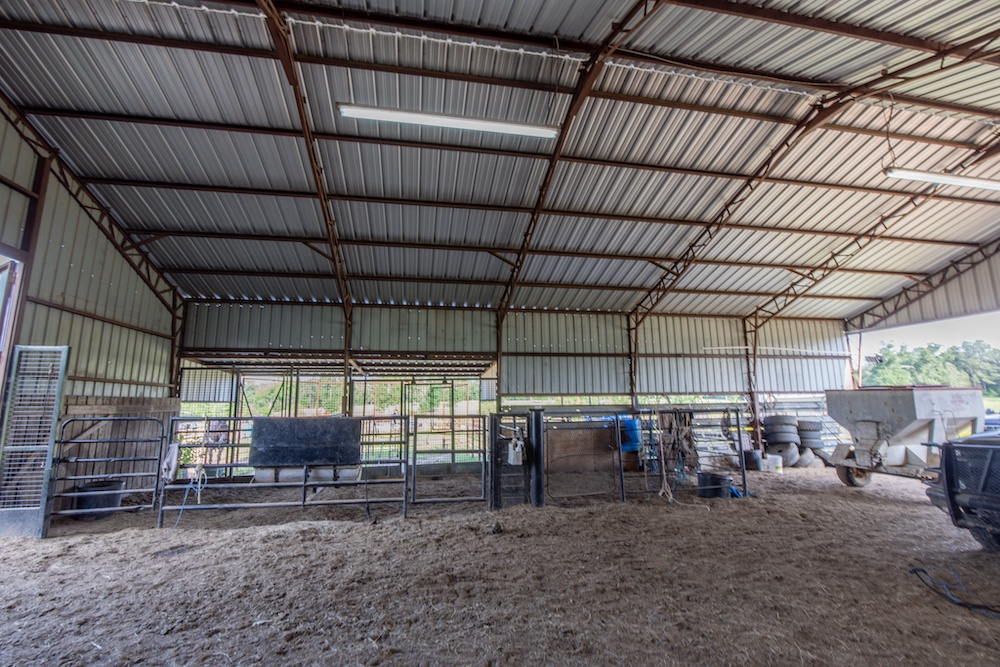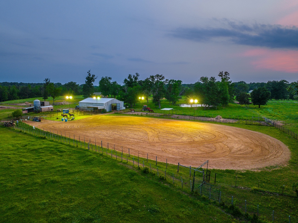 - Lighted roping area, cattle pens, and barn