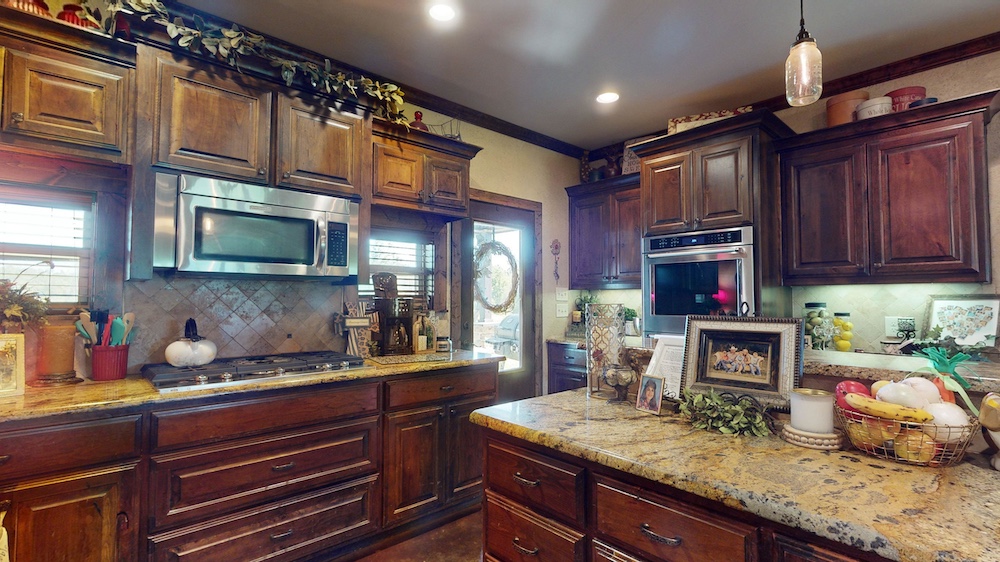 - Well-designed for farm life with upgraded appliances and solid surface countertops