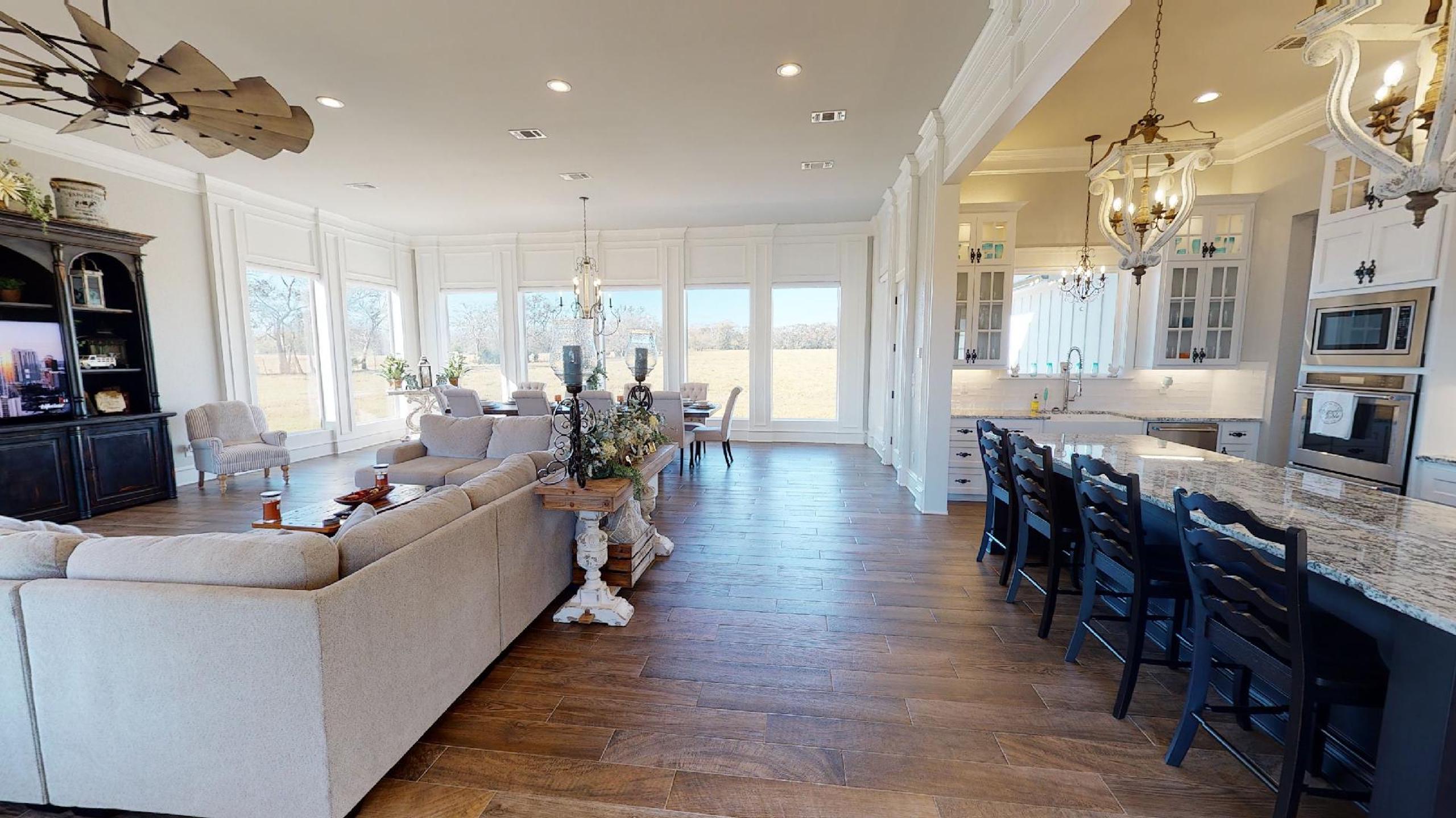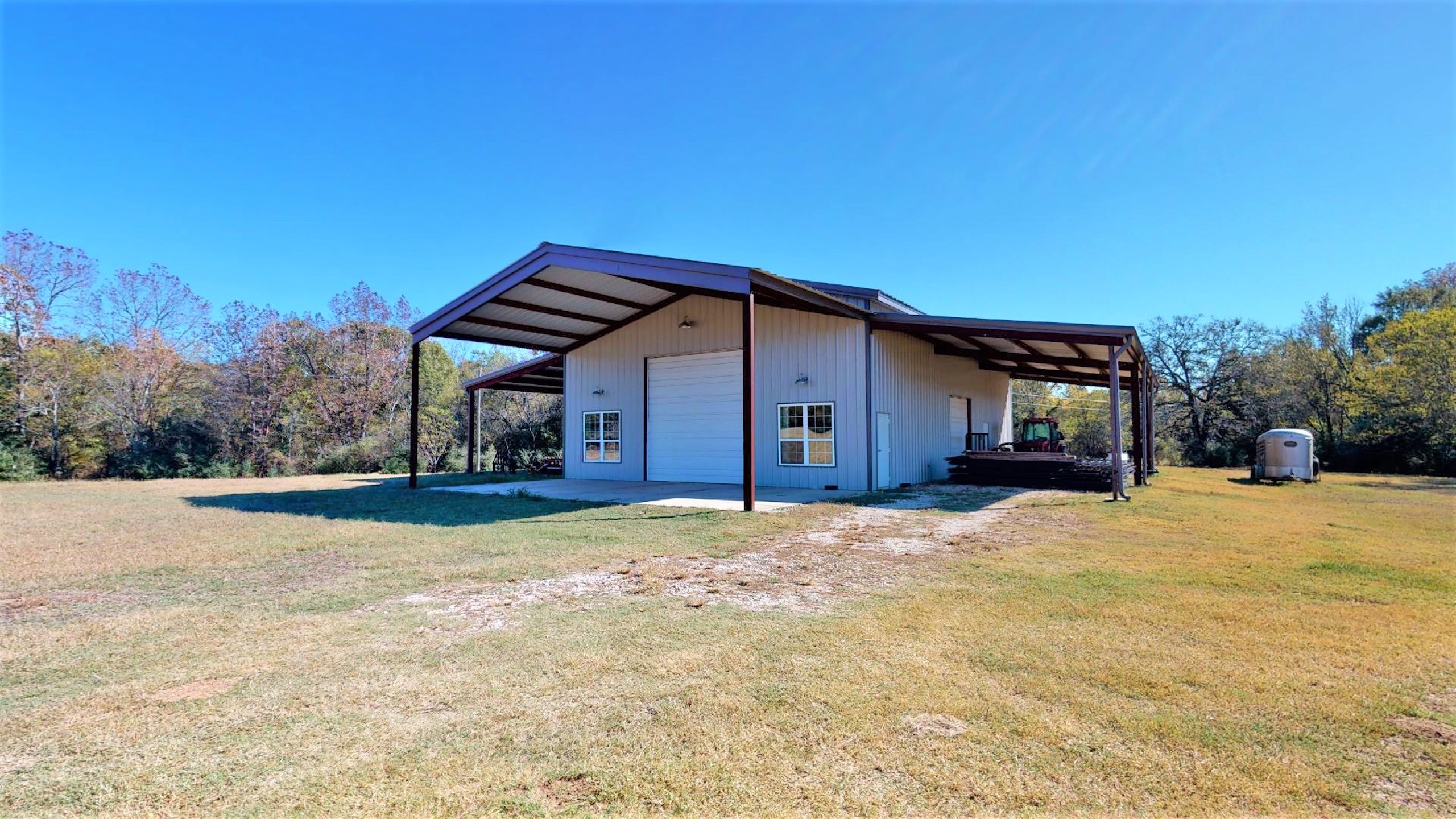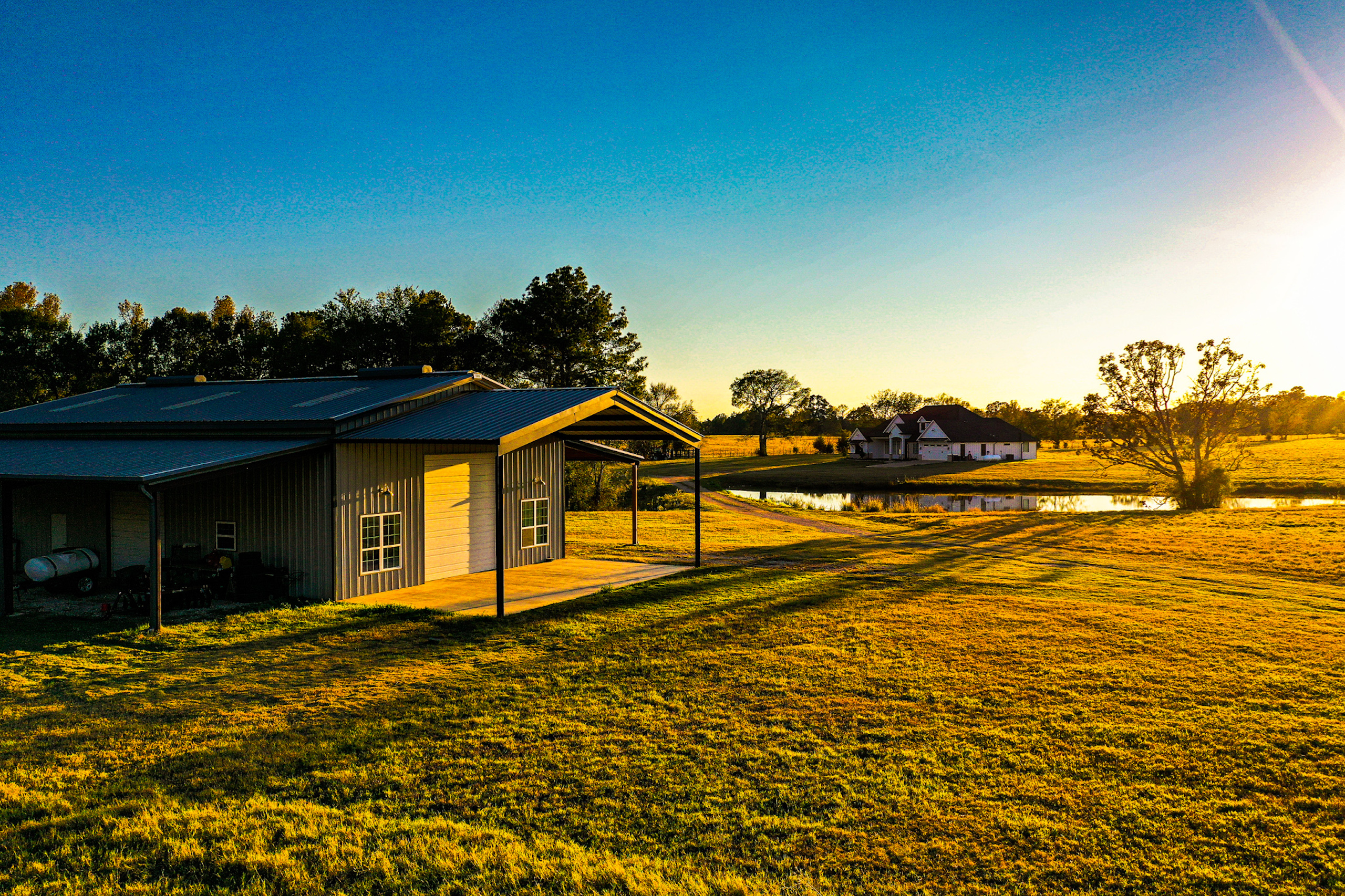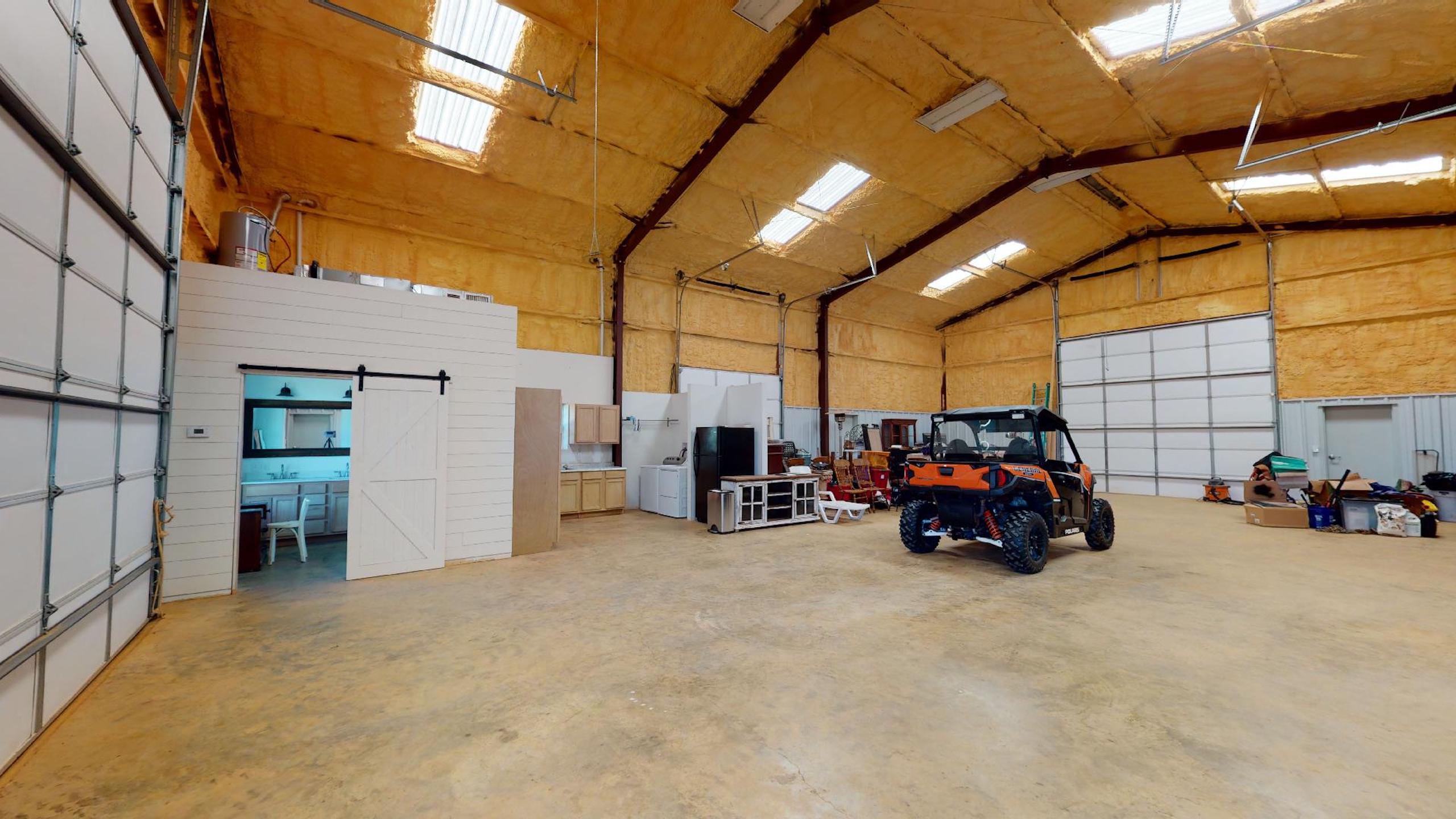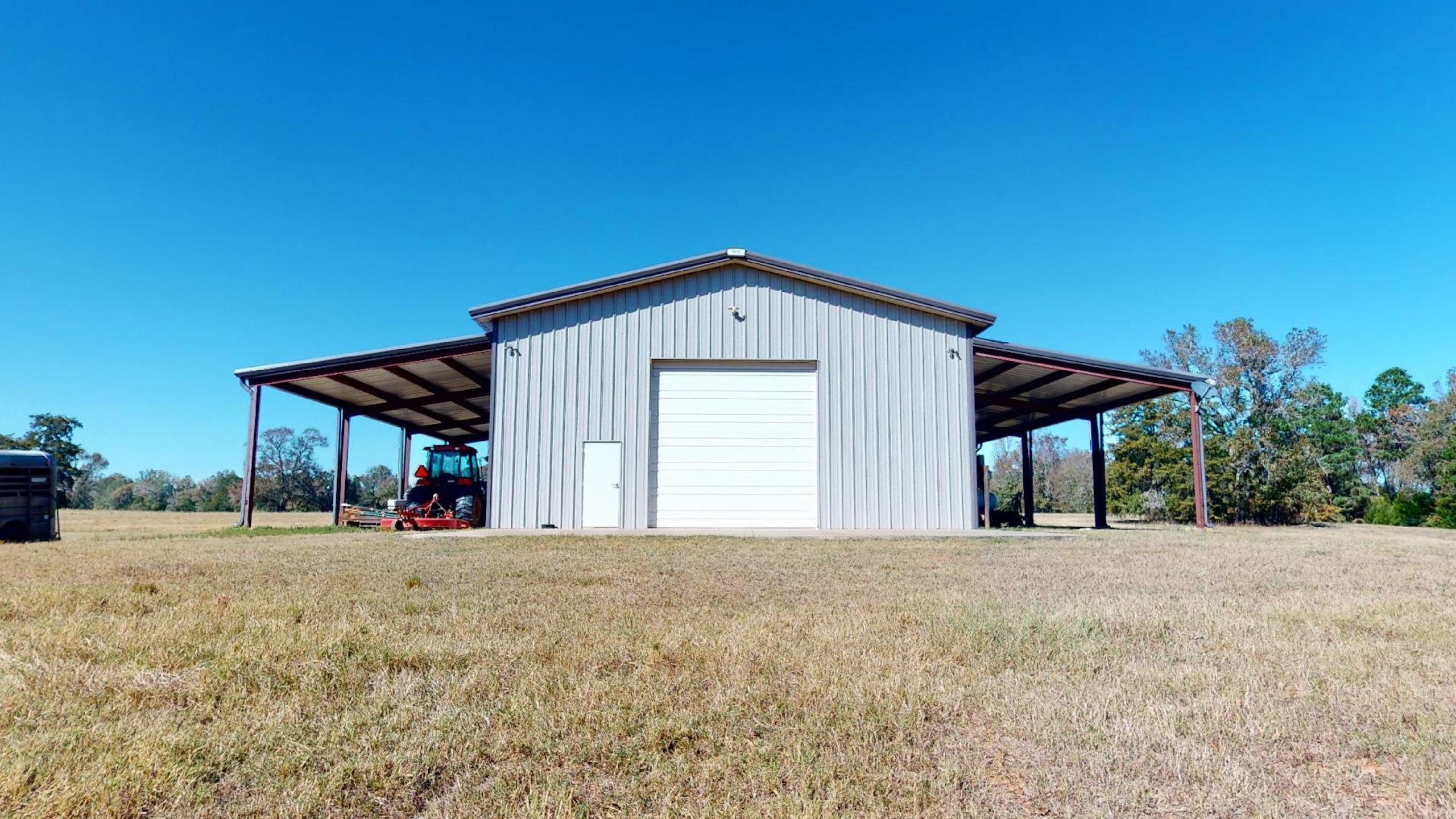 IMPROVEMENTS: The property is improved with an excellent quality, three-bedroom, two and one half bath residence with a large, two-car garage that is reported to have 2,484 square feet of gross living area that was constructed in 2019. The exterior is a mixture of brick and Hardie lap siding with a Ranch style exterior design and the front patio overlooks the picturesque pond that is situated between the home and shop building. The interior of the home is exquisitely finished with many high-end features and the open concept living areas provide for a spacious feel. The residence has a large rear patio overlooking the rolling meadows and scattered ponds. Other improvements include a 2,400 SF, all-steel, insulated shop building with a large, ¾ bath and a kitchen/laundry room area. This bath is fully partitioned but the kitchen only has partitions on three sides and is open to the shop building. These areas could be left as is to add functionality to the shop or there is plenty of room for further build-out to add more rooms and a fully functioning barndominium. The shop has a large, covered patio area with concrete floors out the front and large shed areas with gravel for equipment storage.