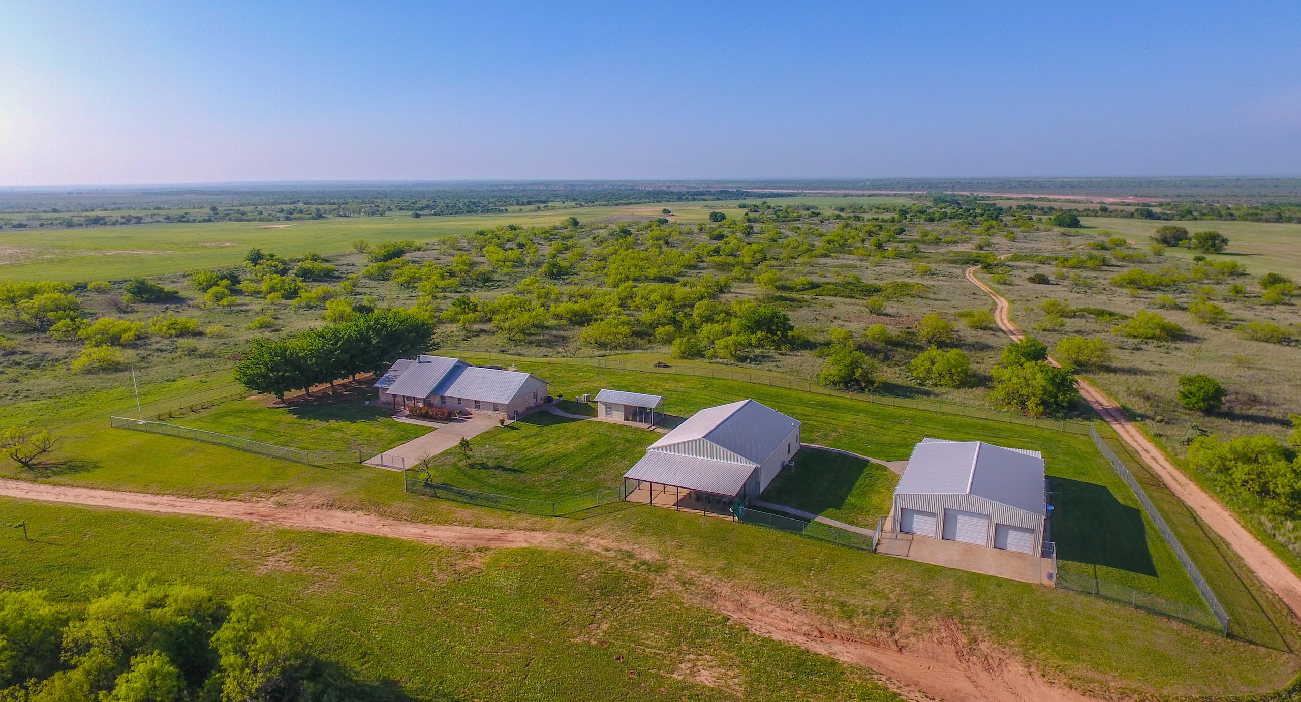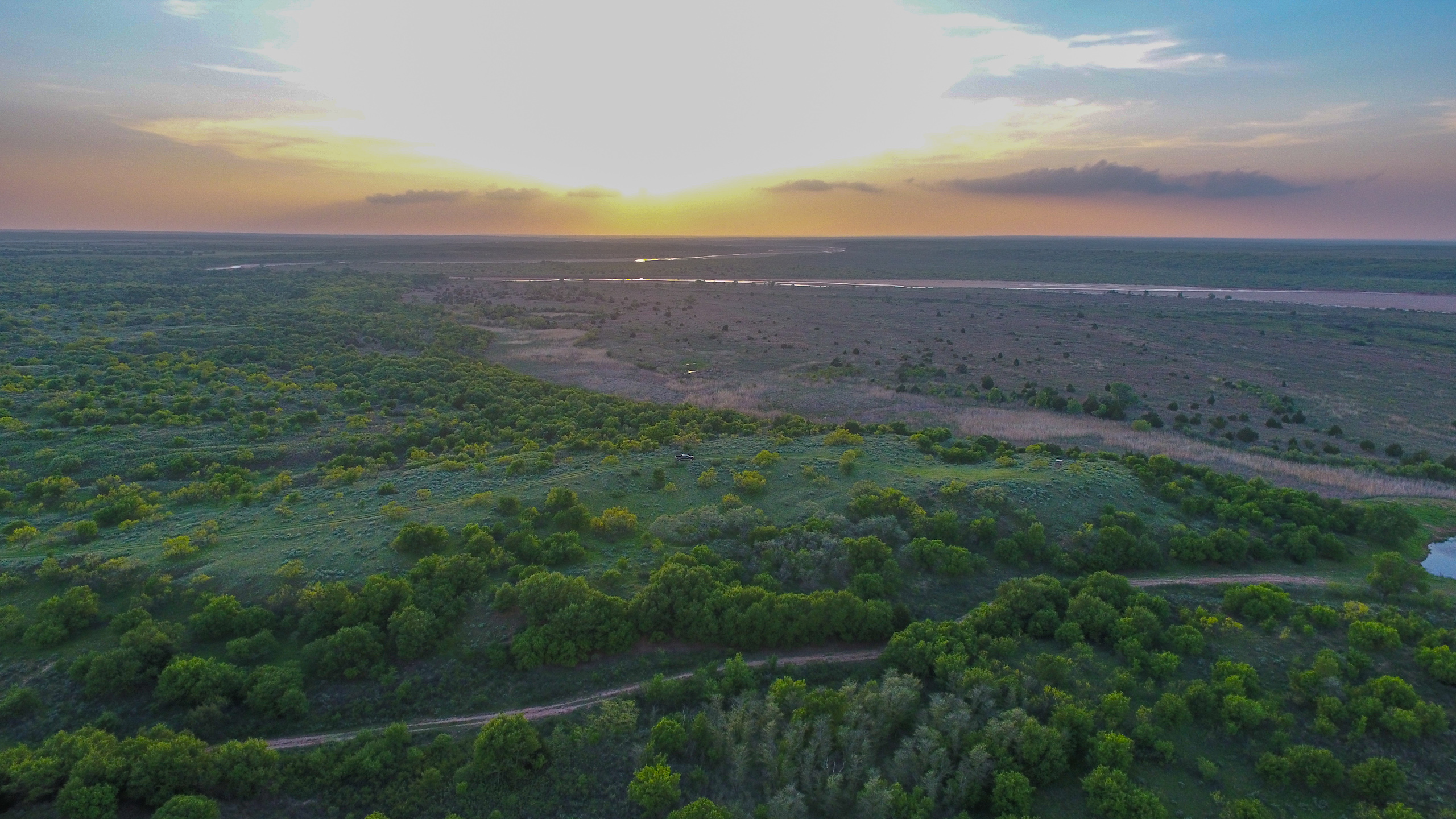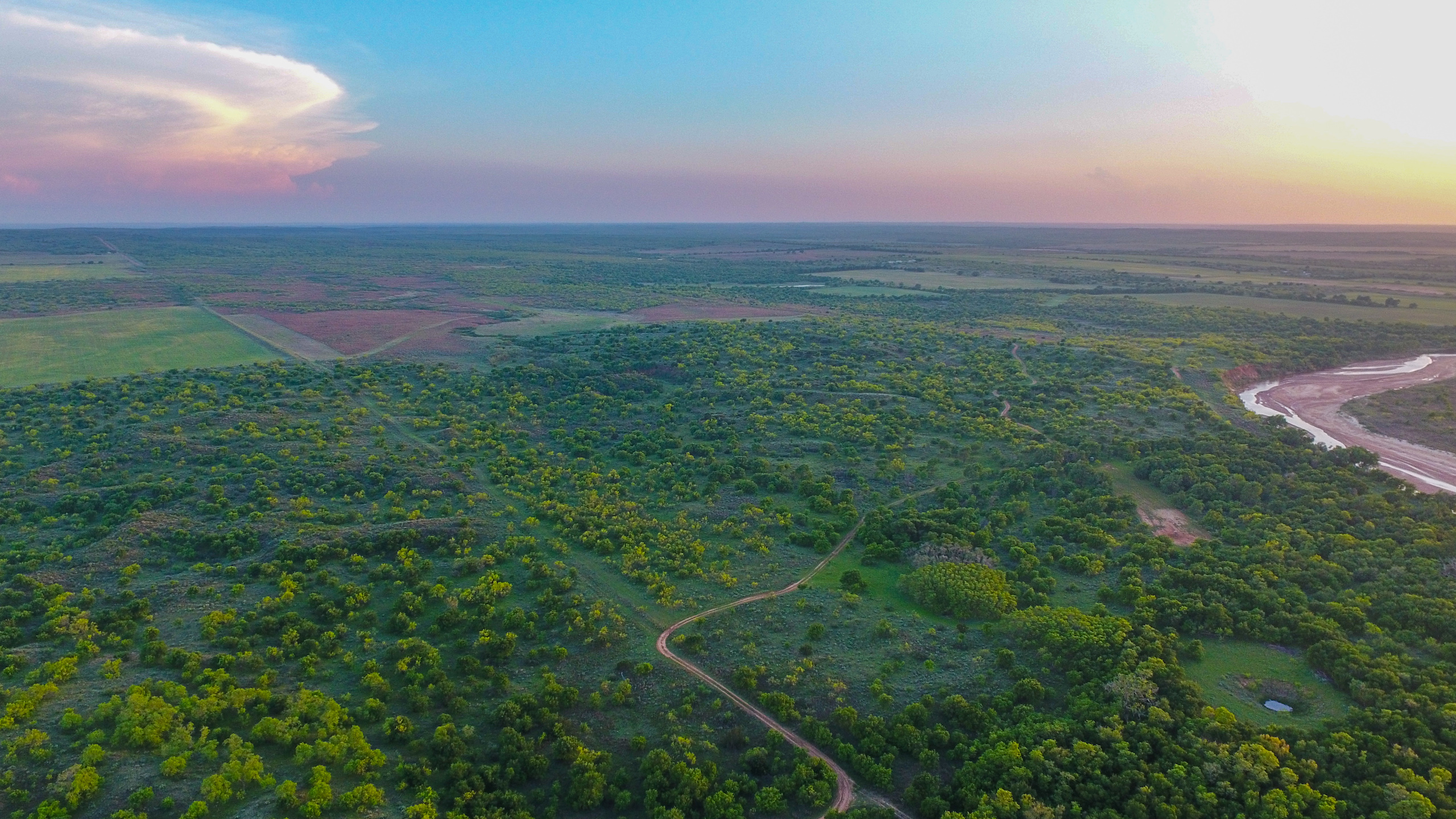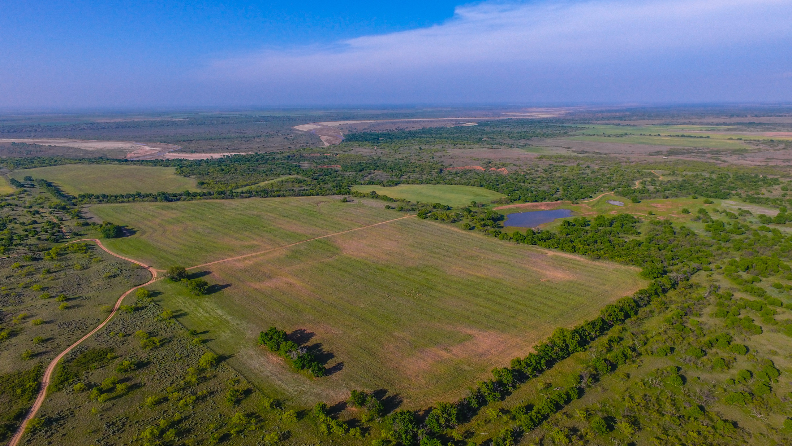 Land: The Dicar sits high upon red bluffs overlooking the Prairie Dog Town Fork of the Red River with some of the most diverse and desirable attributes found on a single ranch in the region. With nearly 3 miles of river frontage, the ranch possesses stunning wildlife habitat with an excellent mix of both topography and landscape features. Numerous, deep draws leading to the river hold towering, mature hardwood trees and there is a great balance of native cover to productive tillable acreage. The ranch is extremely well maintained with miles of internal roads, established hunting stand setups, productive wheat fields, and good water distribution throughout.