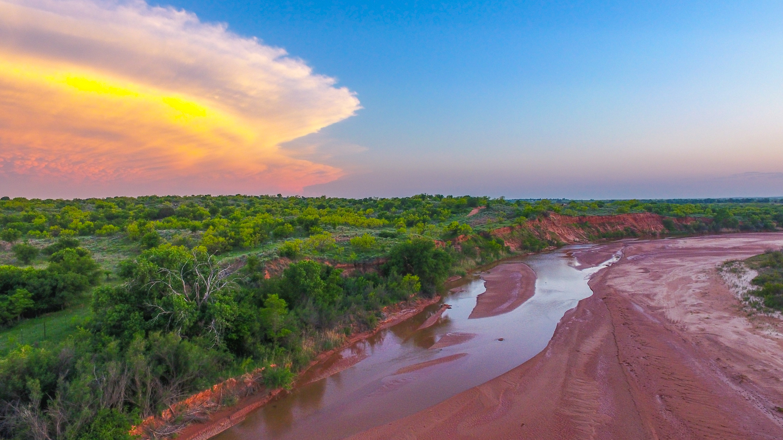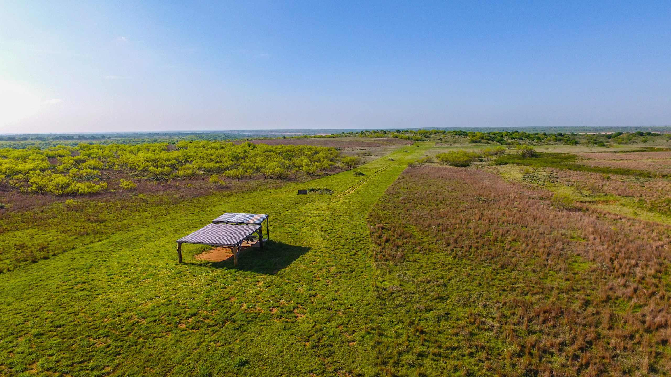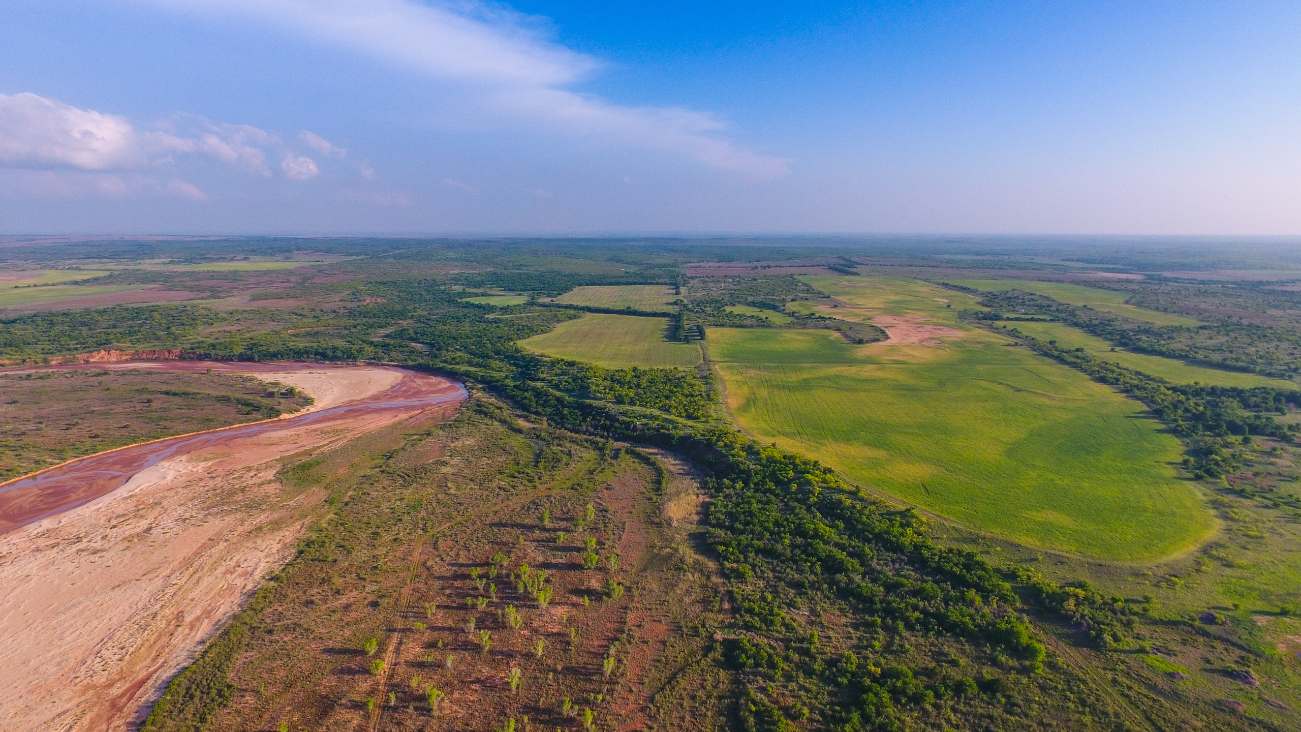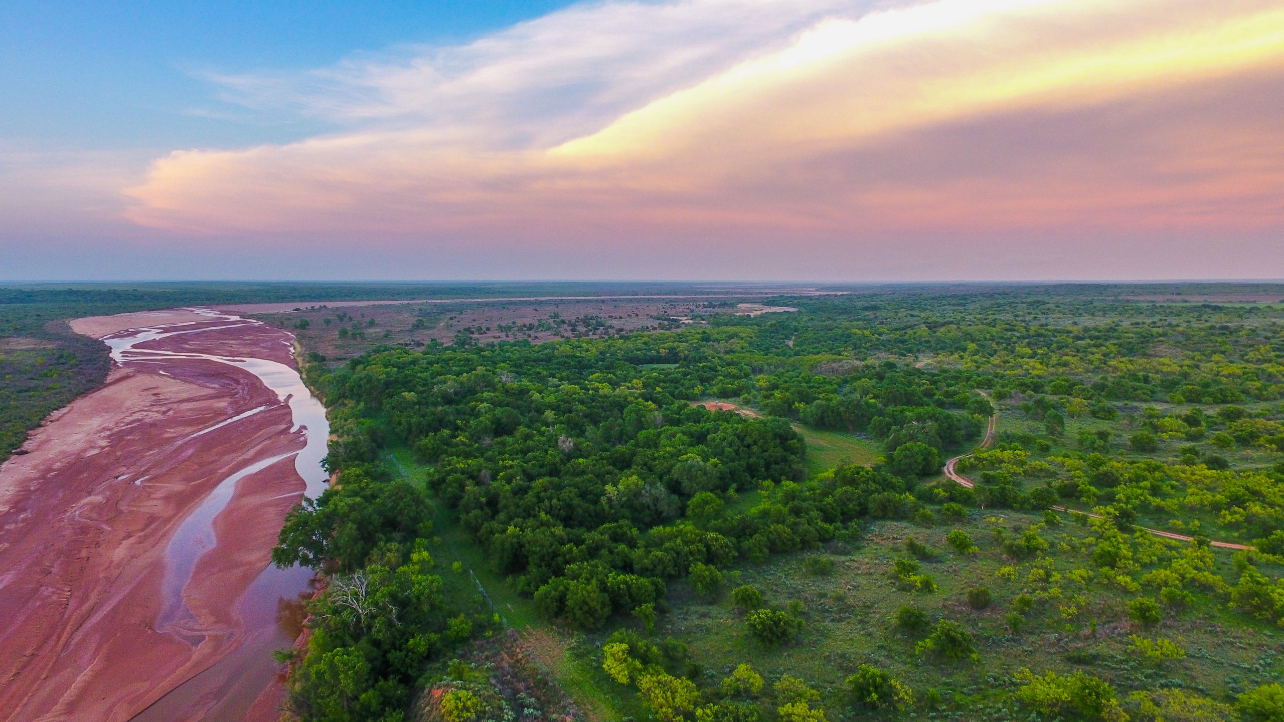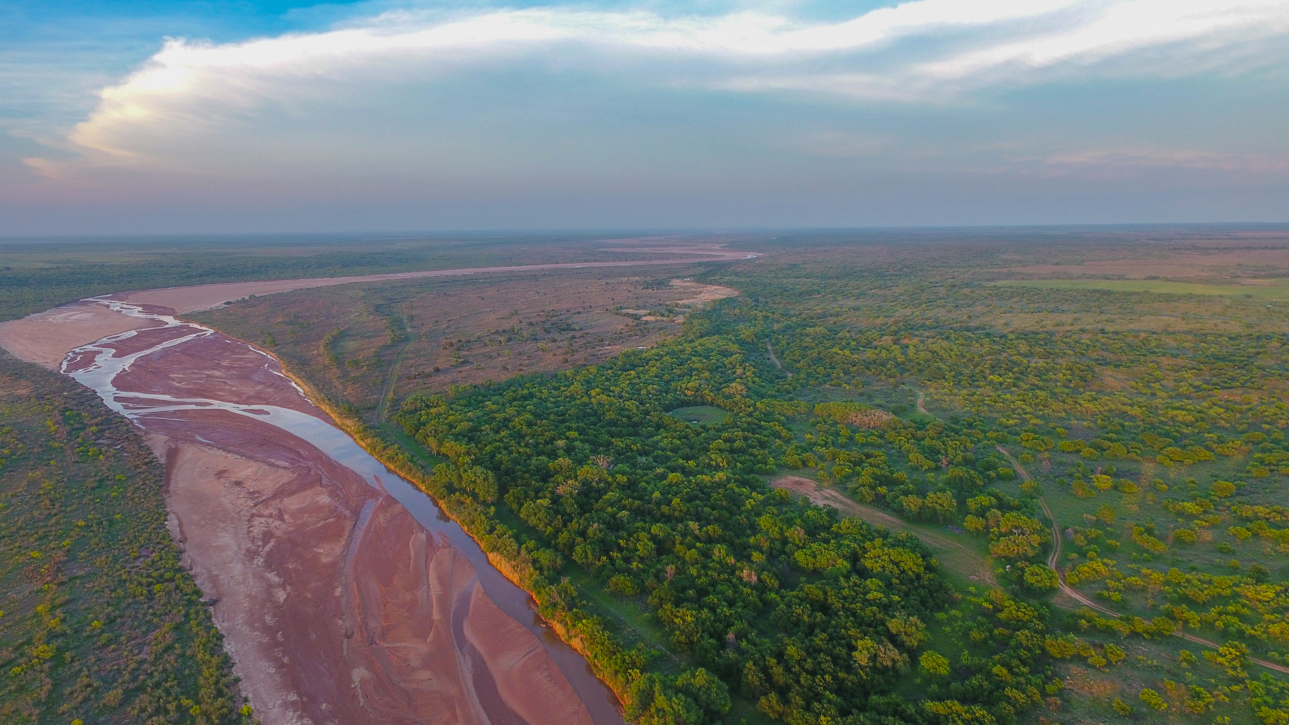 Land: The Dicar sits high upon red bluffs overlooking the Prairie Dog Town Fork of the Red River with some of the most diverse and desirable attributes found on a single ranch in the region. With nearly 3 miles of river frontage, the ranch possesses stunning wildlife habitat with an excellent mix of both topography and landscape features. Numerous, deep draws leading to the river hold towering, mature hardwood trees and there is a great balance of native cover to productive tillable acreage. The ranch is extremely well maintained with miles of internal roads, established hunting stand setups, productive wheat fields, and good water distribution throughout.