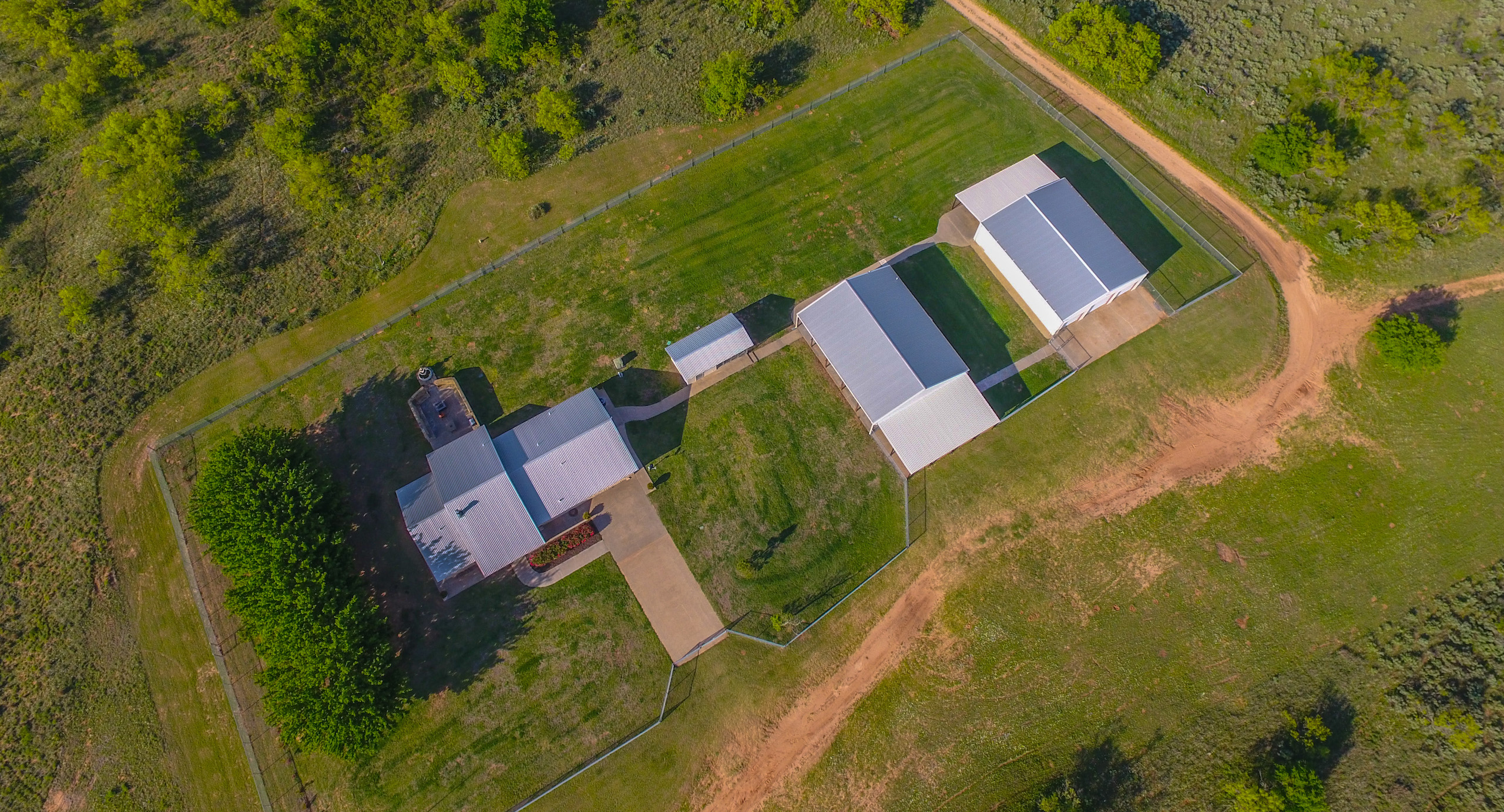 The headquarters area has a nice, fenced-in bermuda grass yard for the kids and dogs to play and 6ft sidewalk that connects and surrounds all structures!