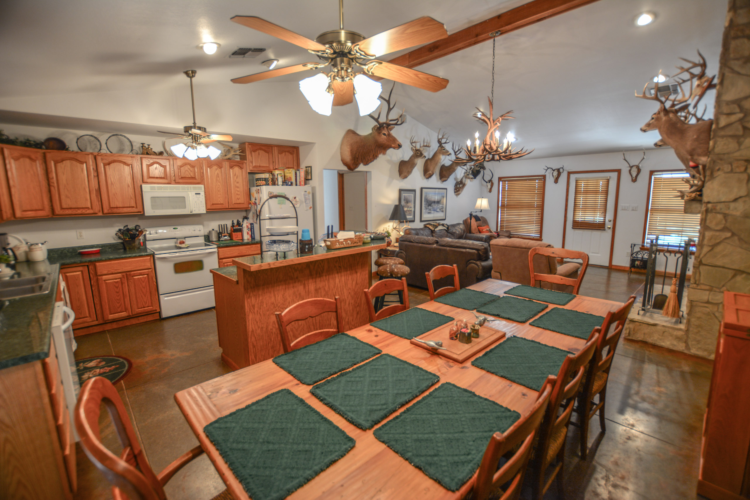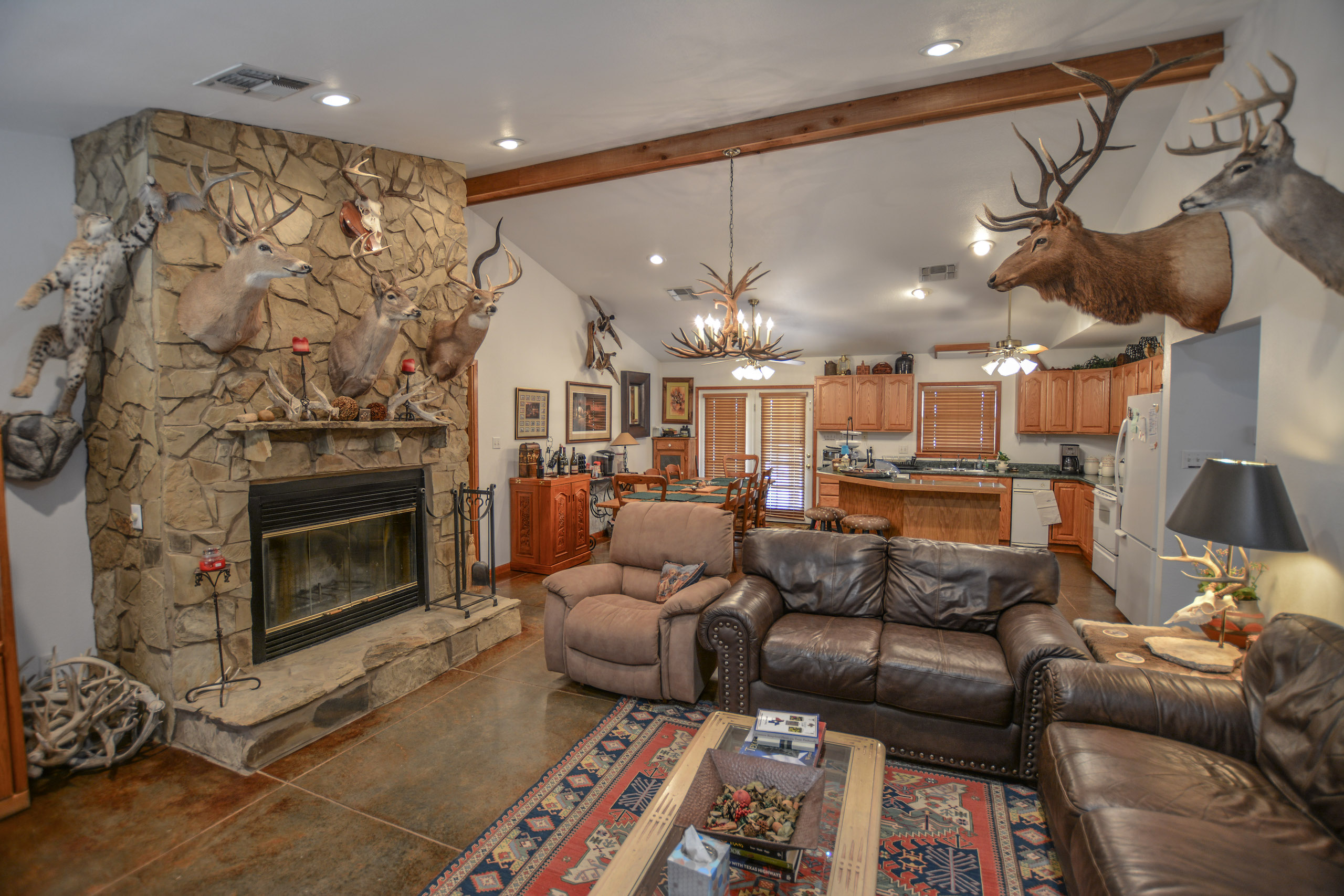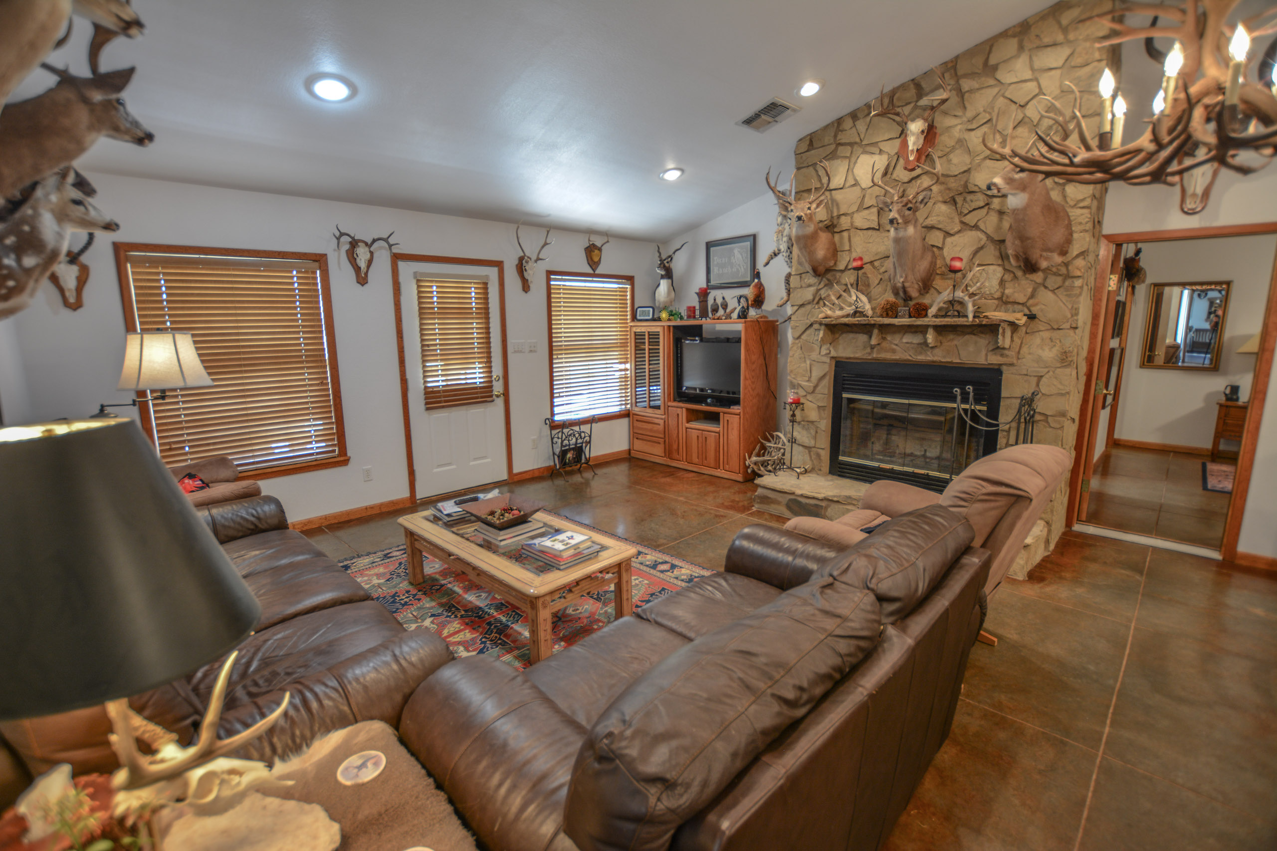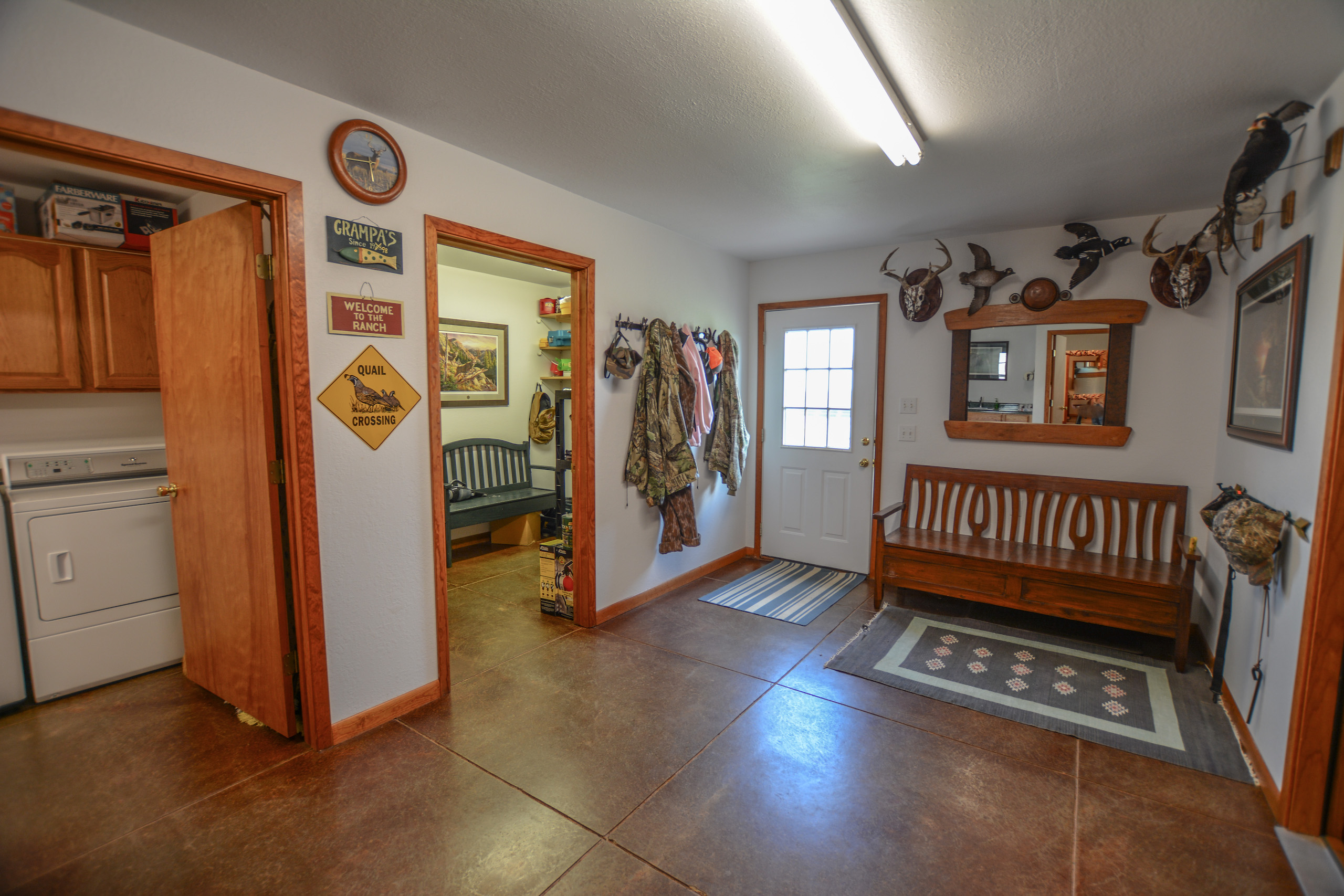 Improvements: The ranch amenities in place are just what you need to step in and start enjoying the ranch immediately featuring a well maintained main lodge, guest lodge, large shop, and dog kennels. The main lodge is a furnished 2,100+/- ft home that has a spacious kitchen and living space, master bedroom (with master bath), and four other bedrooms that help house all the family and friends for those big holiday or hunting occasions. A mudroom is perfectly located near the side door to store all your day’s hunting gear and there is also a washroom right next to the mudroom for taking hunting clothes straight to the washer. The back patio features a large built-in rock fire pit area, perfect for entertaining.