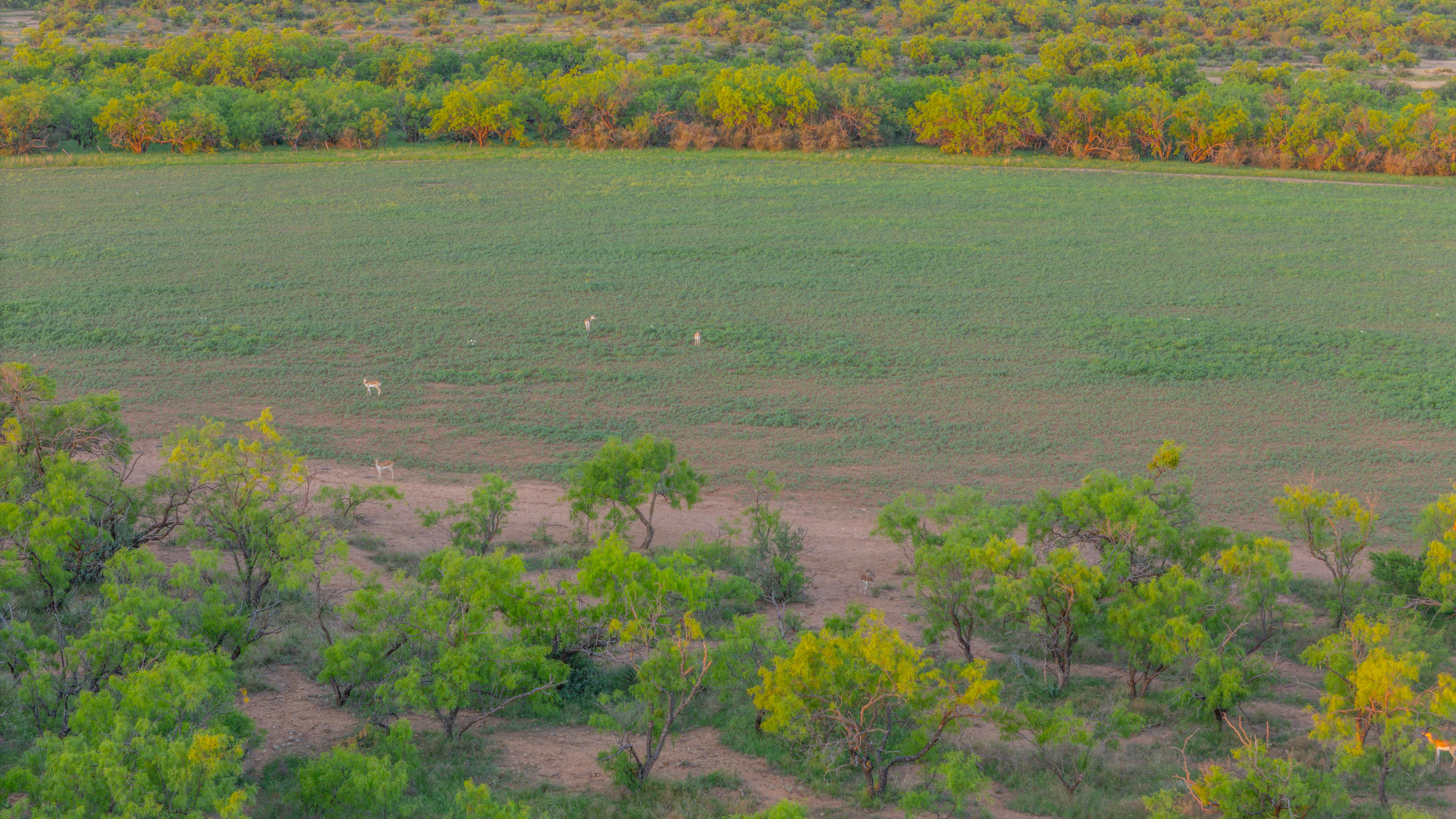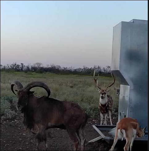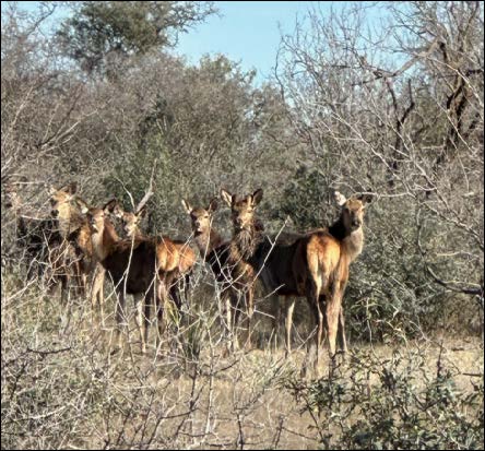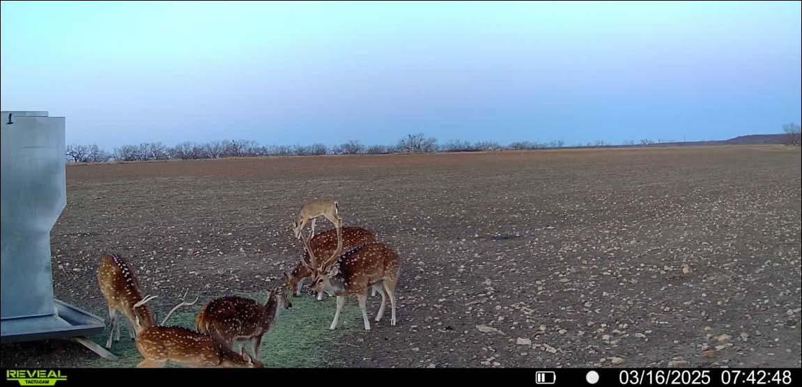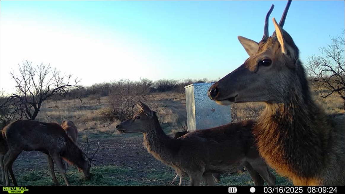 Wildlife is abundant, and the ranch has been managed with a strong emphasis on genetics and habitat quality. Native species include white-tailed deer, turkey, dove, and quail. Over the years, the owners have introduced improved genetic lines of white-tailed deer, producing impressive bucks from 200-inch stock. In addition to native species, several exotics have been established, including Axis, Fallow Deer, Aoudad, Blackbuck Antelope, and Red Deer originating from 500-inch genetic stock. The diverse population and thoughtful management make the ranch well-suited for a variety of hunting and wildlife viewing opportunities.