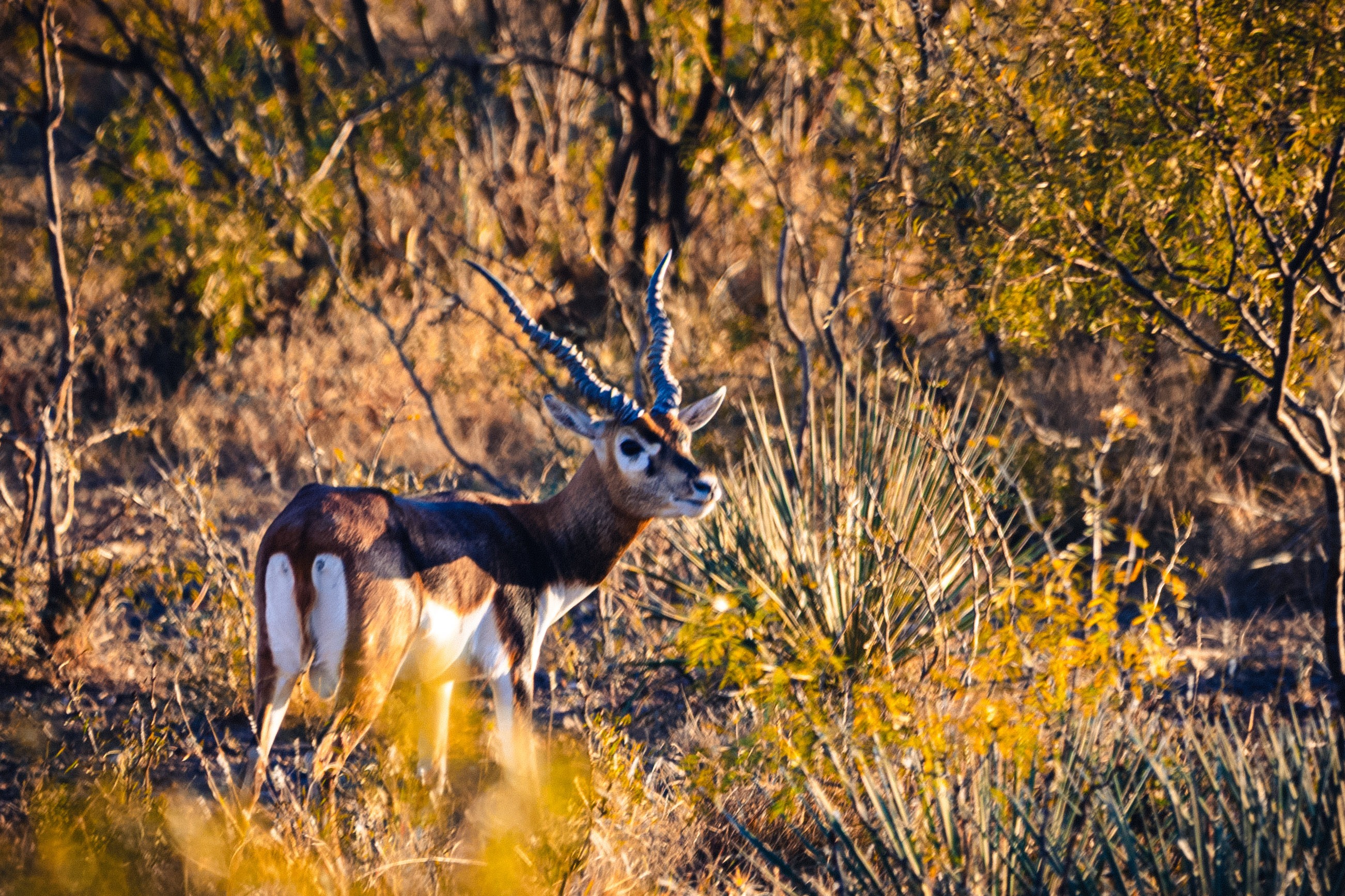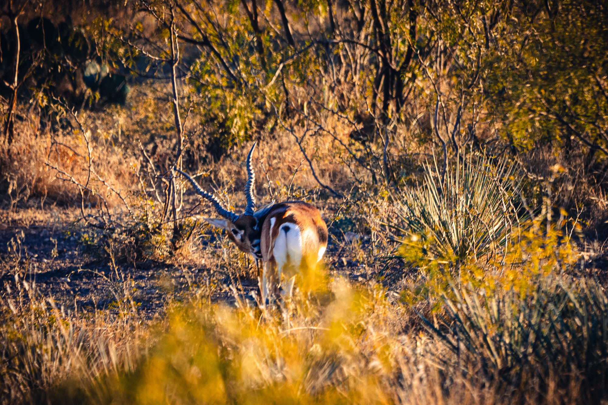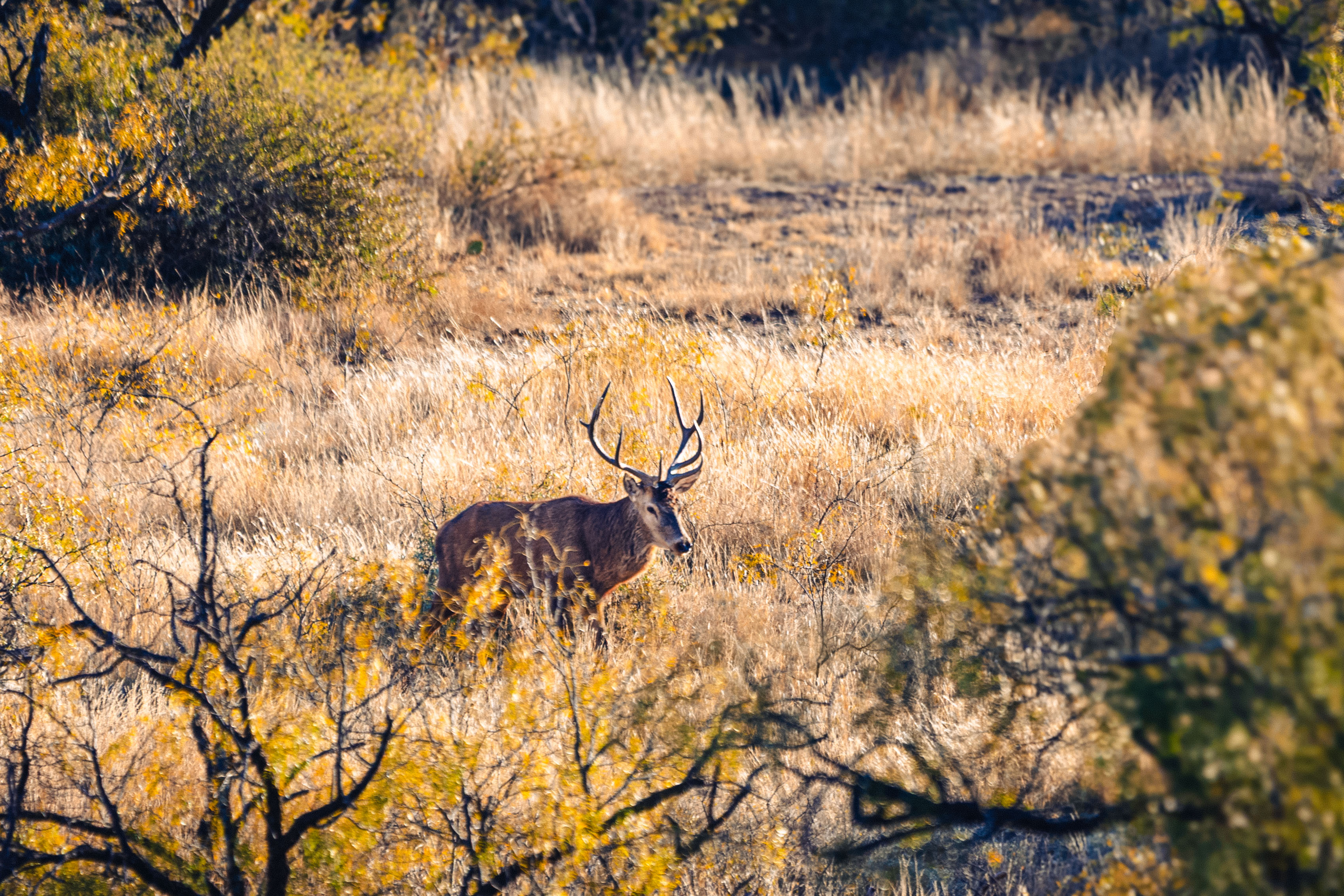Wildlife is abundant, and the ranch has been managed with a strong emphasis on genetics and habitat quality. Native species include white-tailed deer, turkey, dove, and quail. Over the years, the owners have introduced improved genetic lines of white-tailed deer, producing impressive bucks from 200-inch stock. In addition to native species, several exotics have been established, including Axis, Fallow Deer, Aoudad, Blackbuck Antelope, and Red Deer originating from 500-inch genetic stock. The diverse population and thoughtful management make the ranch well-suited for a variety of hunting and wildlife viewing opportunities.