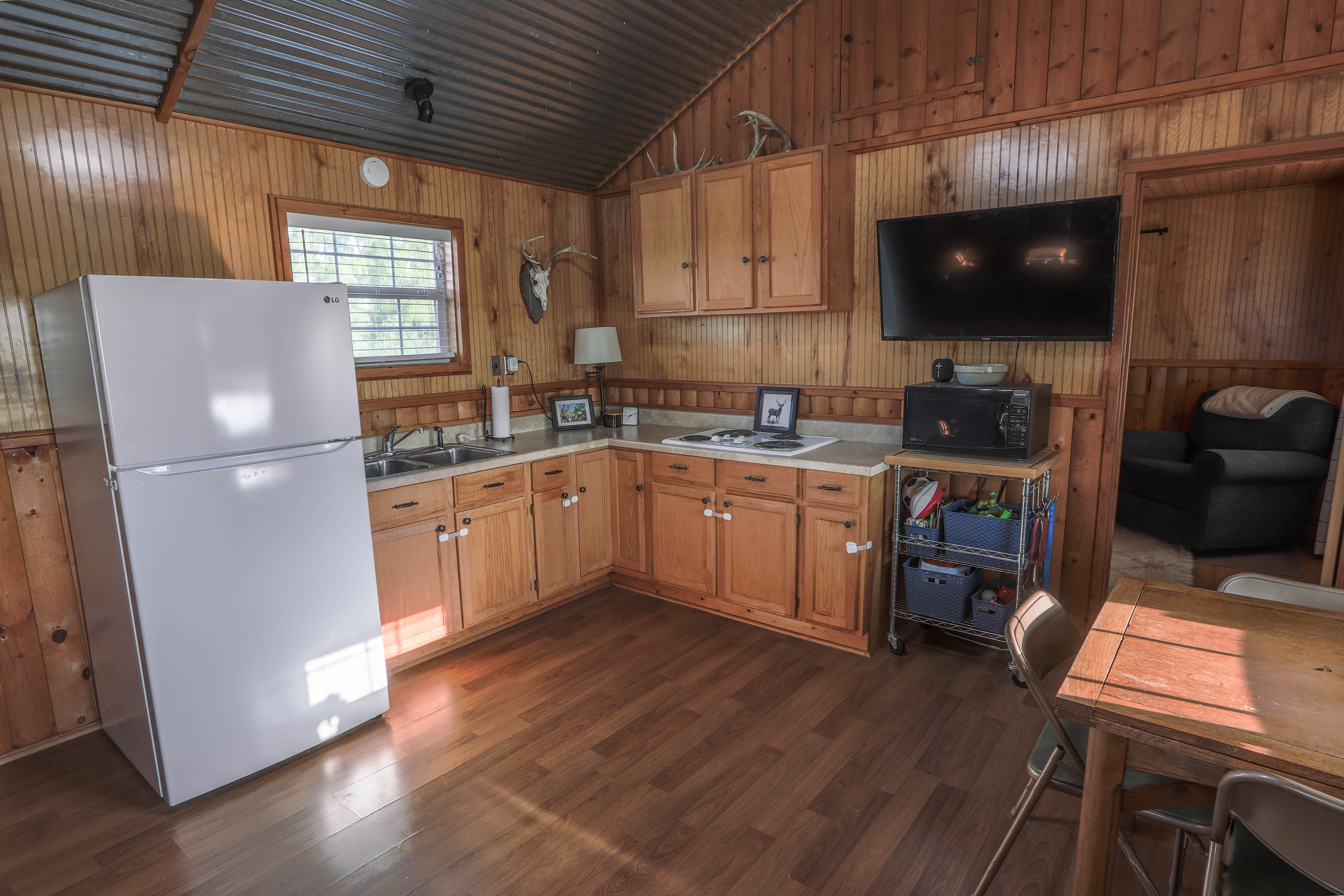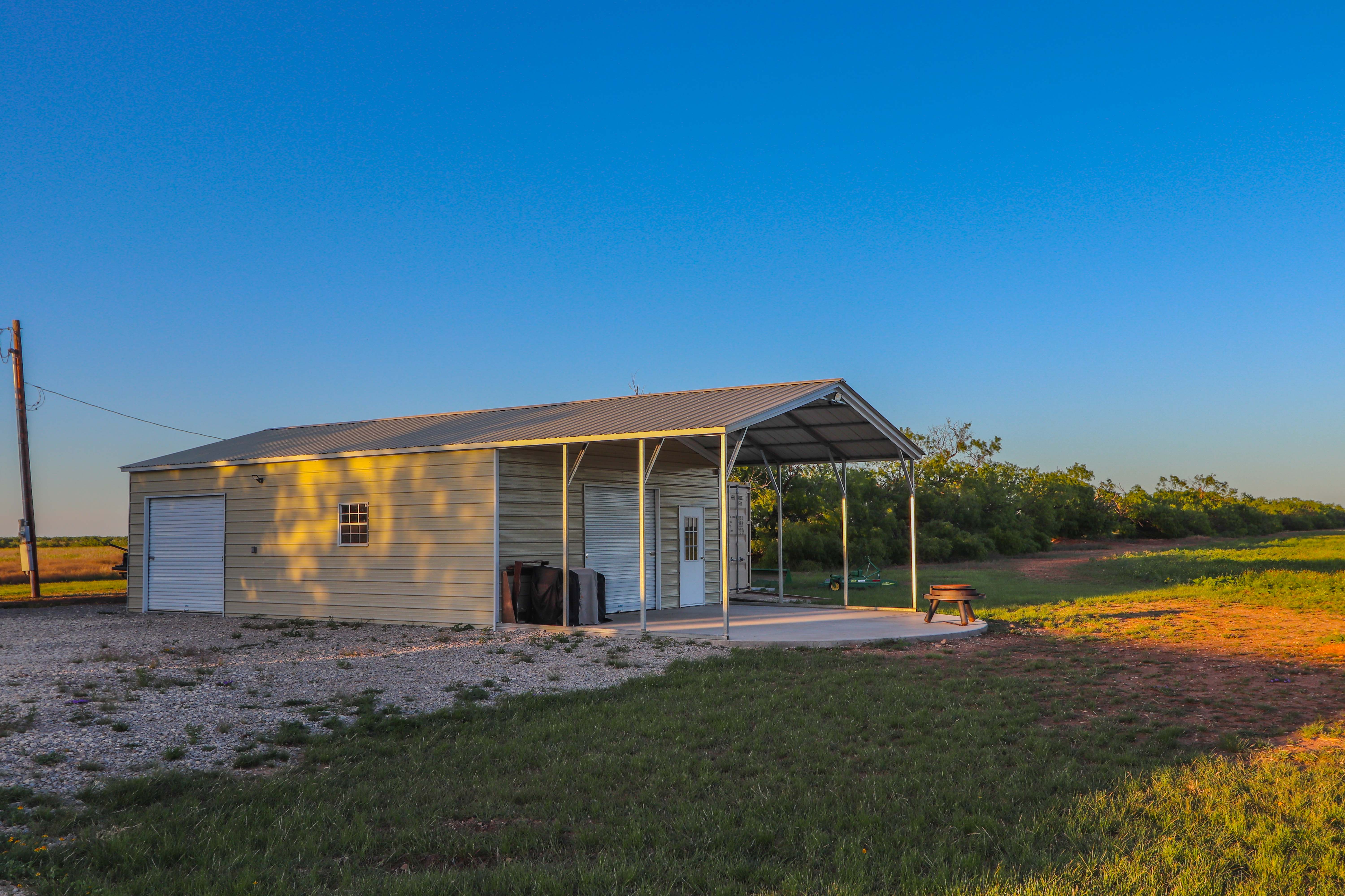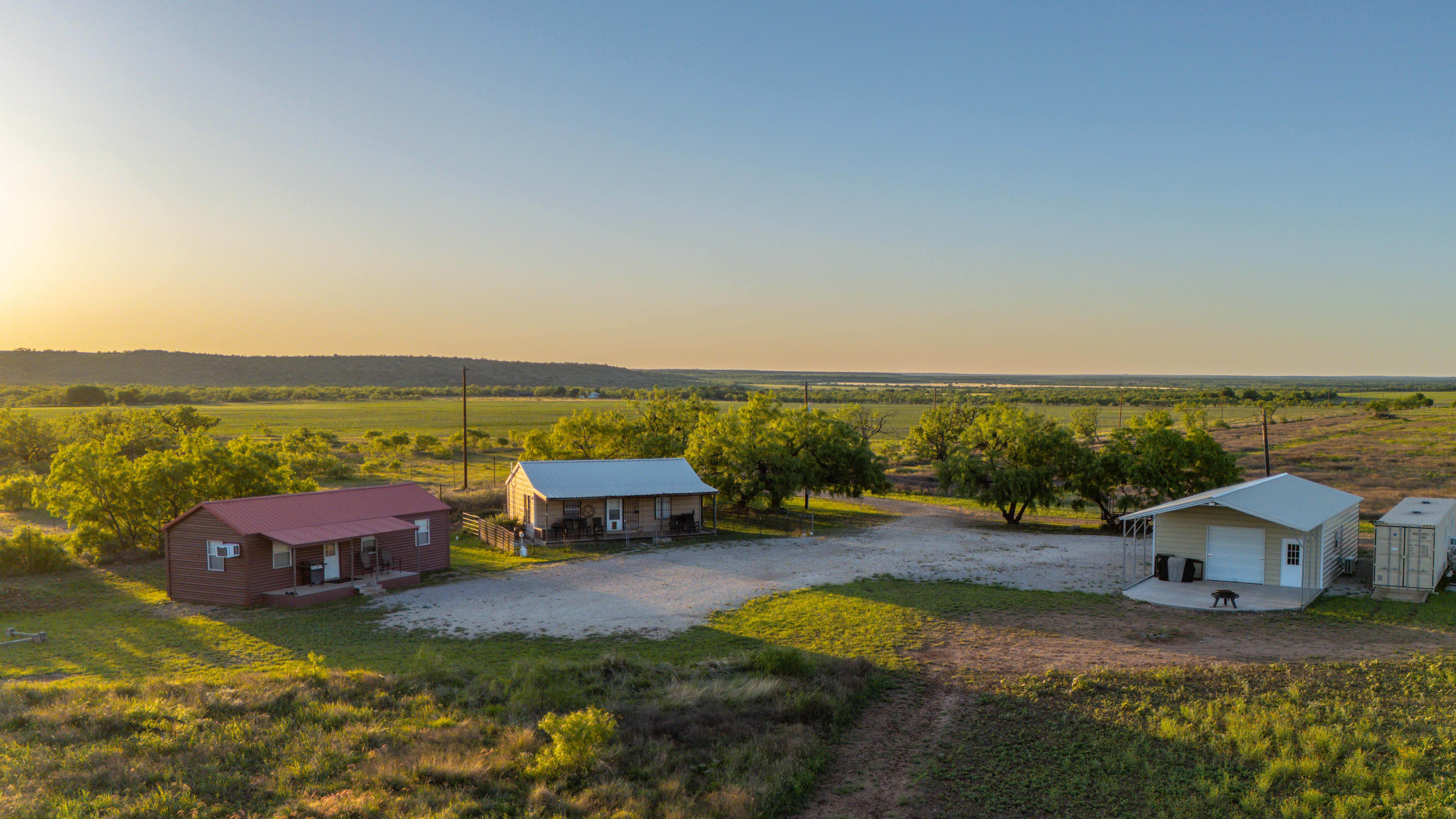 - Two furnished cabins plus 1,200± sq ft barndominium