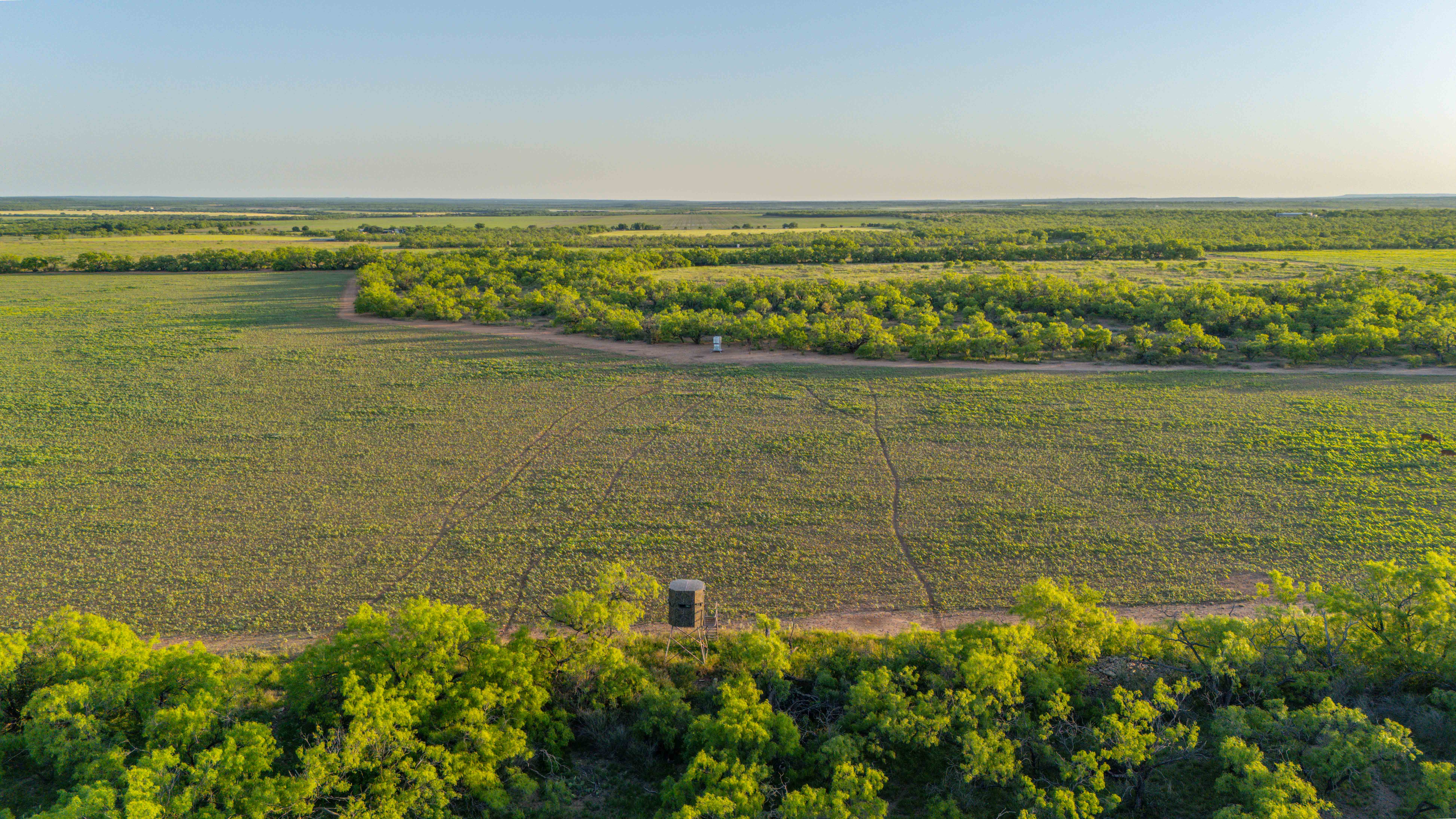 The ranch infrastructure includes well-maintained internal roads and trails that provide access to nearly every area by vehicle or UTV. There are multiple established food plots with Ranch King blinds, as well as open areas regenerated with native grasses. The property is fully perimeter high-fenced with approximately 0.75 miles of frontage along County Road 311, offering both security and accessibility.