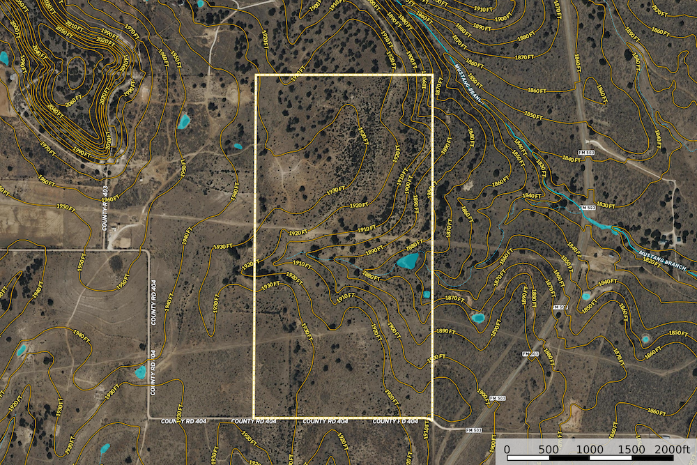 Utilities are available, with water service provided by the Coleman County Special Utility District line running along County Road 404 and electric service nearby. There is approximately 2,150 feet of road frontage on the southern boundary, providing convenient entry points and potential for future development.