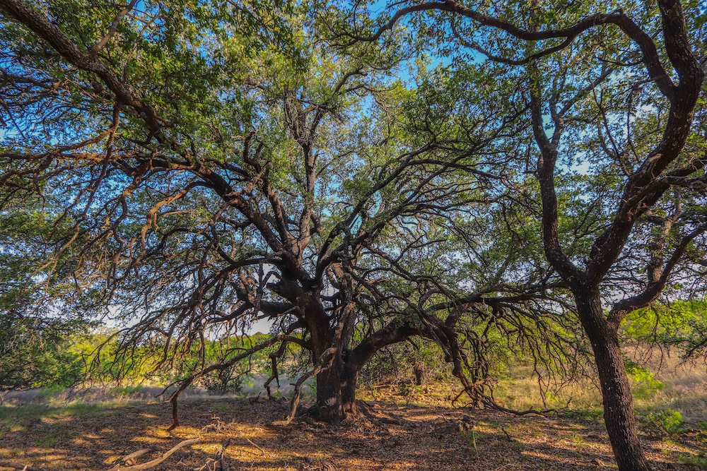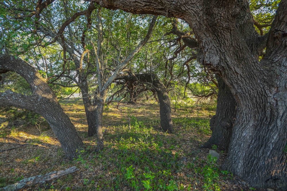 - Mature live oak and post oak trees throughout