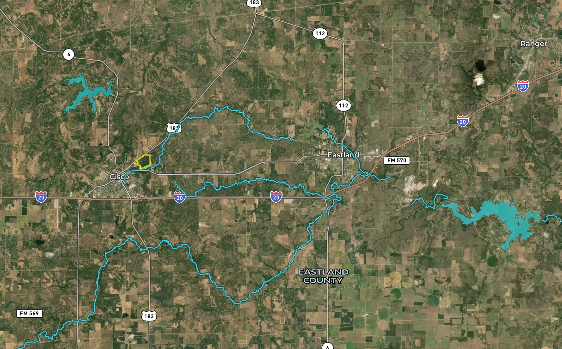 This is an excellent hunting tract located close to Cisco, TX, with easy access to Interstate 20 and Hwy 6. The thick oak and mesquite cover gives the tract a private, secluded feel. Multiple earthen tanks and a portion of the North Fork Leon River provide water for wildlife. The rolling topography and rock features provide a nice aesthetic to the ranch and multiple potential homesites throughout the property, making ideal locations for a barndominium or cabin. Electricity and water meter on-site in addition to an existing septic system.
