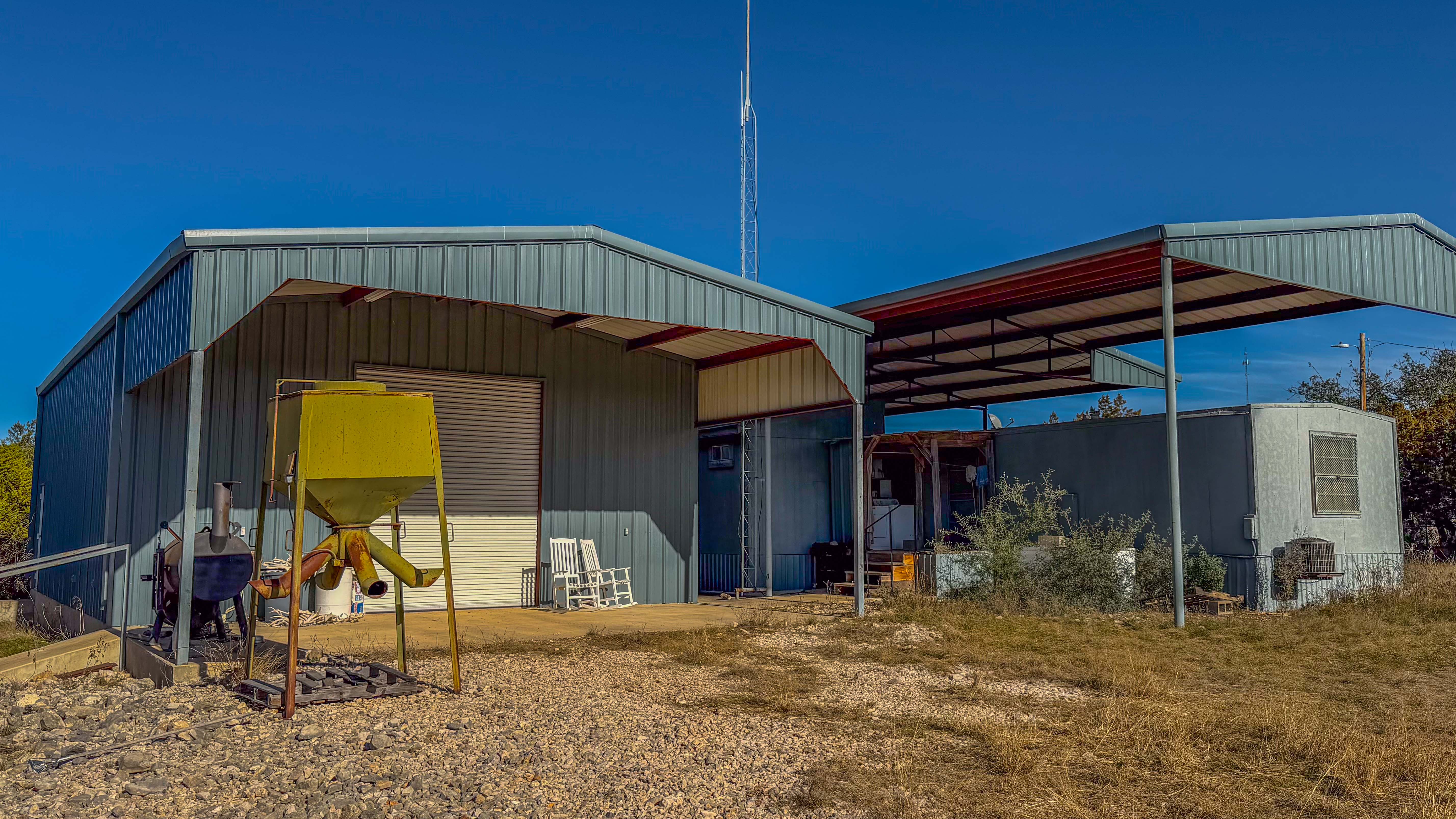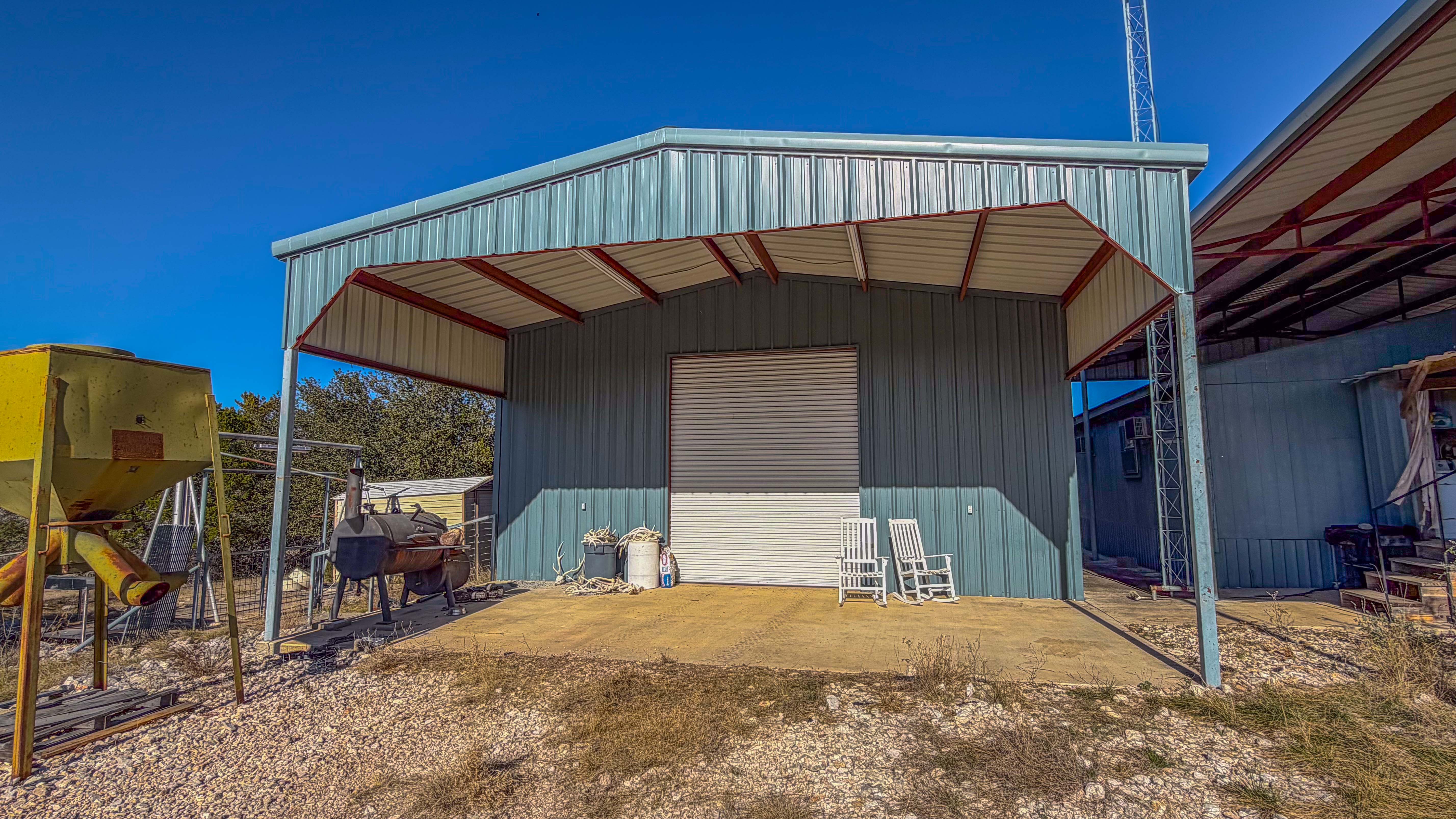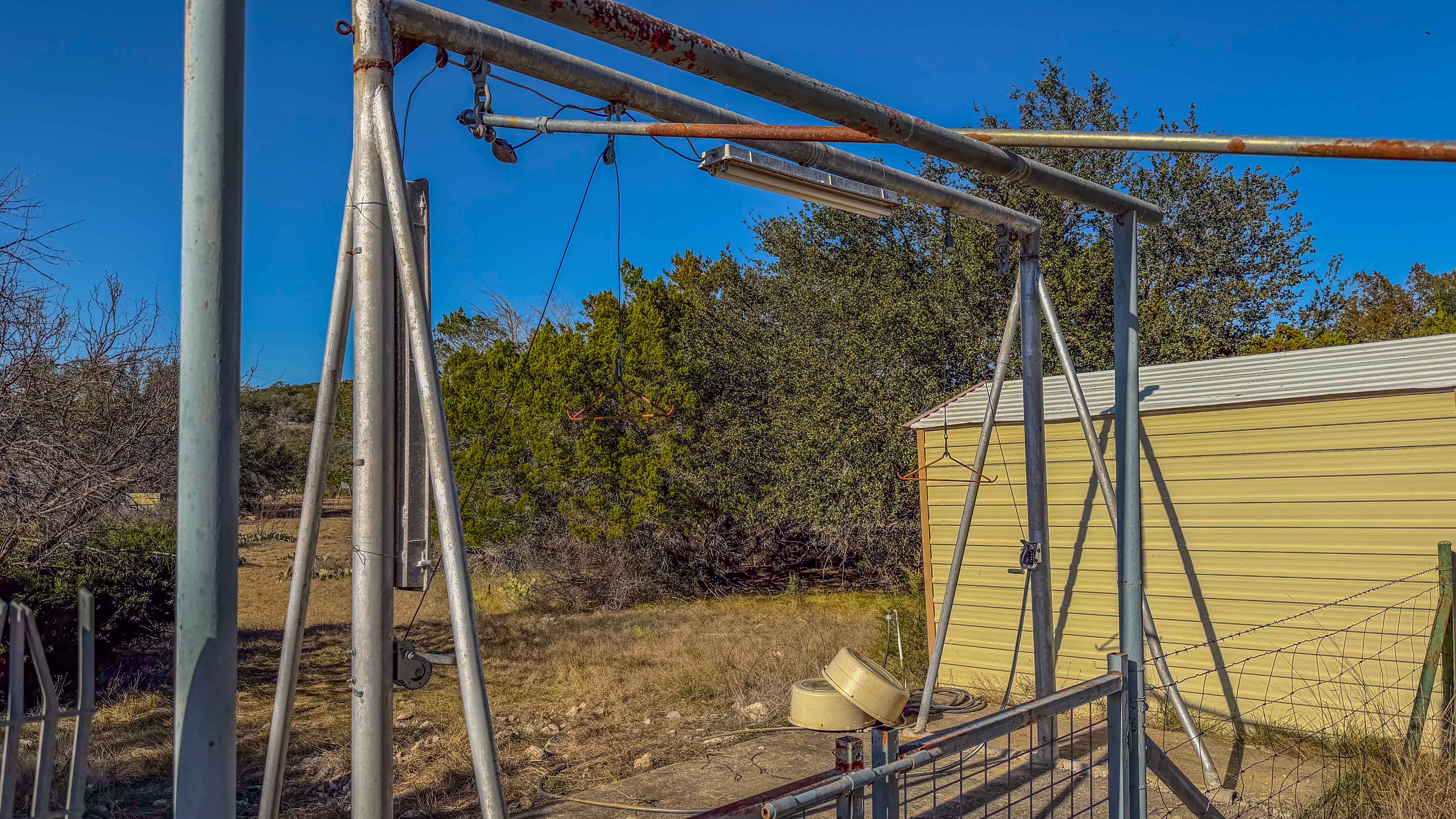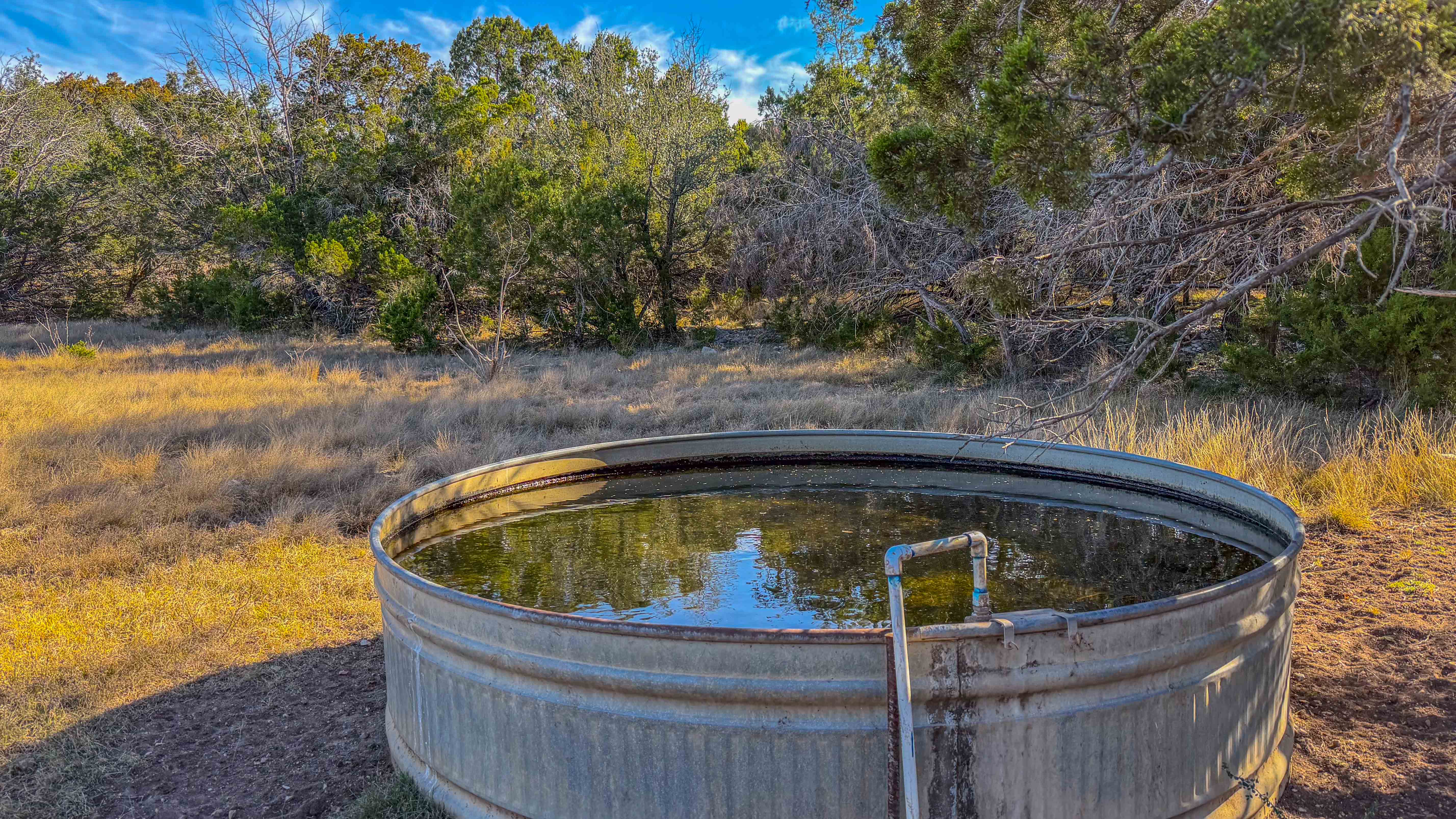 Thick native brush and varied elevation changes provide ideal habitat for whitetail deer, hogs, and axis, all of which are well established on the ranch. Feeders and blinds are already in place, along with two wildlife water troughs, making this a turnkey hunting setup. The property is mostly high-fenced, helping maintain healthy game populations.