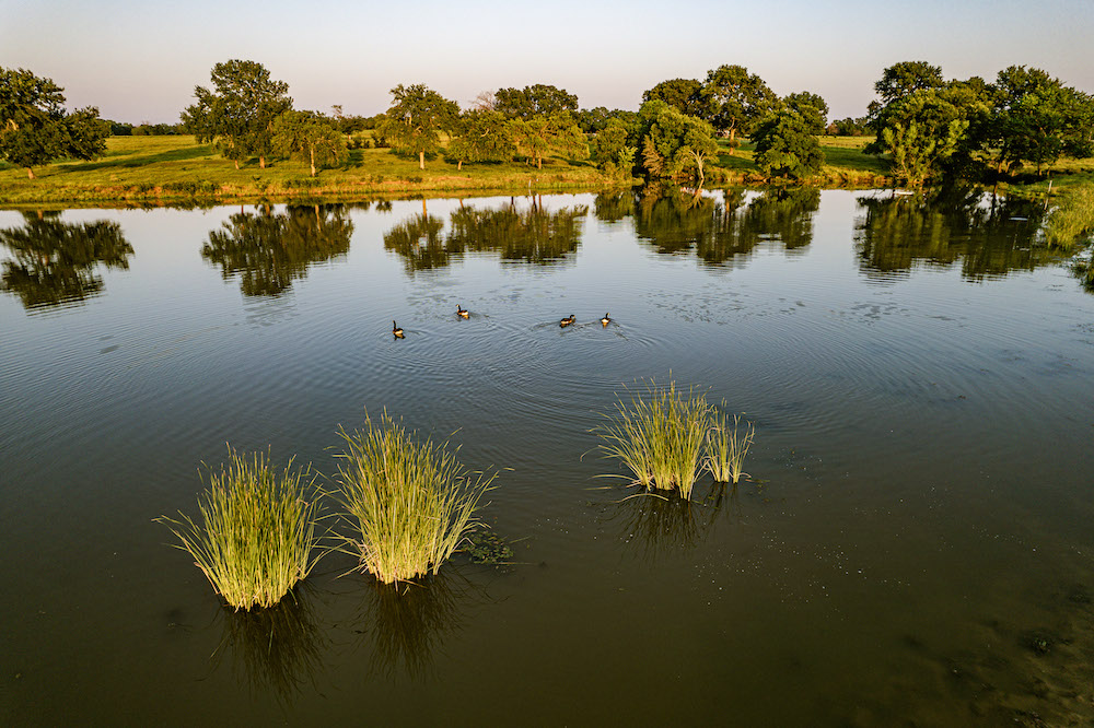 Natural Beauty: The ranch is adorned with pecan trees and a variety of soft and hardwoods, offering picturesque views and a tranquil environment. Enjoy watching resident geese and breathtaking sunsets in the pecan grove near the front of the property.