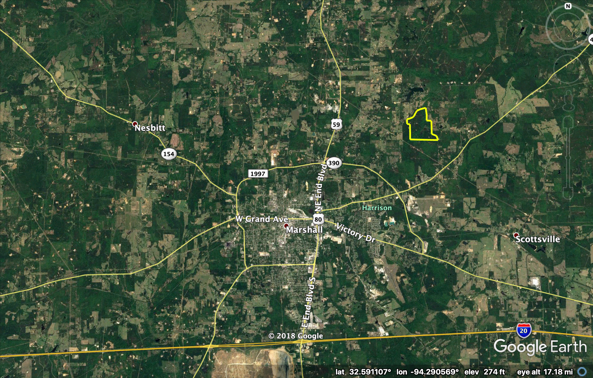 Approximately two and a half hours from downtown Dallas, Approximately 45 minutes from Shreveport, LA, and less than 15 minutes from the center of Marshall, TX