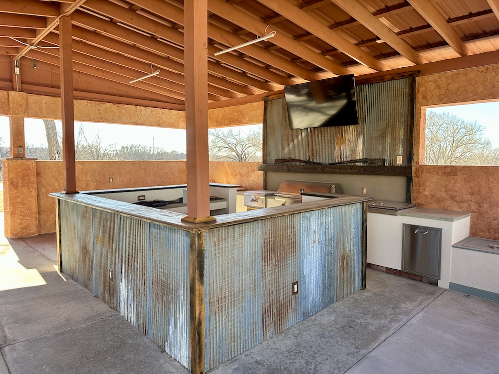 - Lodge has an adjoining outdoor kitchen (fully equipped) & covered entertainment patio