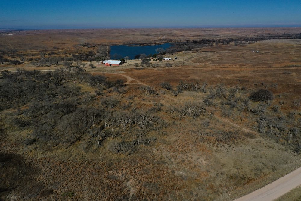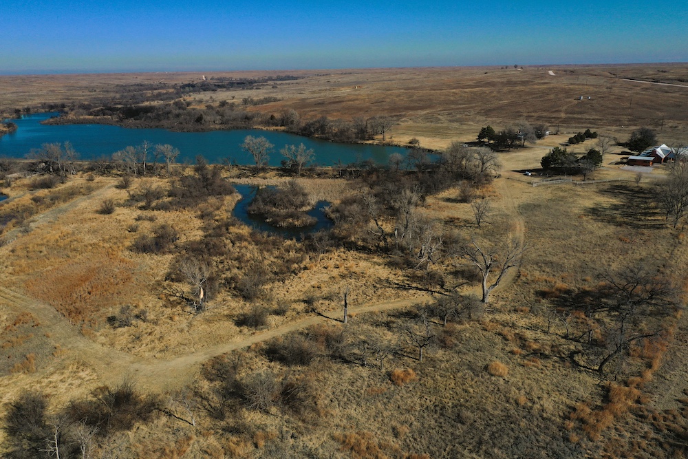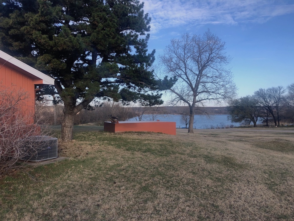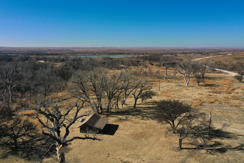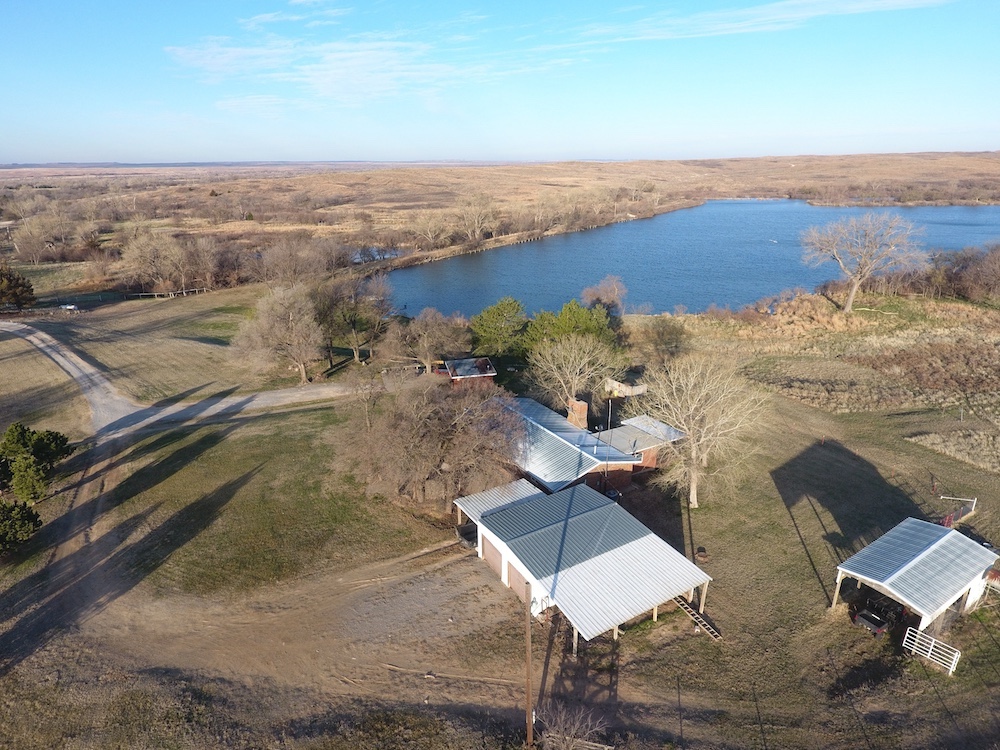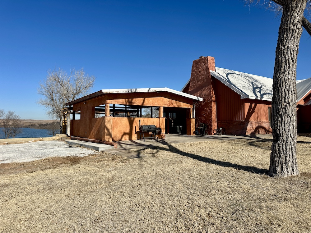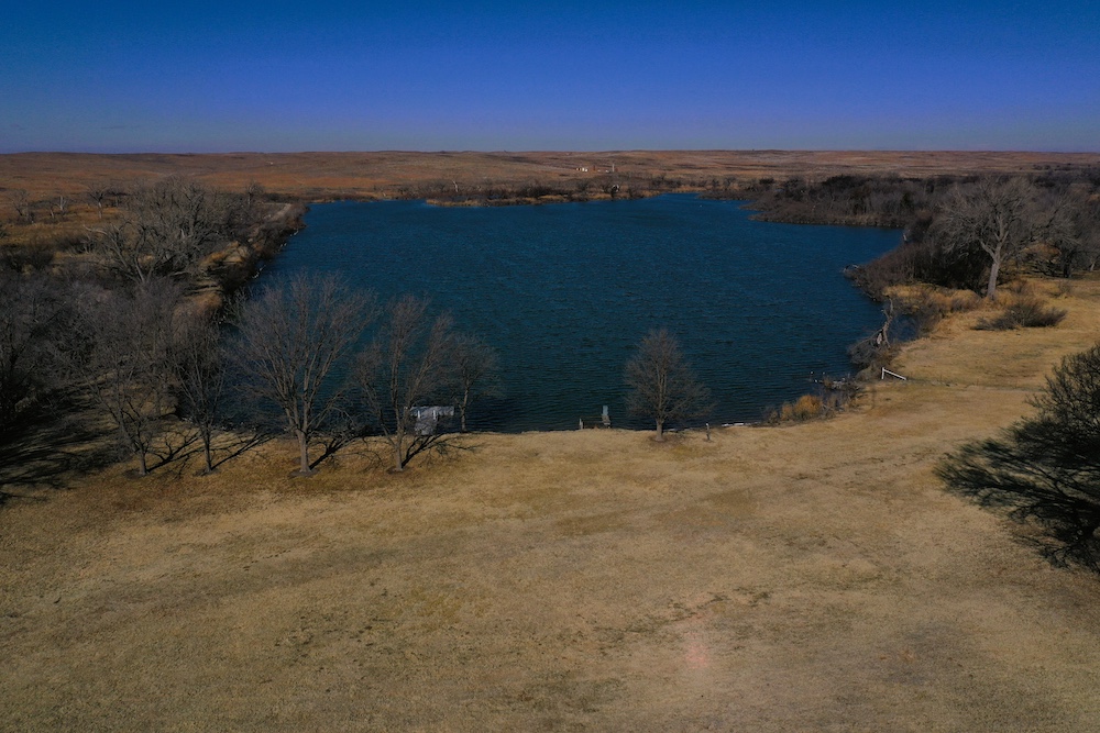 About the Land itself; Just outside the back door of the Lodge is Lake Kiowa. It’s a 16 acre lake, stocked with Largemouth Bass, Crappie, Blue-Gill and Channel Catfish. The lake-level is influenced by a high water-table. When combined with run-off from the creek, it holds water even in the worst drought years.