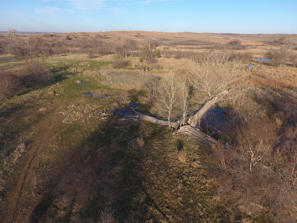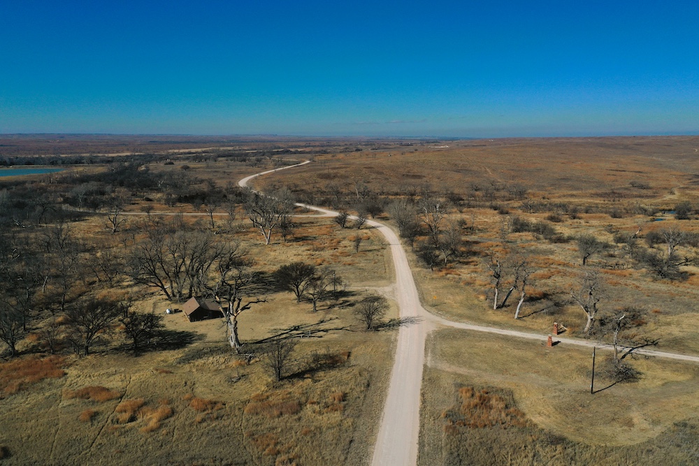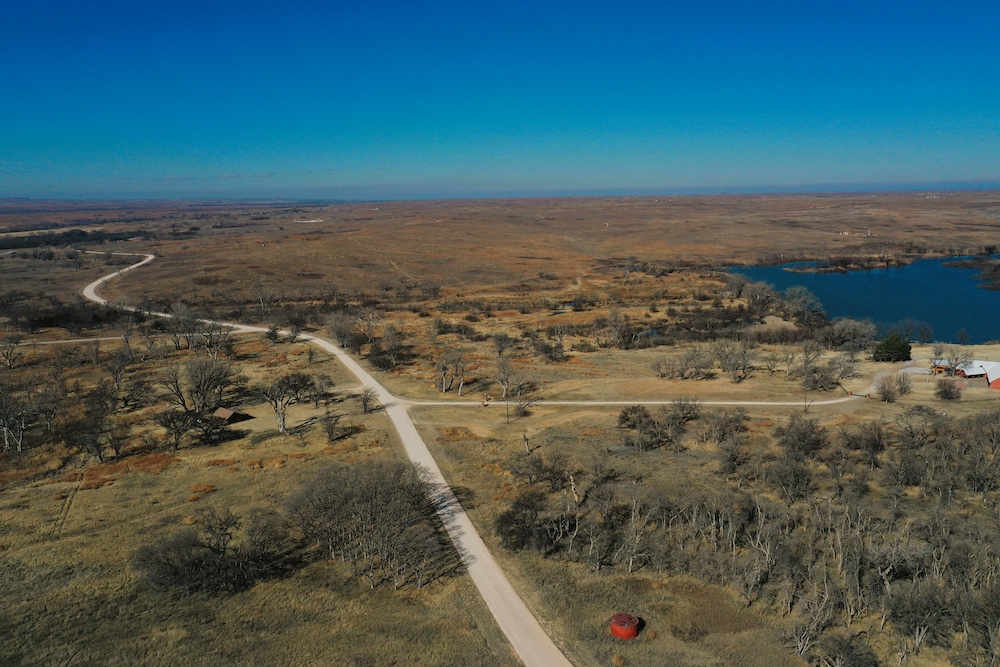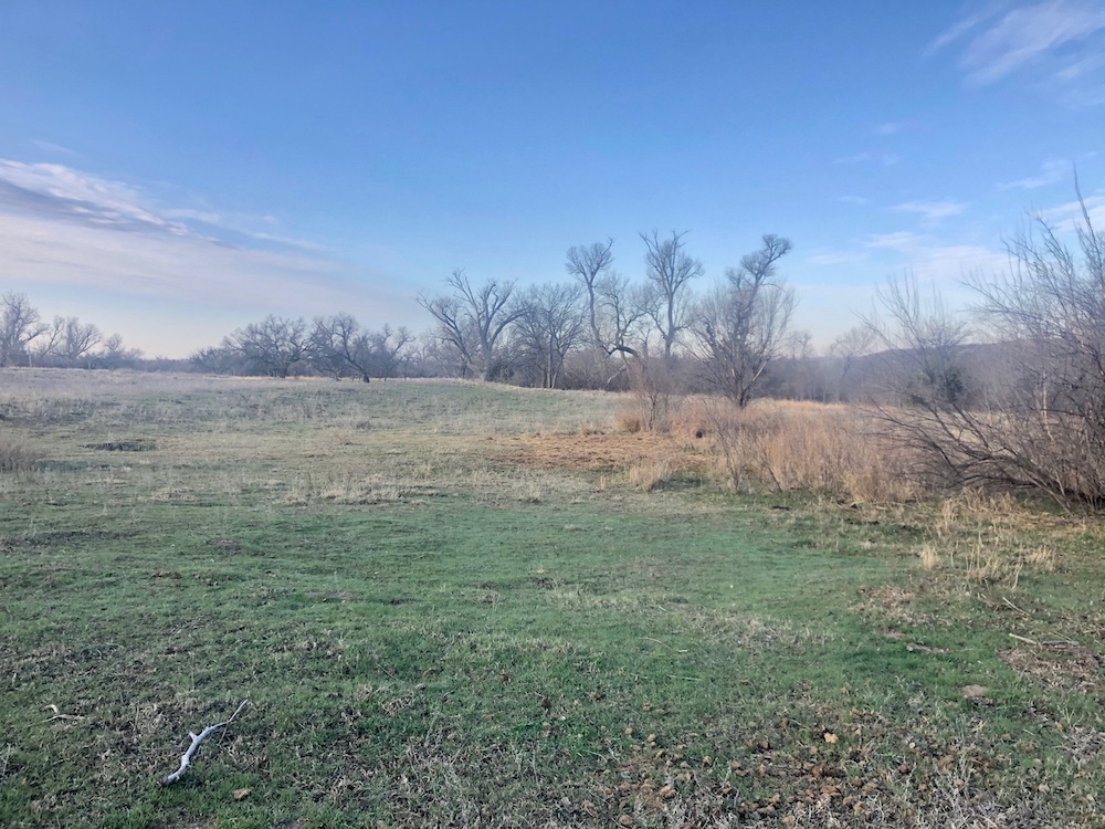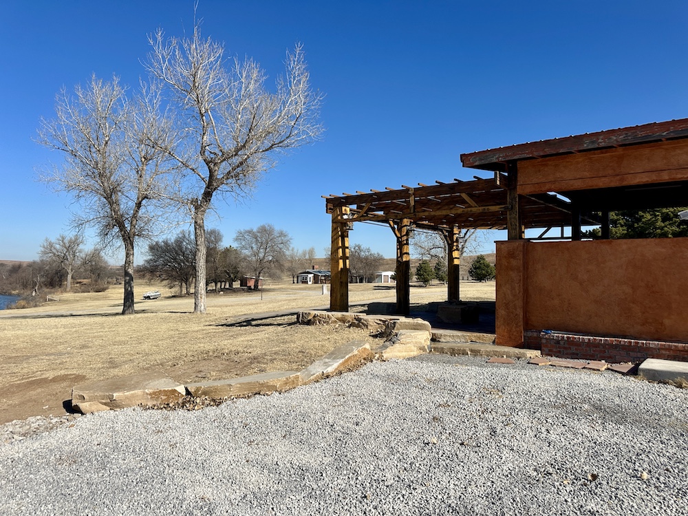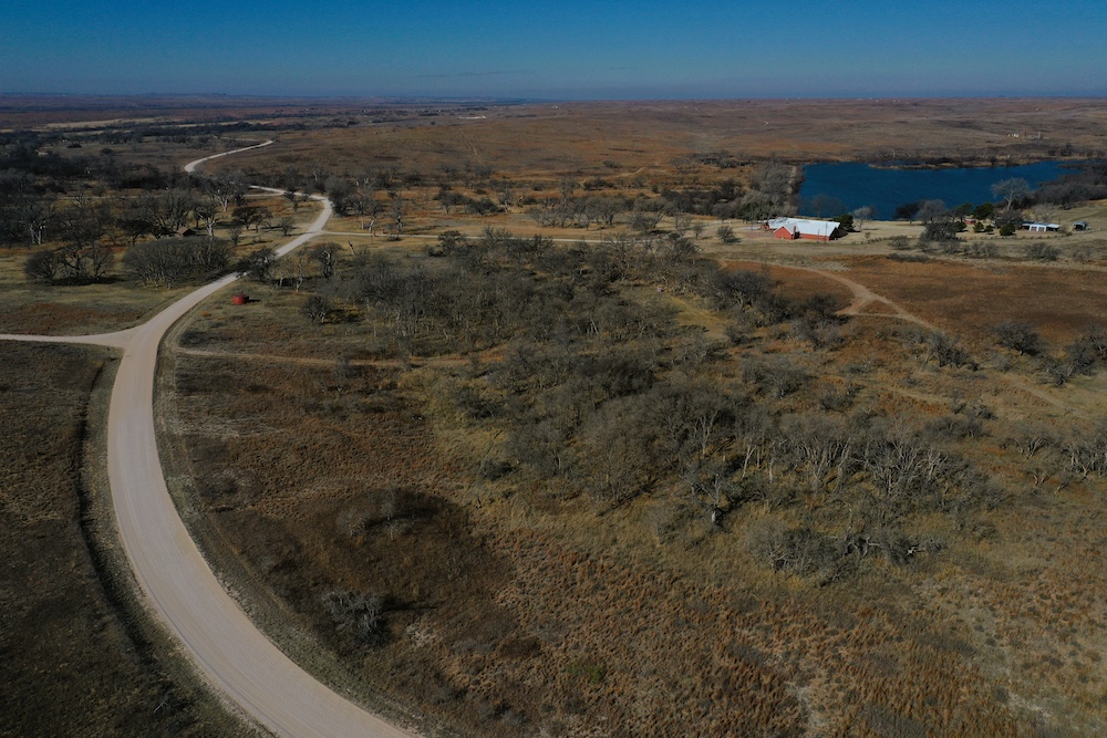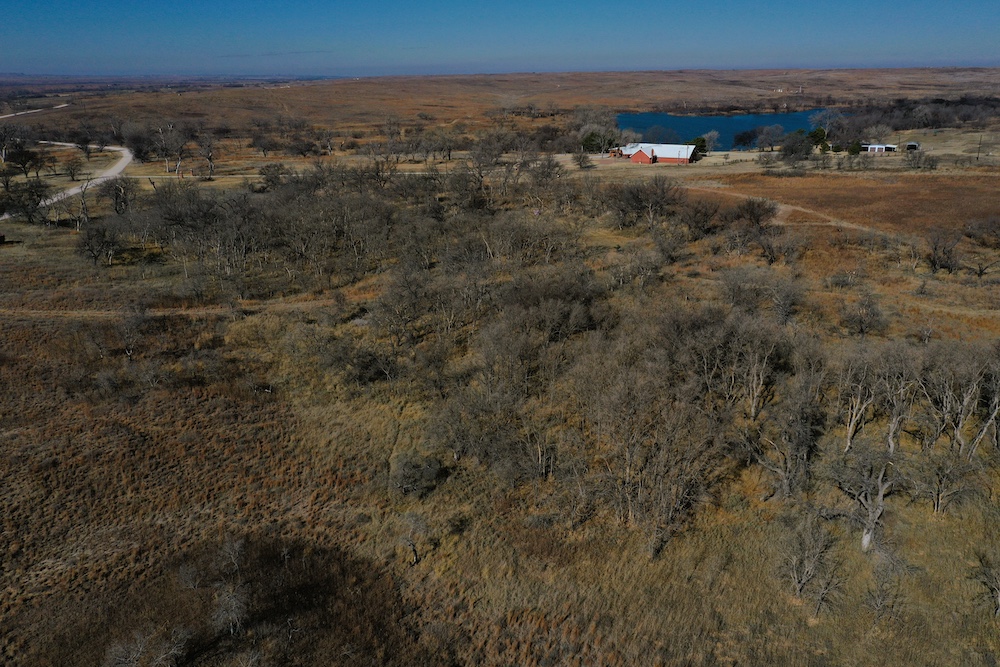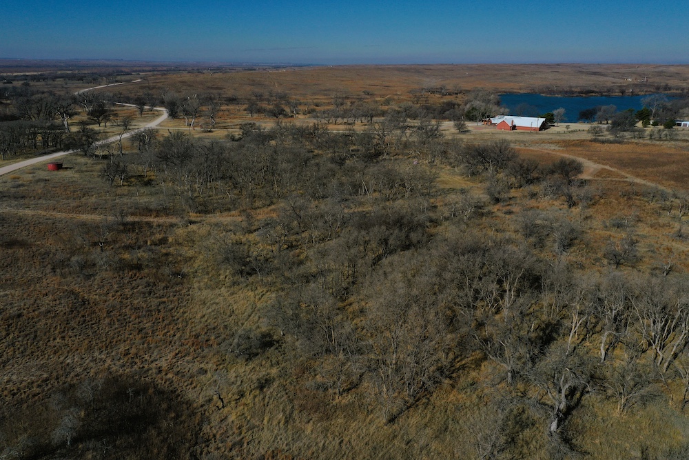 About the Land itself; Just outside the back door of the Lodge is Lake Kiowa. It’s a 16 acre lake, stocked with Largemouth Bass, Crappie, Blue-Gill and Channel Catfish. The lake-level is influenced by a high water-table. When combined with run-off from the creek, it holds water even in the worst drought years.
