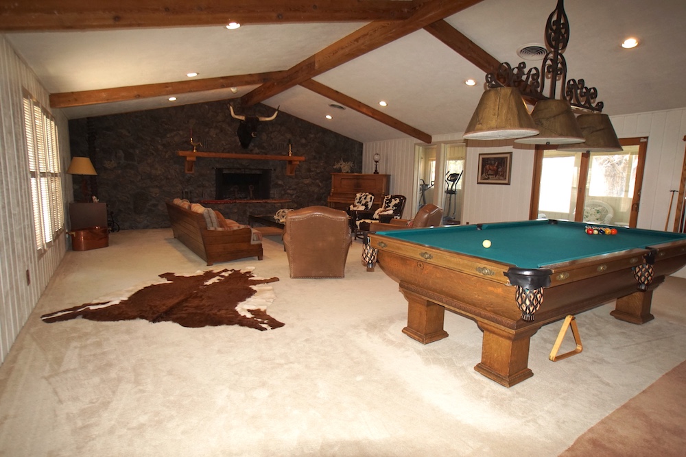 - Large entertainment area, gourmet kitchen,media room, game room, furnishings, appliances, pool table, shuffleboard, etc