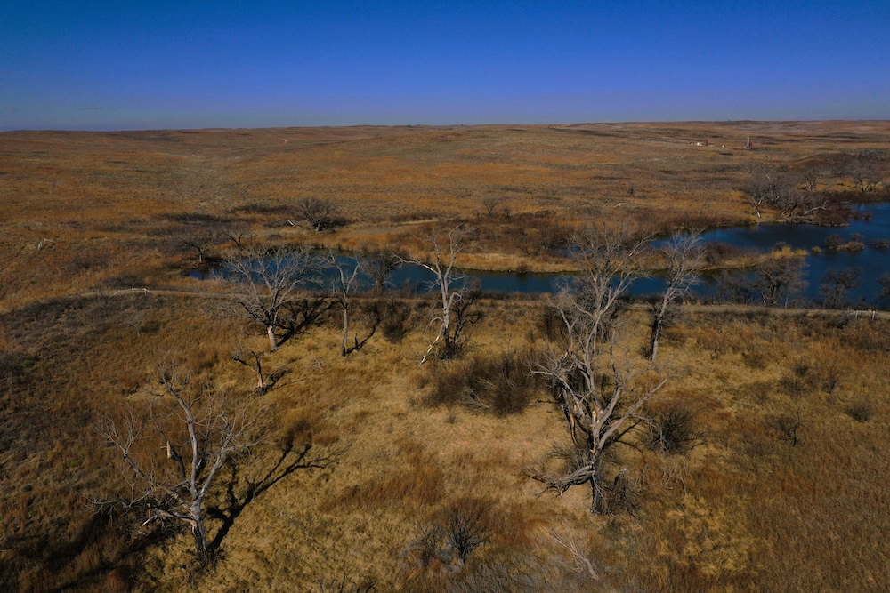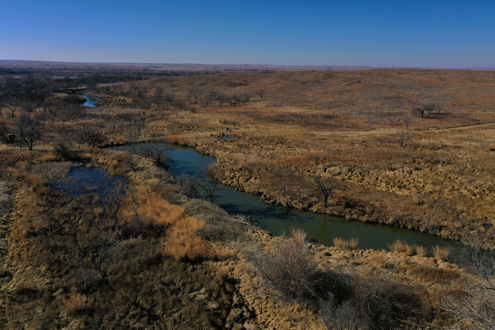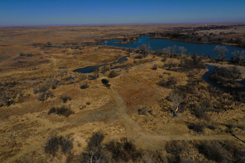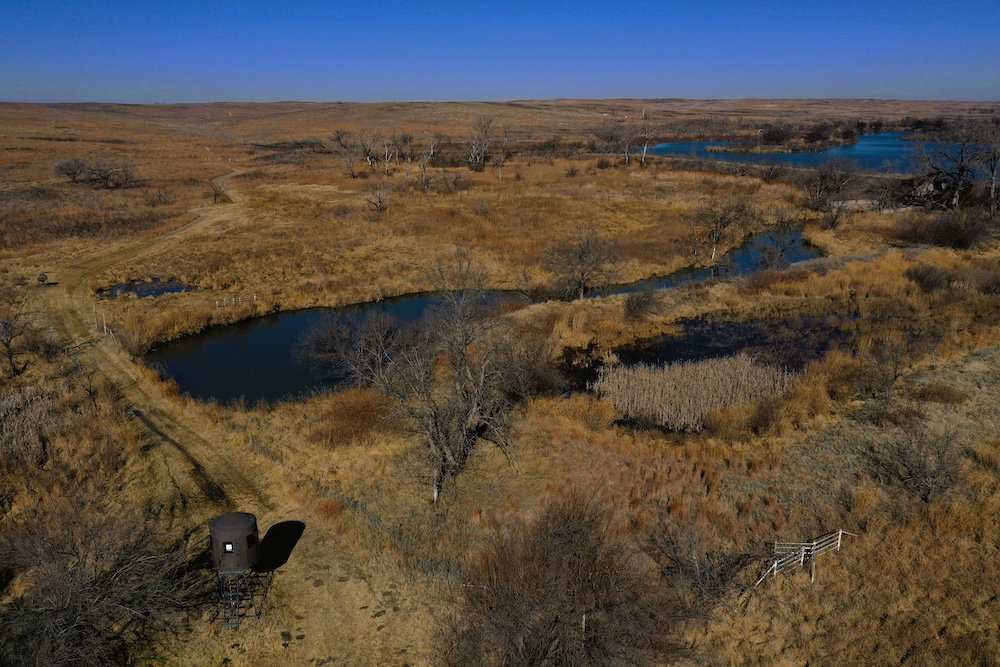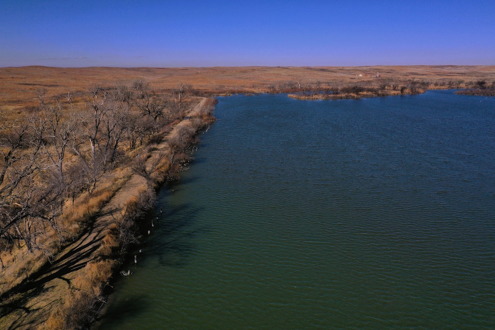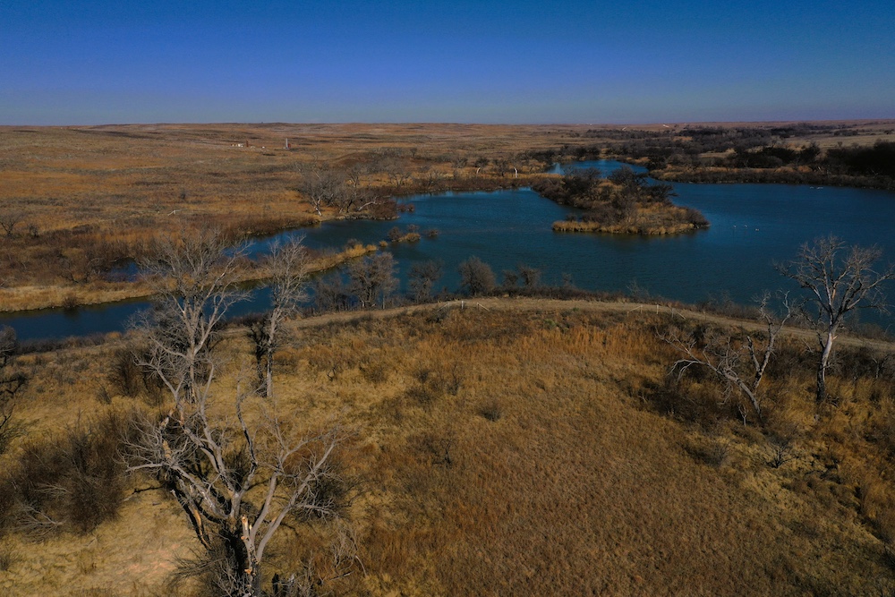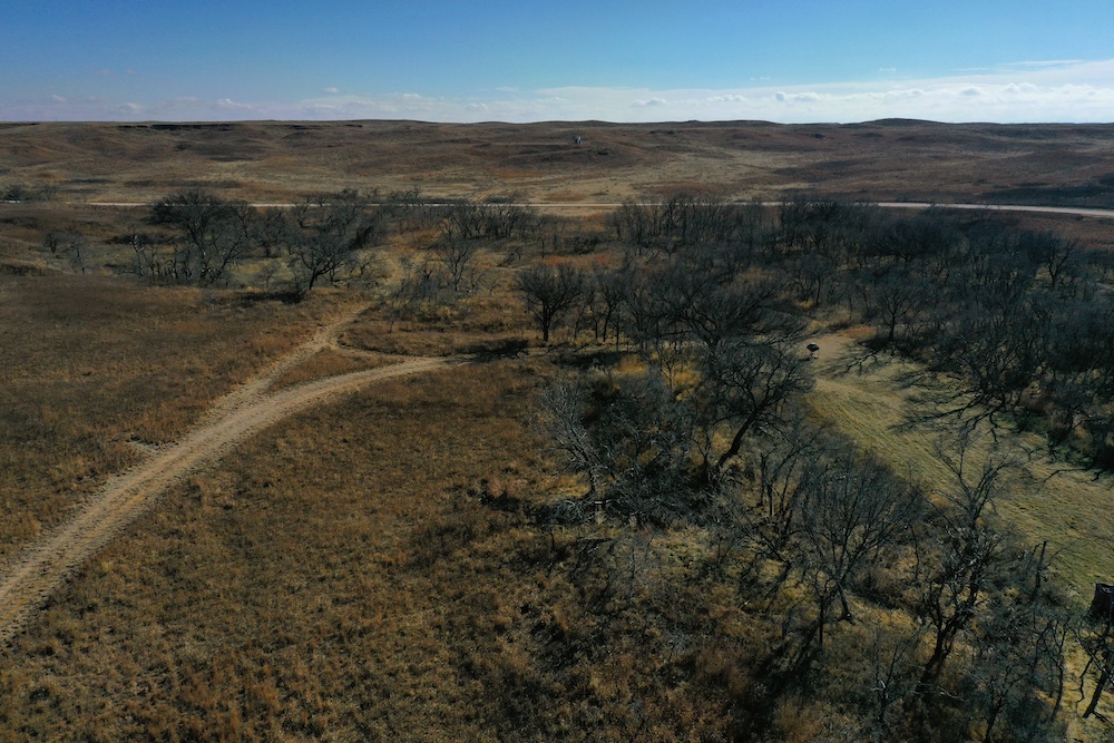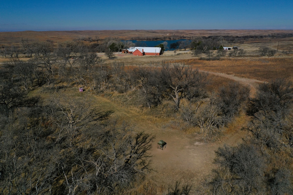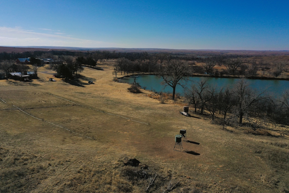Within walking distance of the Lodge is Lake Marvin. It’s a 63 acre lake within Black Kettle National Grasslands, consisting of 576 Acres. This is a No-Hunting zone and serves as a wildlife refuge that borders the Lodge-acreage. The combination of this refuge, along with the two well-managed ranches surrounding the property, has resulted in some 200”+ Whitetails and 200”+ Muleys being harvested in this specific area. The deer can get old here making it a trophy hunter’s paradise. It’s not uncommon to have a dozen deer grazing in each yard in the evening.