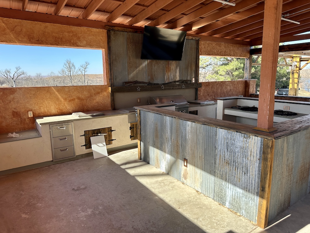 The Lodge consists of 7,000(+/-) sq/ft, which includes 4 bedrooms and 4.5 bathrooms. It has a large open living space, w/entertainment area and media room, which extends into a large gourmet kitchen. This indoor Cathedral area is furnished, including a pool table, and accented by vaulted ceilings. There’s an enclosed back porch, used for a game-room, with a shuffleboard table already in place. Next to the lodge is a beautiful Outdoor Kitchen. It’s perfect for entertaining large groups of family, friends, and clients. Part of the Outdoor Kitchen is a patio overlooking beautiful Lake Kiowa. You’ll be hard-pressed to find a more scenic location. The patio sunsets are absolutely second to none.