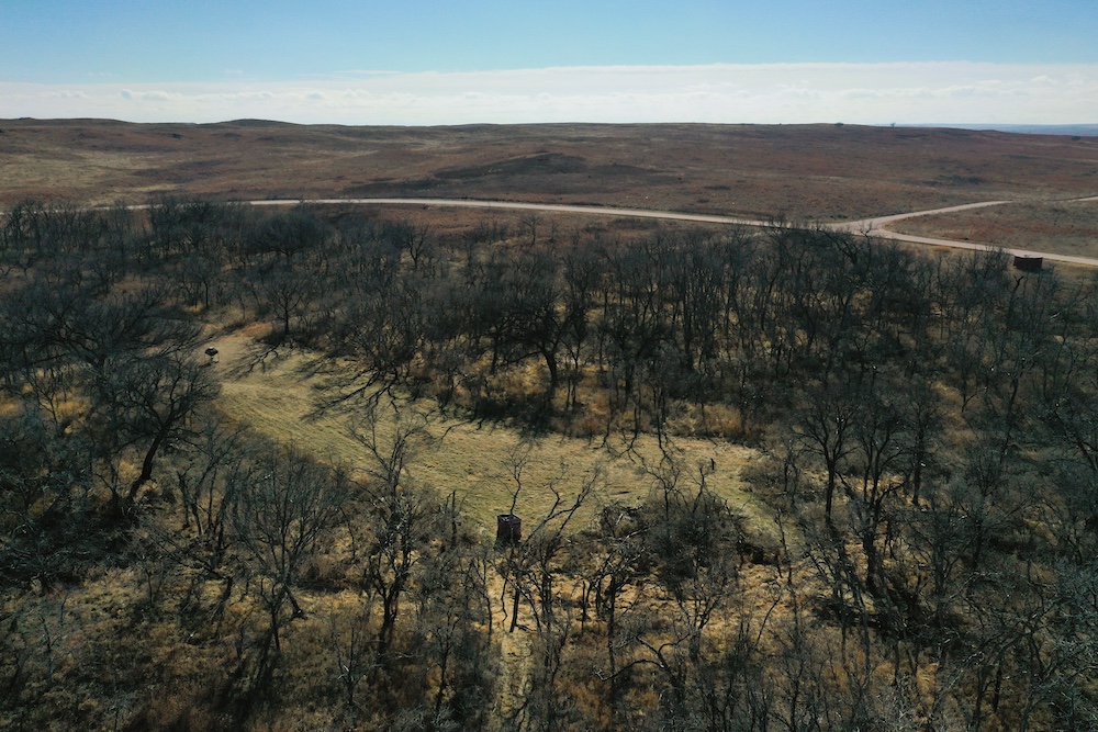 On February 26th, 2024, the Panhandle was hit by the Smokehouse Creek fire which blind-sided this region. The fire raced eastward for over 100 miles in just 2 days. More than 1.2 million acres were burned in what ended-up being the largest Wildfire in Texas History. A large portion of the trees on this property were killed by the fire. But fortunately, a large portion survived and they have bounced back remarkably. Proving how resilient this country is. The property is home to some beautiful hardwoods including China Berry, Oak, Elm, and Locust. There are also towering Cottonwoods. For many decades Rio Grande gobblers have used them to roost. And just like decades ago, they still fly down and strut in the yard! The area’s Winter Roost resides here, offering Spring hunters un-matched turkey hunting.