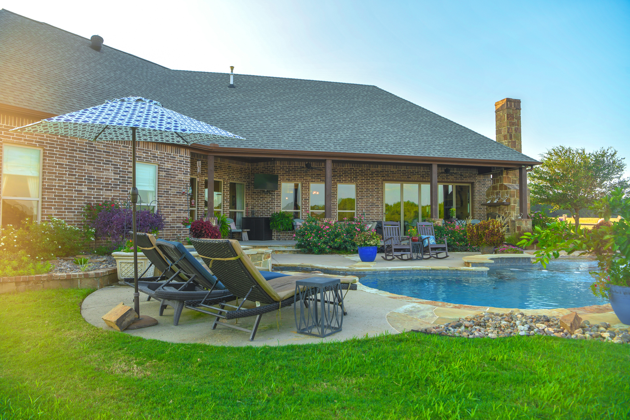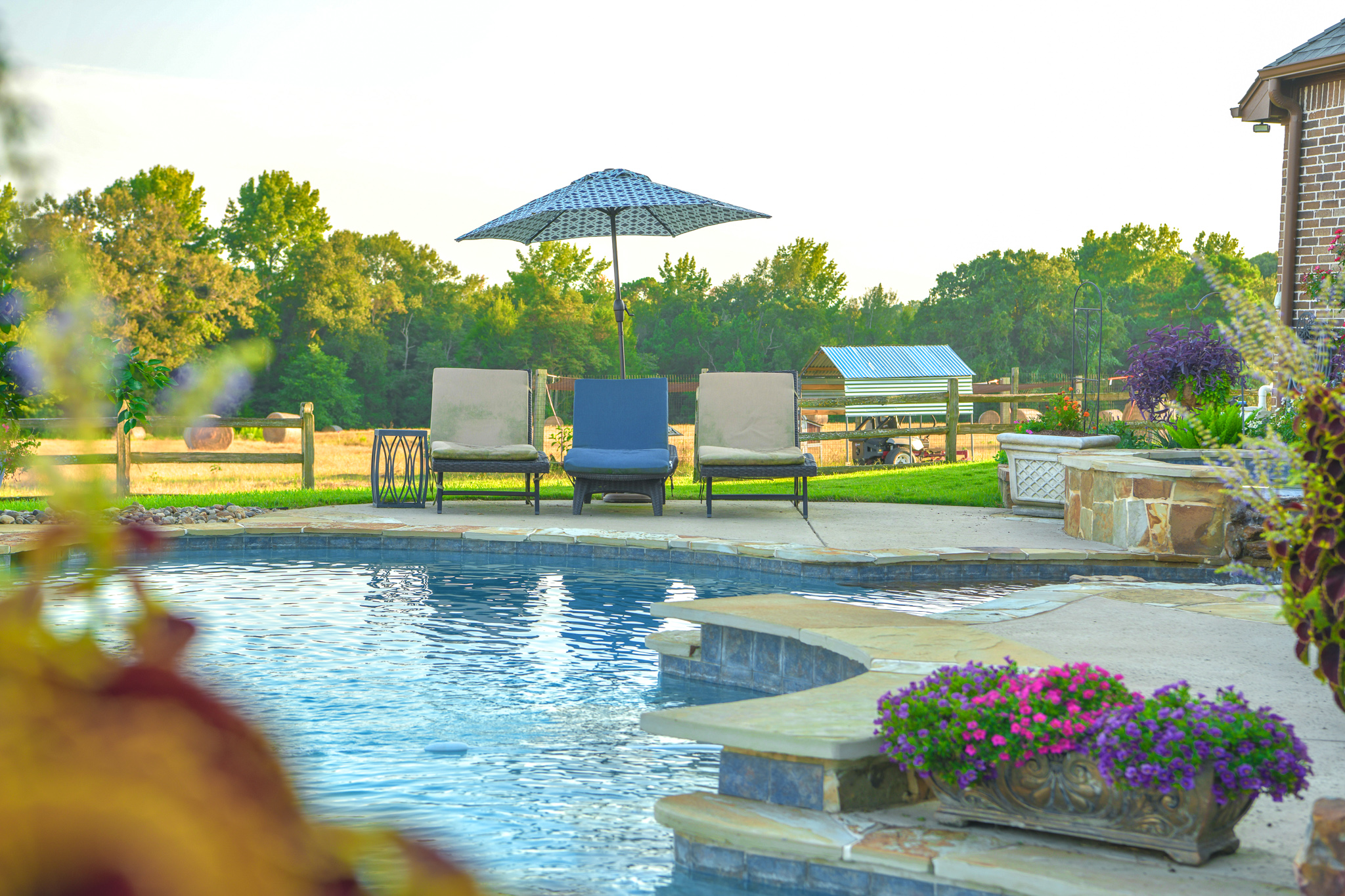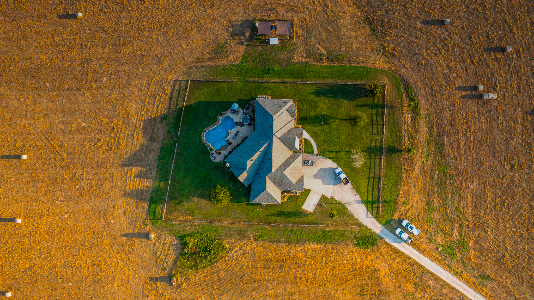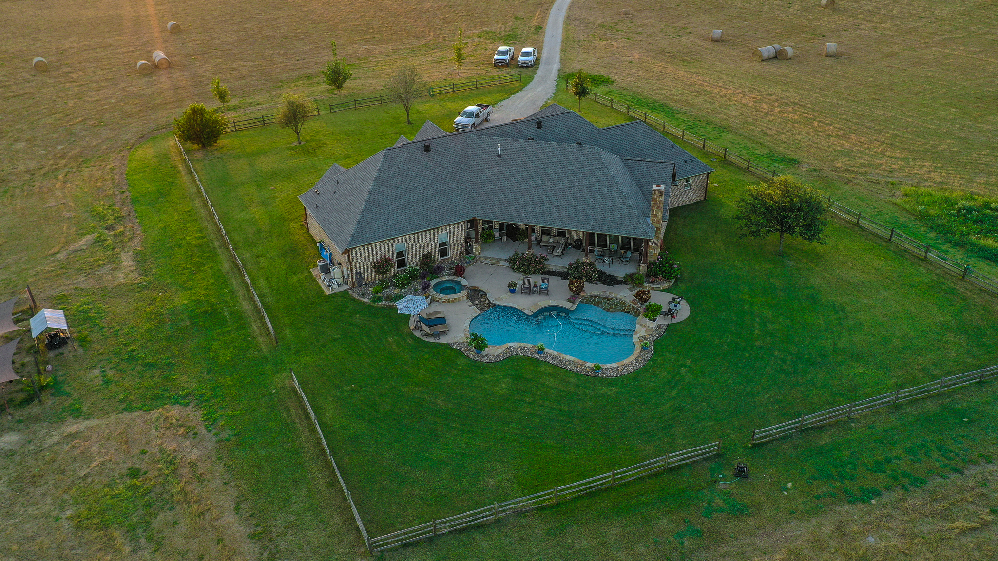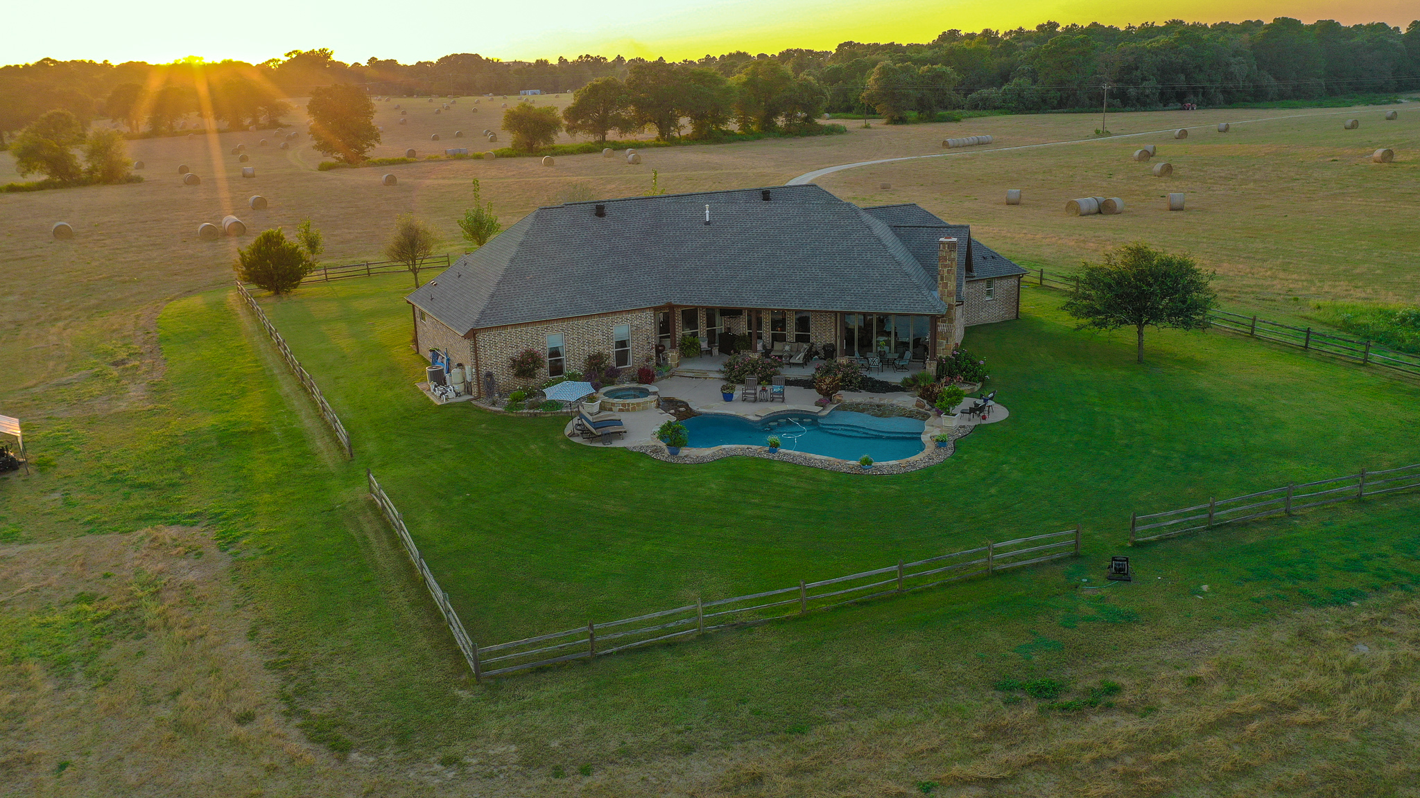 - Custom 4BR/4BA home with pool set atop a nice hill overlooking the pasture and wood line below
