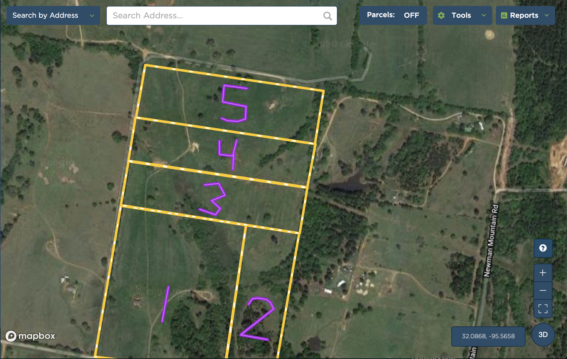 - Boundaries outlined in yellow are approximate for the parcel offerings and are to be verified by survey