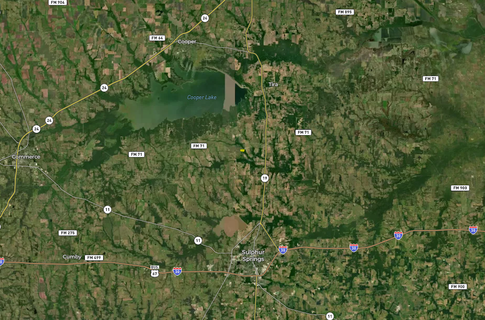 The property is located approximately 15 minutes from downtown Sulphur Springs, providing access to retail, dining, and services. It is also within approximately 15 minutes of Cooper Lake State Park and Jim Chapman Lake, both of which offer public access for fishing, boating, and outdoor recreation, as well as designated hunting areas in accordance with state regulations.