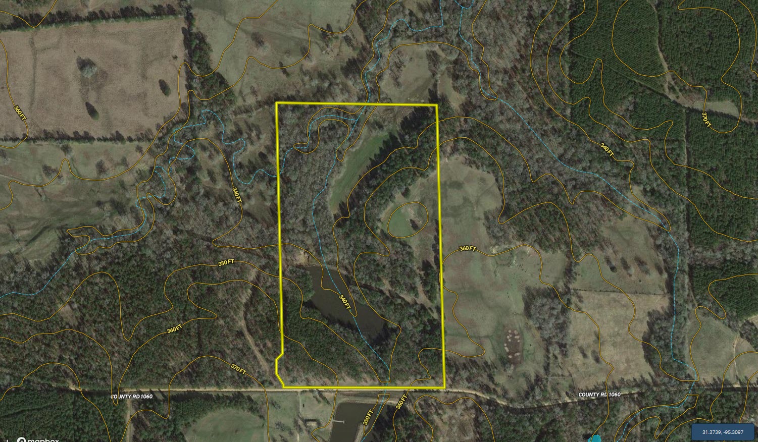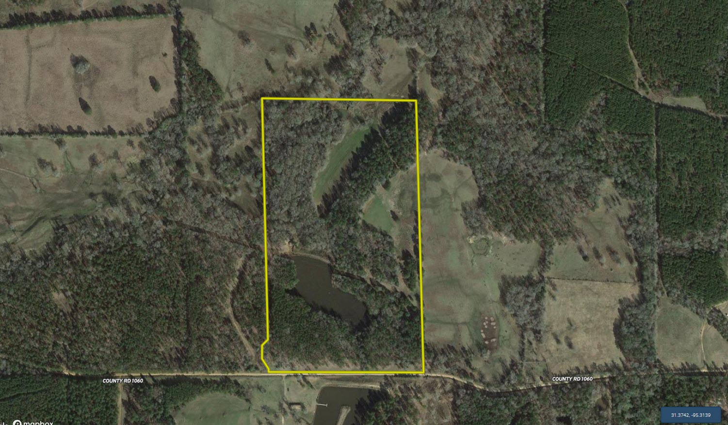 From Crockett, take SH 21 northeast, approximately 2.6 miles to FM 3187; turn right and travel approximately 4.4 miles to CR 1050. Turn right and proceed approximately 0.3 miles to a left turn on CR 1060. The gate to the property is approximately 1.0 miles down CR 1060 and is located on the left.