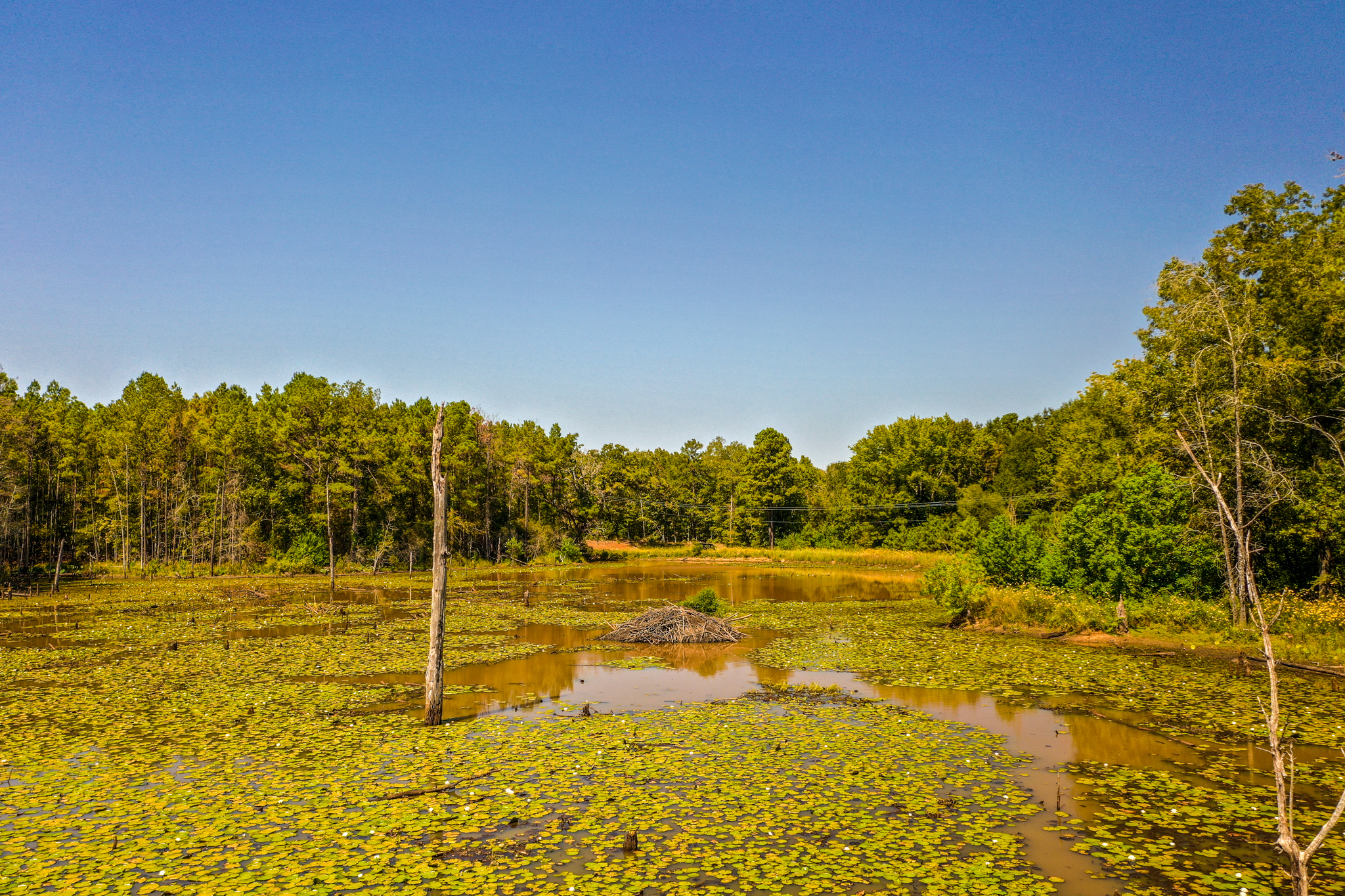 This property's primary feature is a pond estimated to be approximately four acres in size. This water feature has reportedly been stocked with a wide variety of bait fish, crappie and bass. The standing timber and vegetation in the pond create a very good ecosystem for a healthy fishery as well as excellent waterfowl habitat. This pond is centrally located and set back from the county road, which provides privacy and multiple desirable building sites for your dream home or weekend cabin. Electricity runs through the central portion of the property, and it was reported that community water is along the county road less than one mile west of this tract.