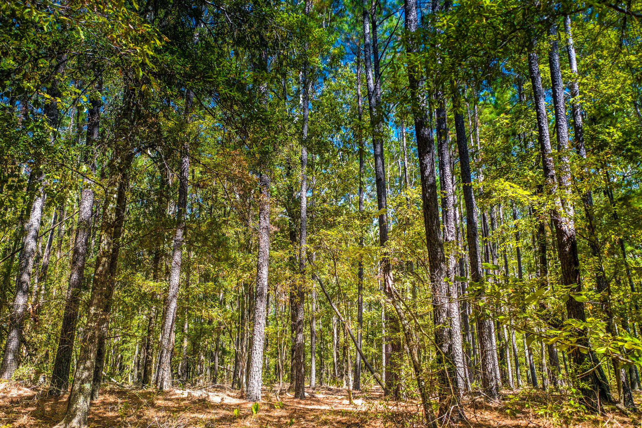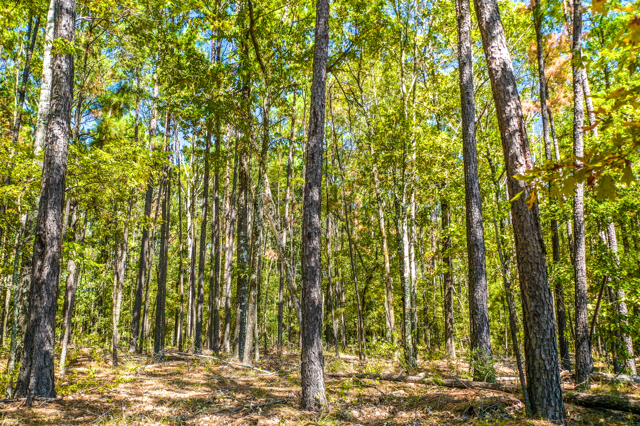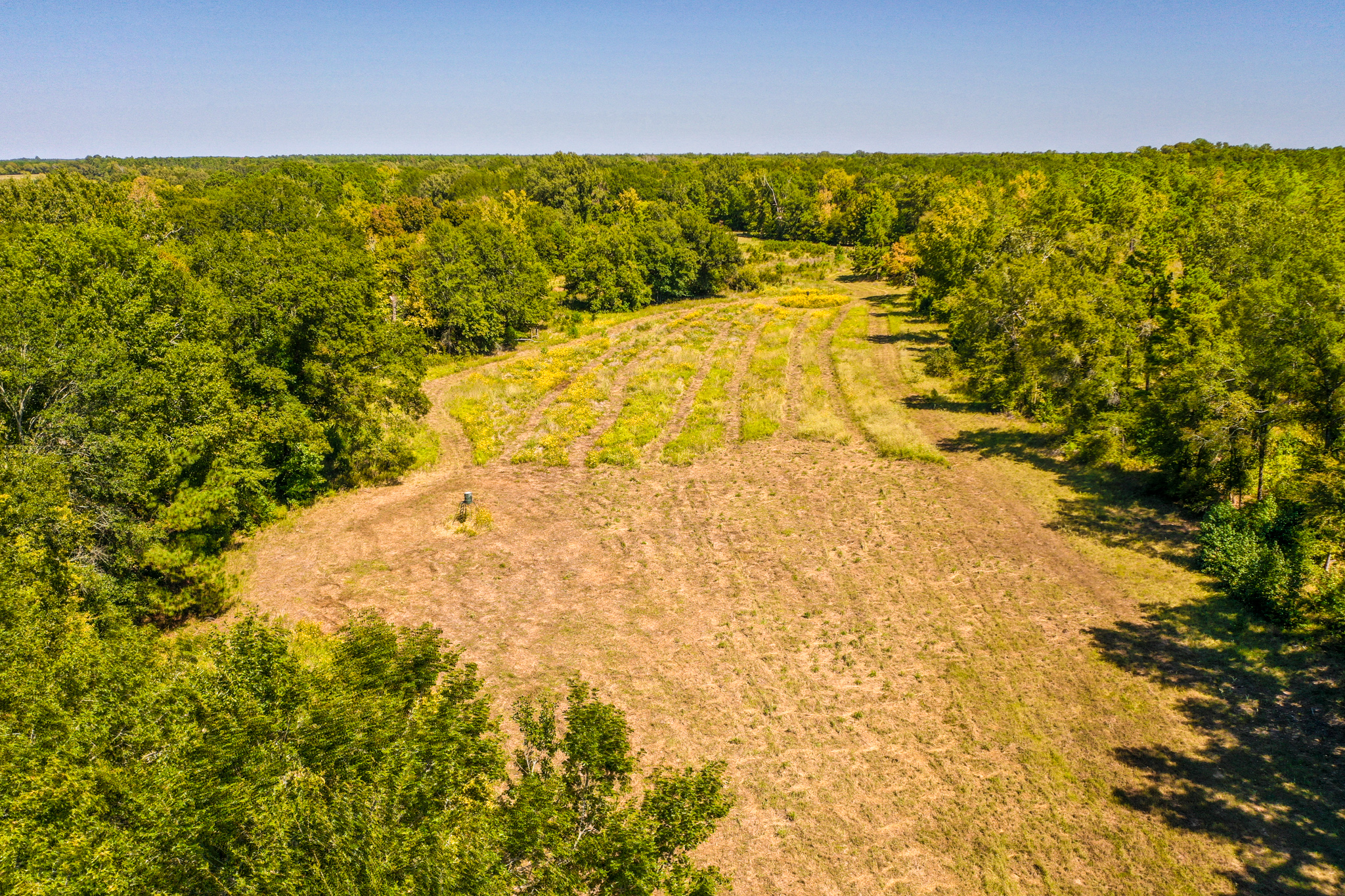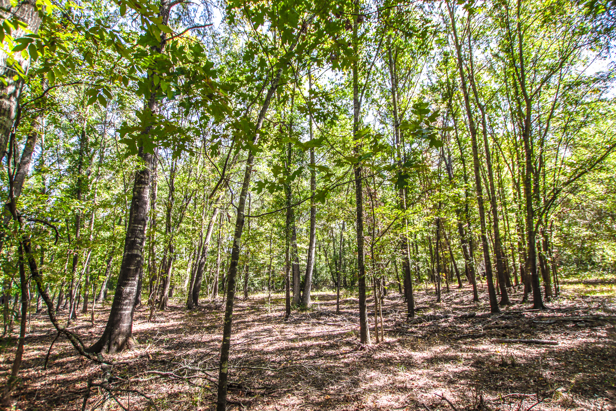 The property is a mixture of native hardwoods and Pine timber with many areas of clean, open understory that offers glimpses of the rolling topography. Elevation on the tract ranges from an approximate low of 330' ASL to an approximate high of 360' ASL, with the property generally sloping downward from the south (along the road frontage) to the north. The NW portion of the property is located within the 100 flood zone. Two creek beds (primarily wet weather creeks) traverse the property, with both draining to Hickory Creek to the north of the tract.