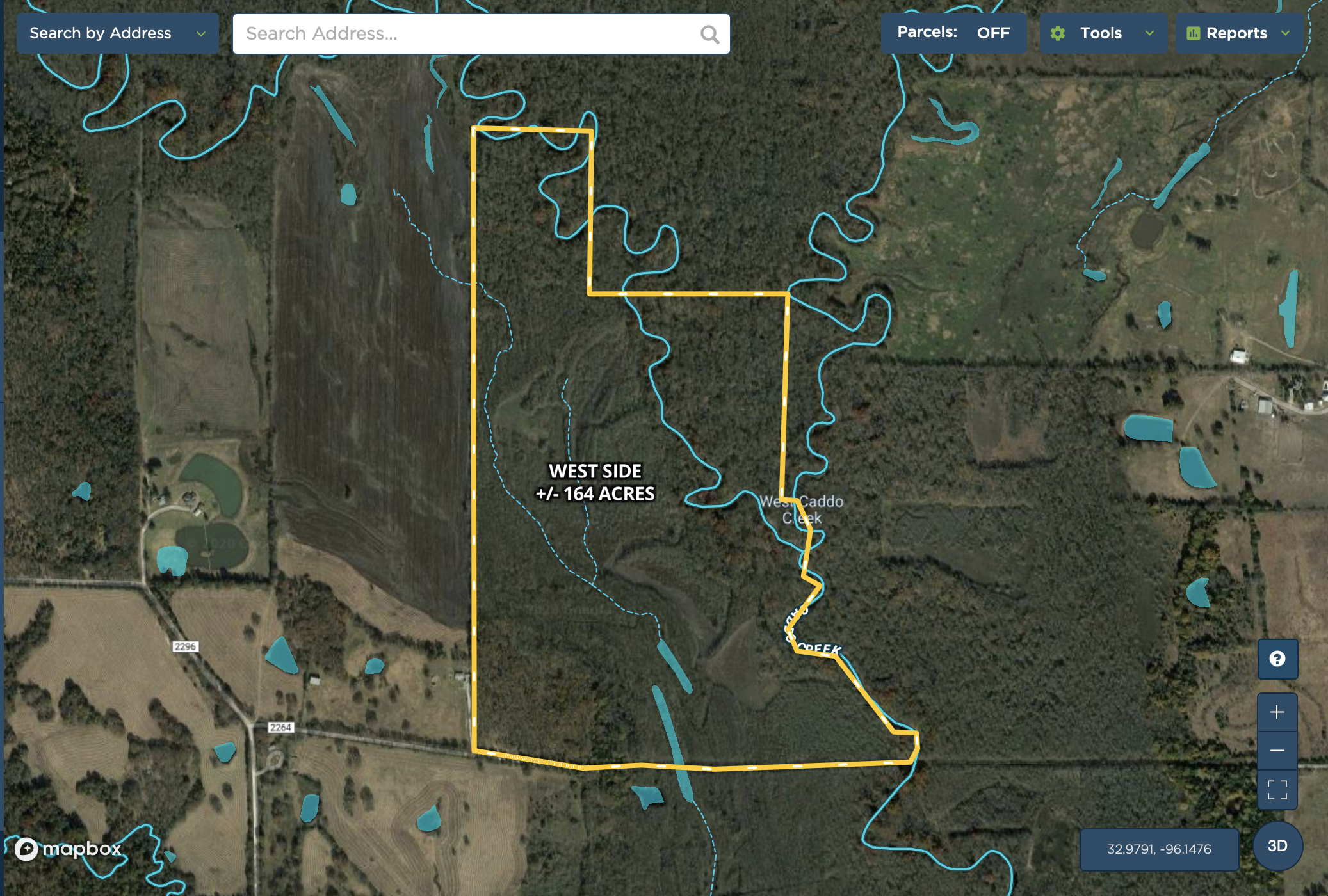 - Caddo Creek winds through the property and serves as the eastern border for a portion