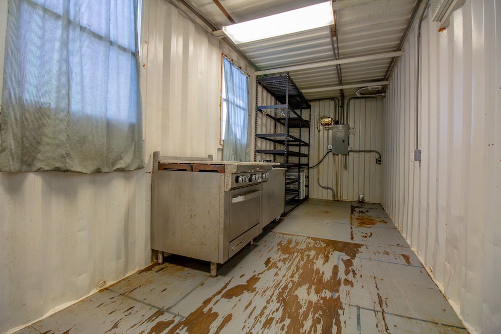 - Shipping container with a commercial kitchen setup