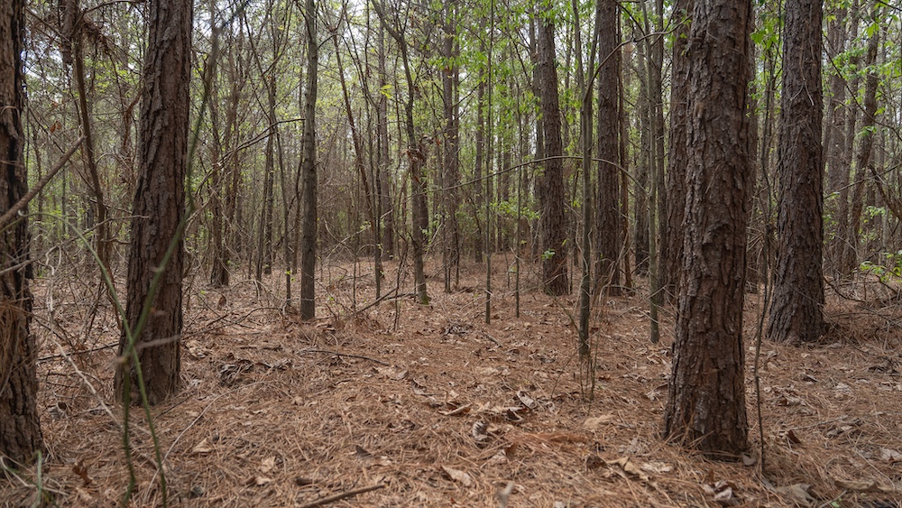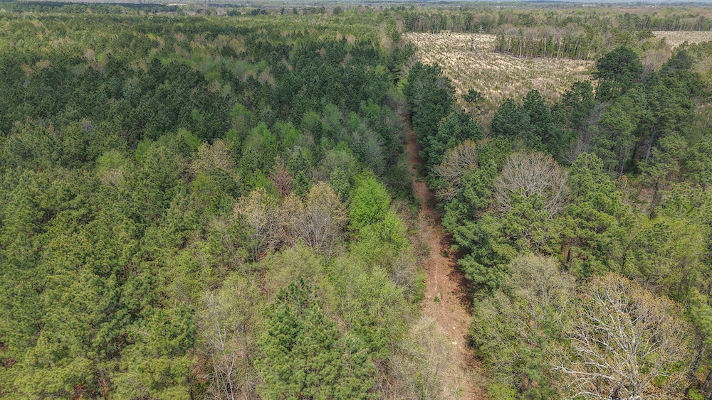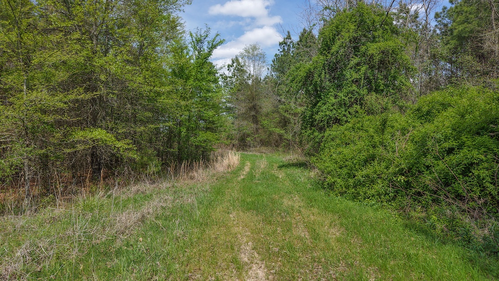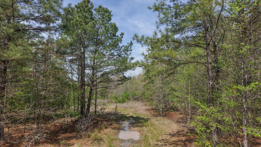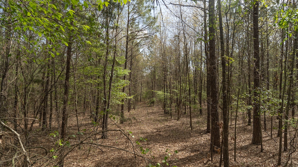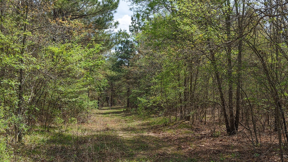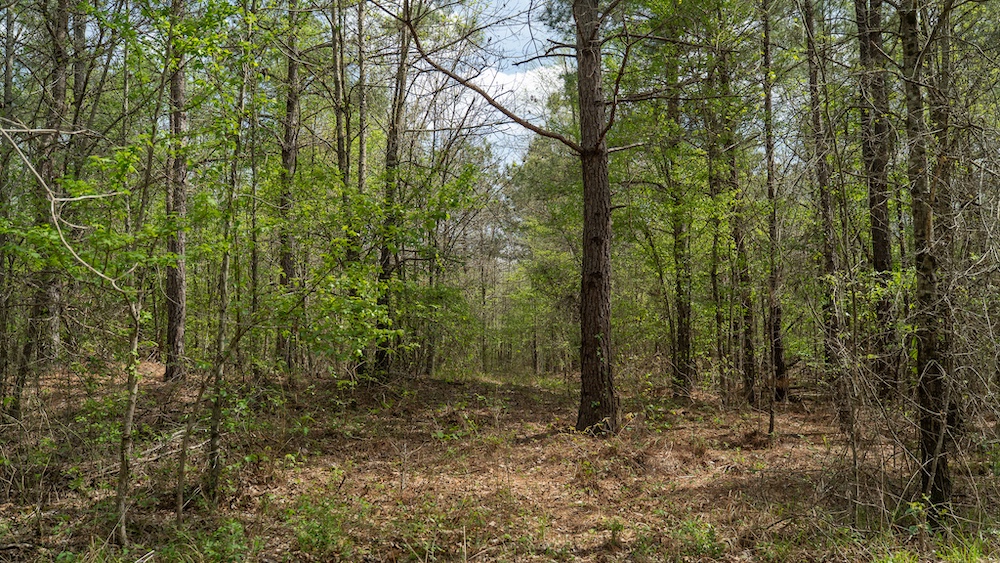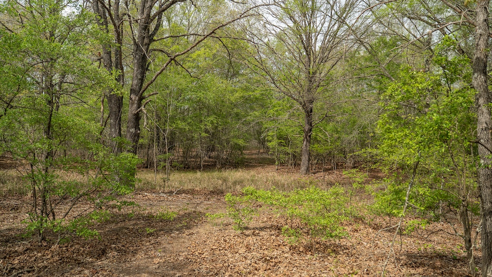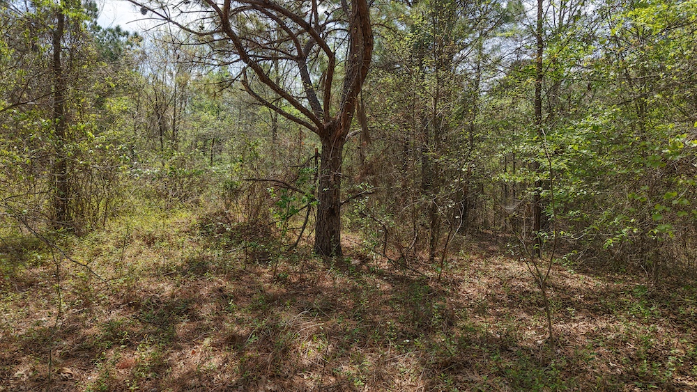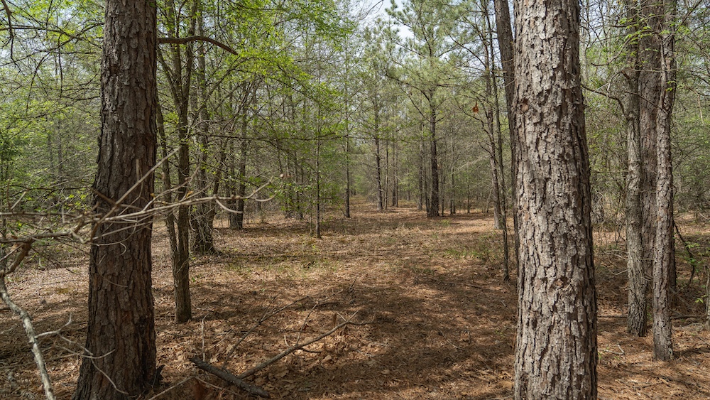 The land itself features a mix of pine and hardwood species, creating a layered canopy and understory that supports native wildlife. This type of habitat is commonly associated with deer, hogs, and other game species found throughout Northeast Texas. The timber mix also provides visual appeal and shade, along with potential for land management practices such as selective clearing or trail development.