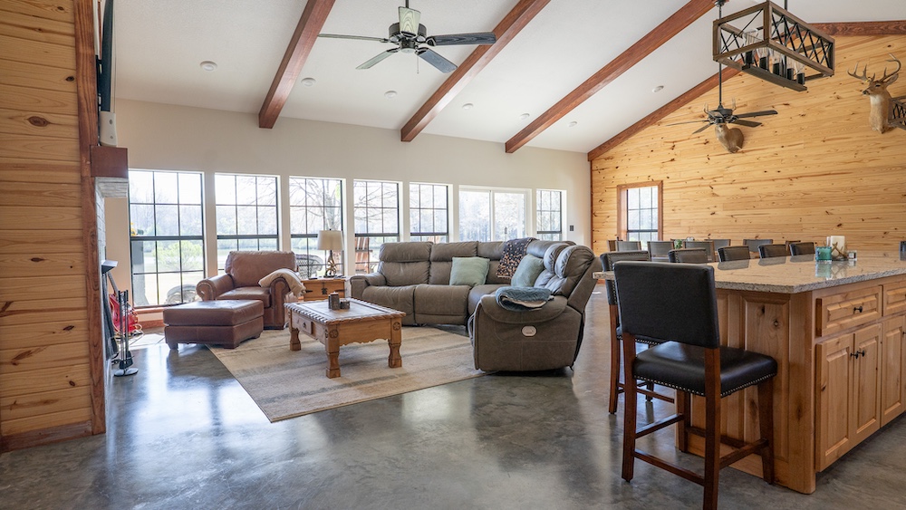 This 42±acre property, located within Shawnee Creek Ranch, offers a combination of recreational land, water features, and a well-appointed residence. The tract includes a five-acre fishing pond, wooded acreage, and established trails, creating a setting suitable for outdoor use and rural living.