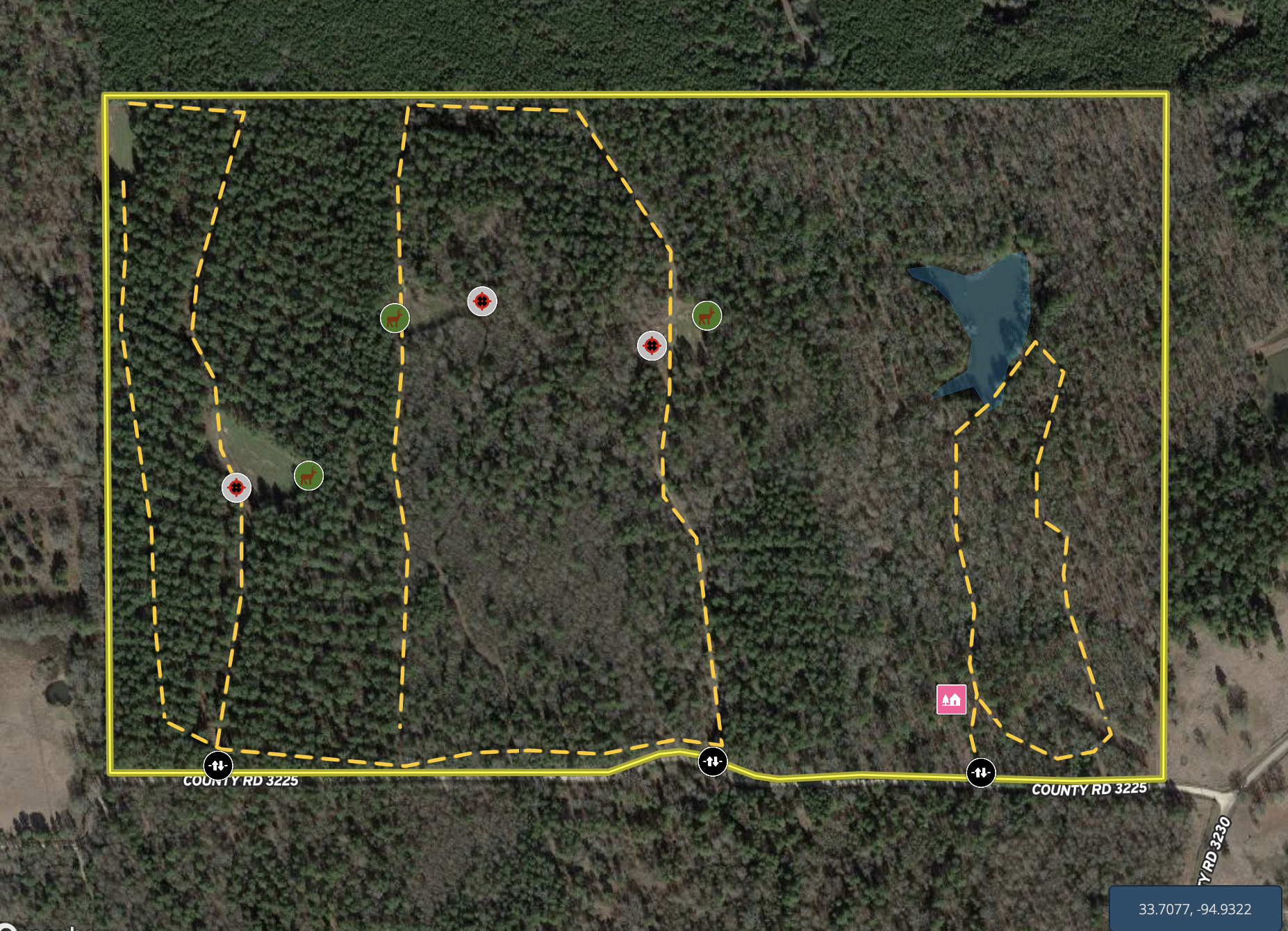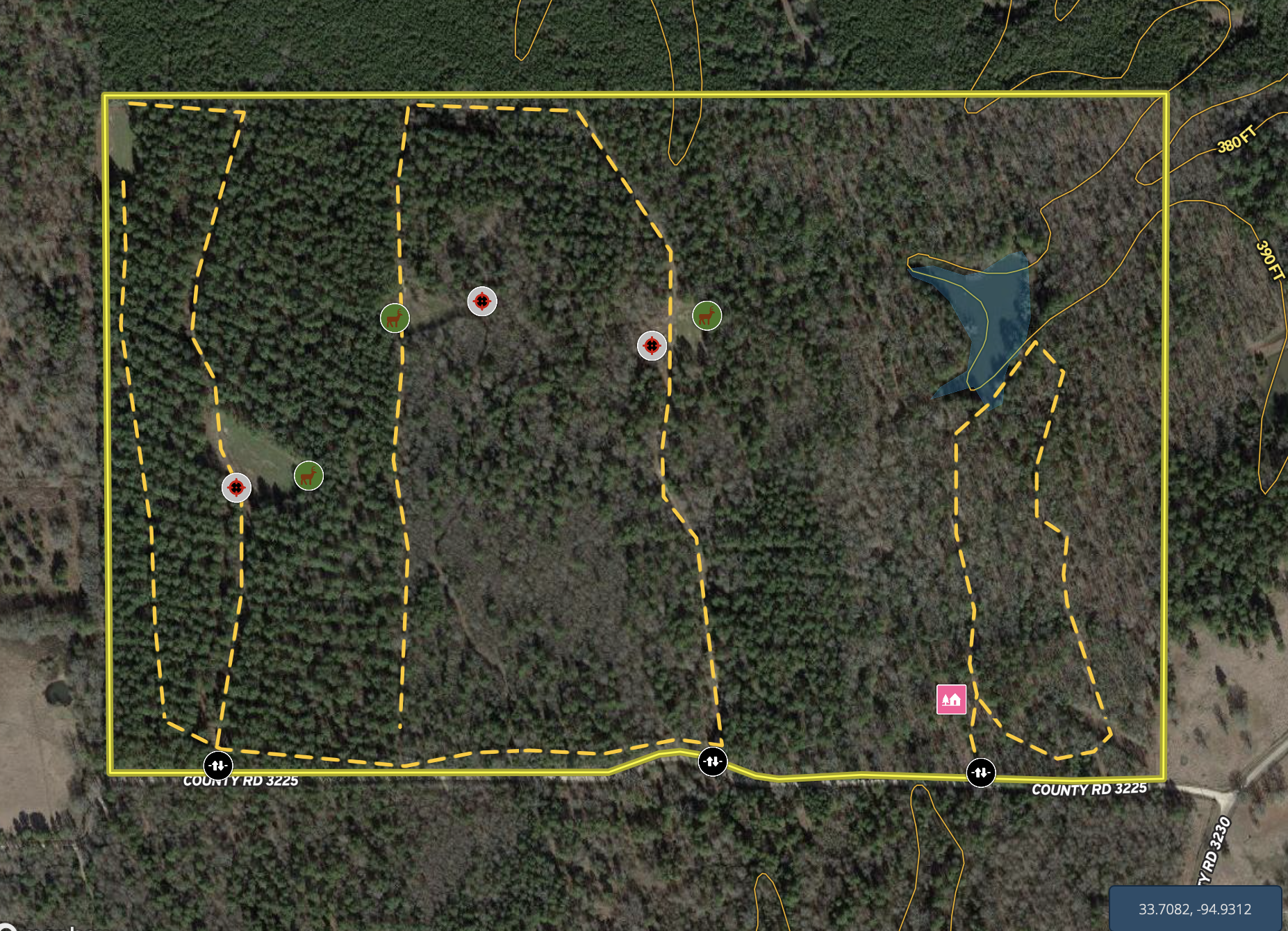 Small Game, Predators, Fish, Food Plot, Tree Stands/Blinds, Trail Network, Internal Road System, Gated Entrance, Surface Only
