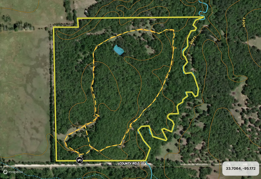 Great deer and hog hunting property primarily wooded with a couple of small fields. There is a creek, that is lined with hardwood trees, as well as a fishing pond. The property is primarily fenced and has a nice gated entry and numerous trails to access all the land has to offer. The available electricity makes this property ideal for a country home or a hunting camp. Great place to get out of town for the weekend!