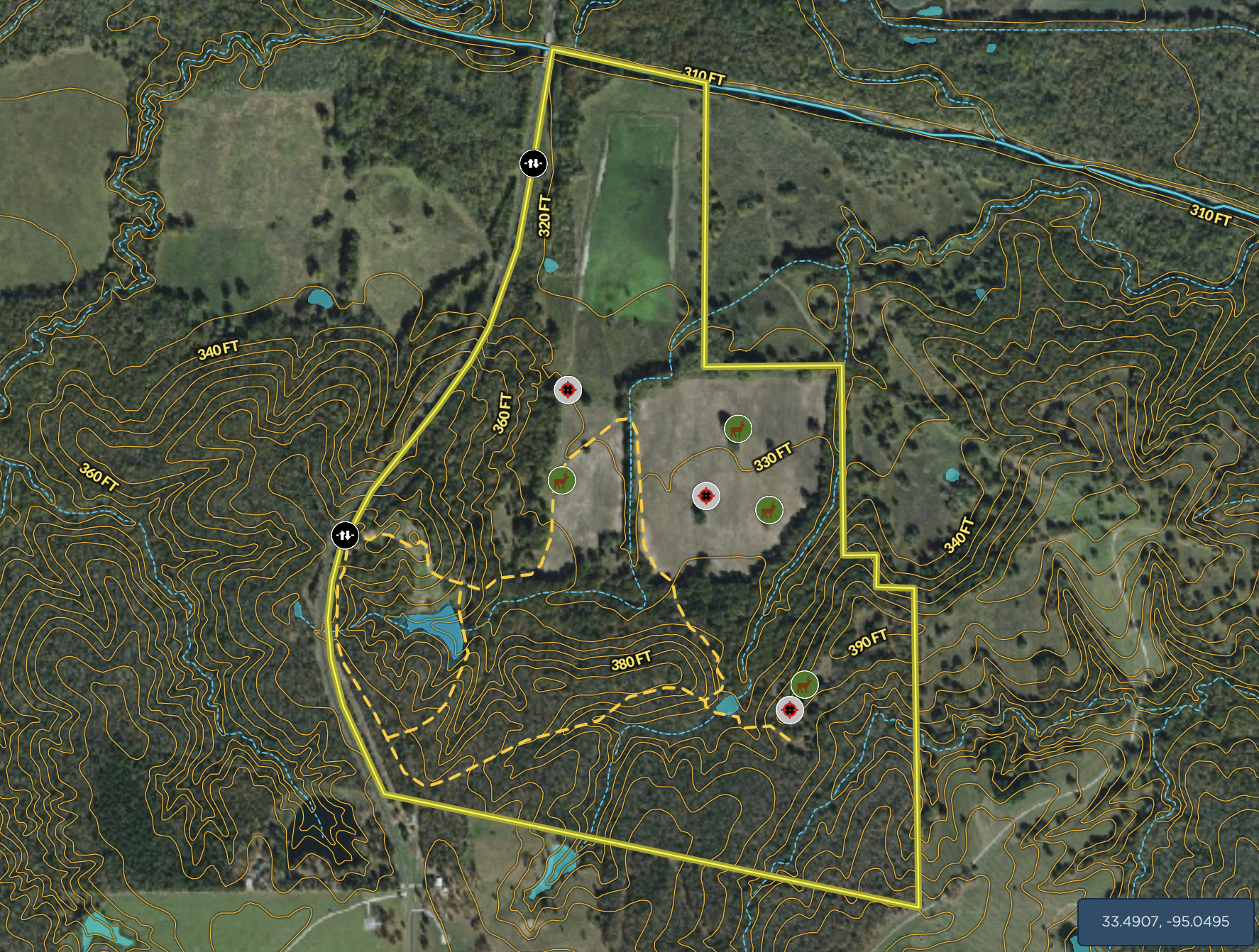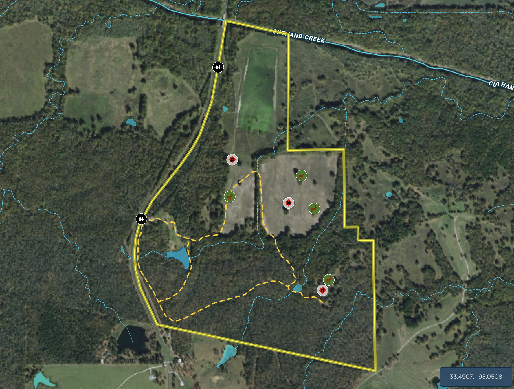 Big Game, Waterfowl, Pits, Tree Stands/Blinds, Food Plot, Fish, Small Game, Slough, Water Control Structures, Trail Network, Internal Road System, Gated Entrance