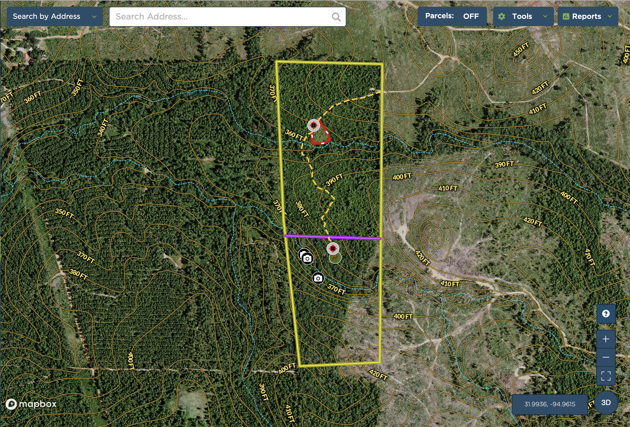 - Already setup with two, brand new enclosed Banks Blinds, food plot, dozer work, select mulching, creek crossing, feeders, and more