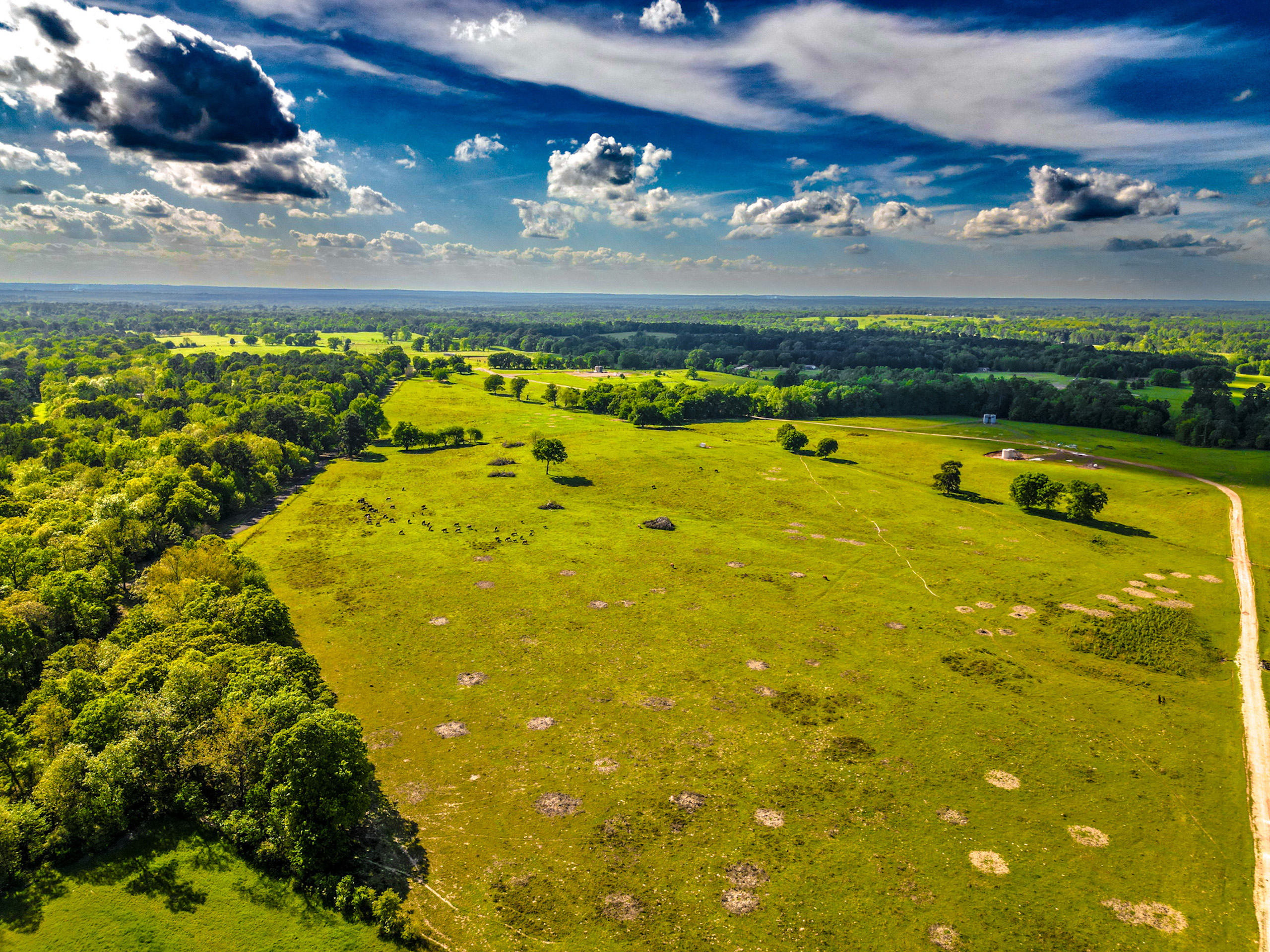 Land Characteristics: The majority of the acreage is comprised of open pasture, making it ideal for cattle grazing and hay production. Additionally, there are scattered pockets of mixed timber that add a layer of scenic beauty and seclusion to the property, that is enhanced by being surrounded by timber properties. The rear 30 acres of the tract is cut-over timber that is ready to replant or finish converting into pasture for additional grazing opportunities. Some vision could be utilized if the rear portion were to be replanted with Pine timber to leave small open areas that could be utilized as food plots for the native wildlife while maximizing some income stream potential for the long term. Elevation on this property ranges from an approximate low of 390’ ASL to an approximate high of 460’ ASL. This approximate 70-foot of elevation change, in conjunction with two primary springs that are surrounded by mature timber, offers pockets of pristine beauty. With a small pond which is located on the western portion of the property, and the added benefit of the two springs, there is adequate water supply to support a variety of livestock and wildlife. There are currently three areas on the property that are utilized for oil / gas production, with some surface equipment at each of the sites. The upside to this production is an extensive, all-weather road system that provides county road type access through the length of the property, making access very simple and utilitarian. Power is located at the SW corner of the property, and the current owner has improved the property with a 460-foot-deep water well that is reported to have a 40 GPM yield (Well Report #574594). This well was drilled in May 2021 and is currently powered by a solar system and utilized primarily for added water supply for livestock if necessary.
